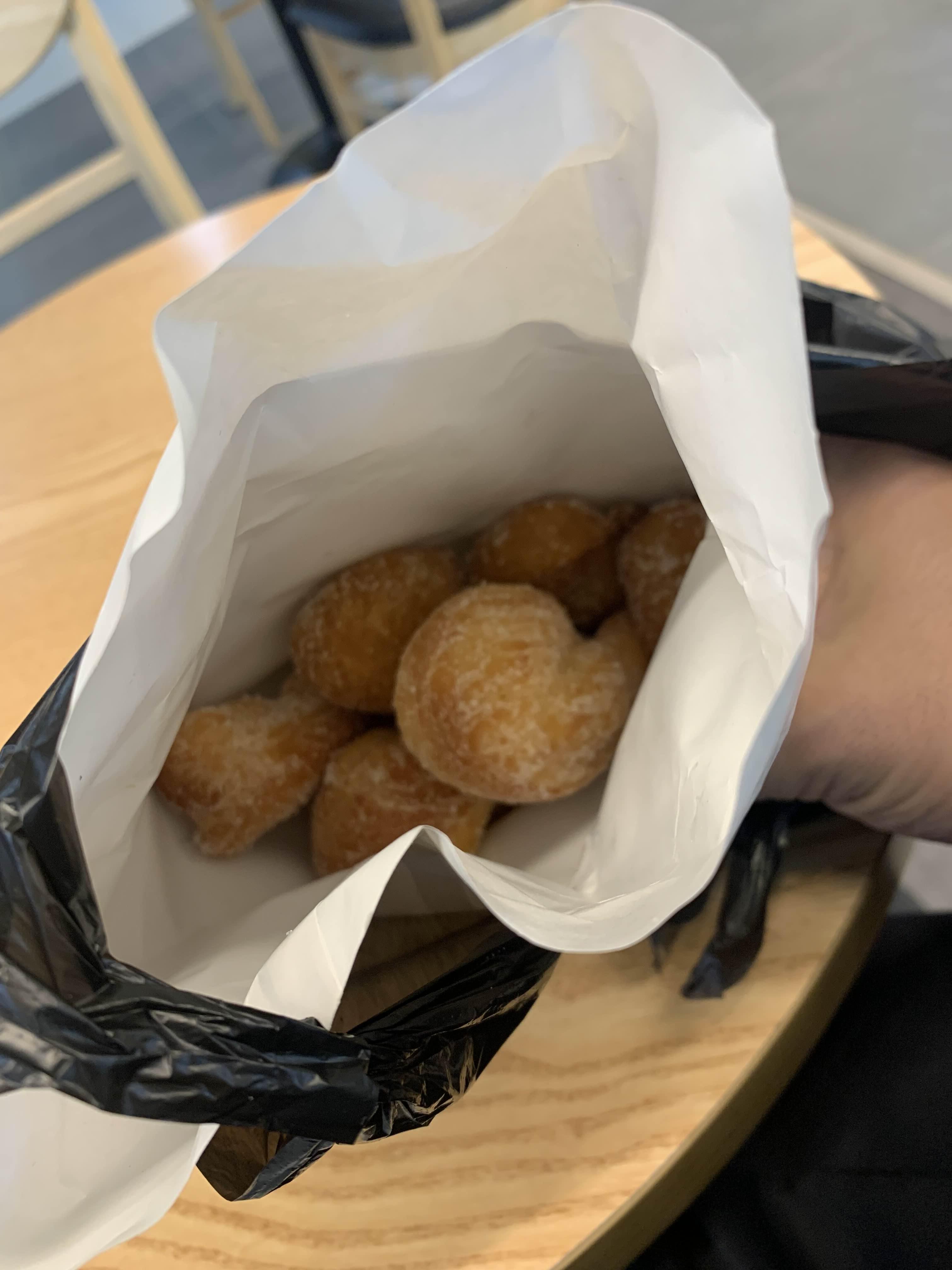 삼척은 꽈배기의 고장!!! 꽈배기가 유명한 삼척입니다. 하지만, 꽈배기보다는 요!!! 찹쌀도넛이 쫀듯하니 맛이 좋더군요. 특별한 앙꼬는 보이지는 않지만.... 부드러우니, 한입에 쏙! 들어가는 사이즈! 너무 작기는 해도 맛은 괜찮더군요.