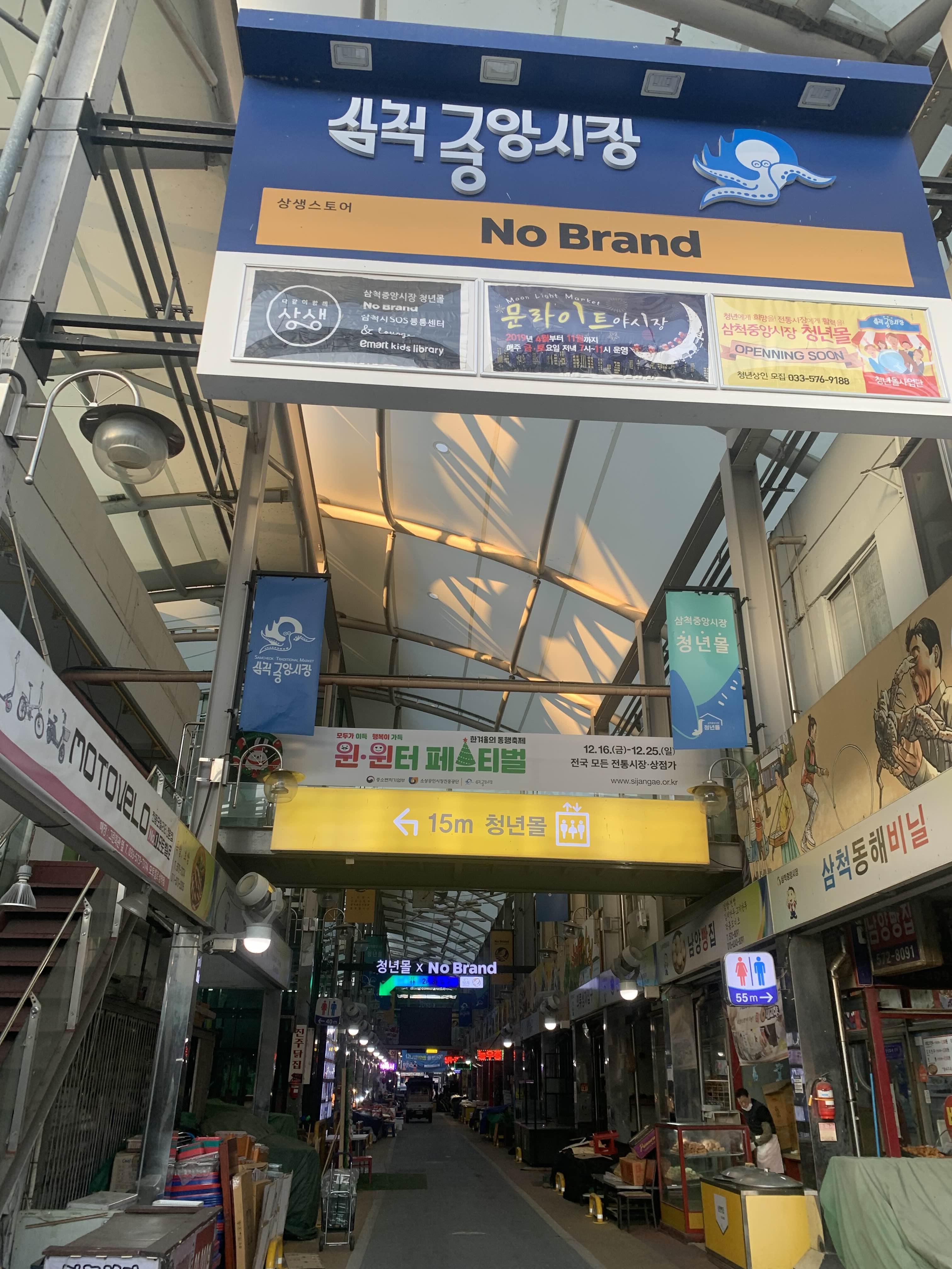 아침에 간단히 먹으려고 구입한 꽈배기와 찹쌀도넛!!! 하지만, 어느 순간 빈 봉투만 남아버렸습니다. 삼척 중앙시장 청년몰은 시장과 단절된 칸막이! 청년몰의 입구에 자동문 칸막이! 시장의 냄새를 막기 위한 칸막이... 식당의 냄새뿐만 아니라, 손님들까지 막는 느낌이 들기는 했습니다.