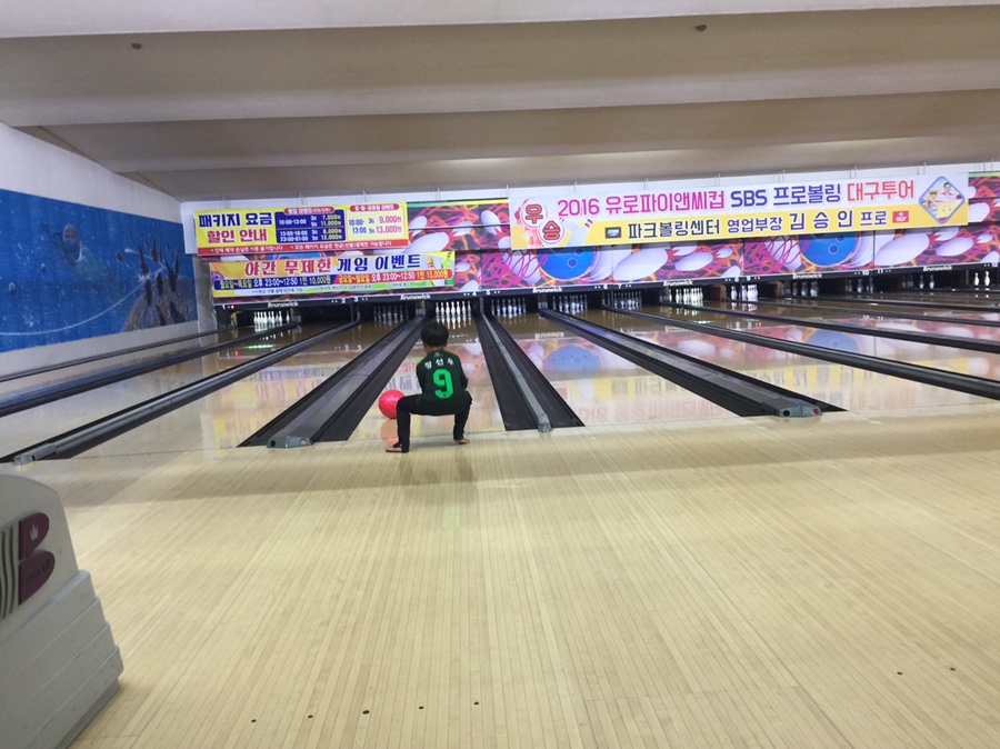 선우가 볼링장에 가고 싶다 해서... 정말 오랜만에 볼링장에 방문하였네요.ㅎㅎ 오랜만에 볼링을 쳐보니... 팔에 무리가 갑니다. 와이프는 볼링공에 손이 골절되어 병원에서 진료받고;;;ㅡㅡ; 볼링공을 두 손으로 굴리는 선우!!