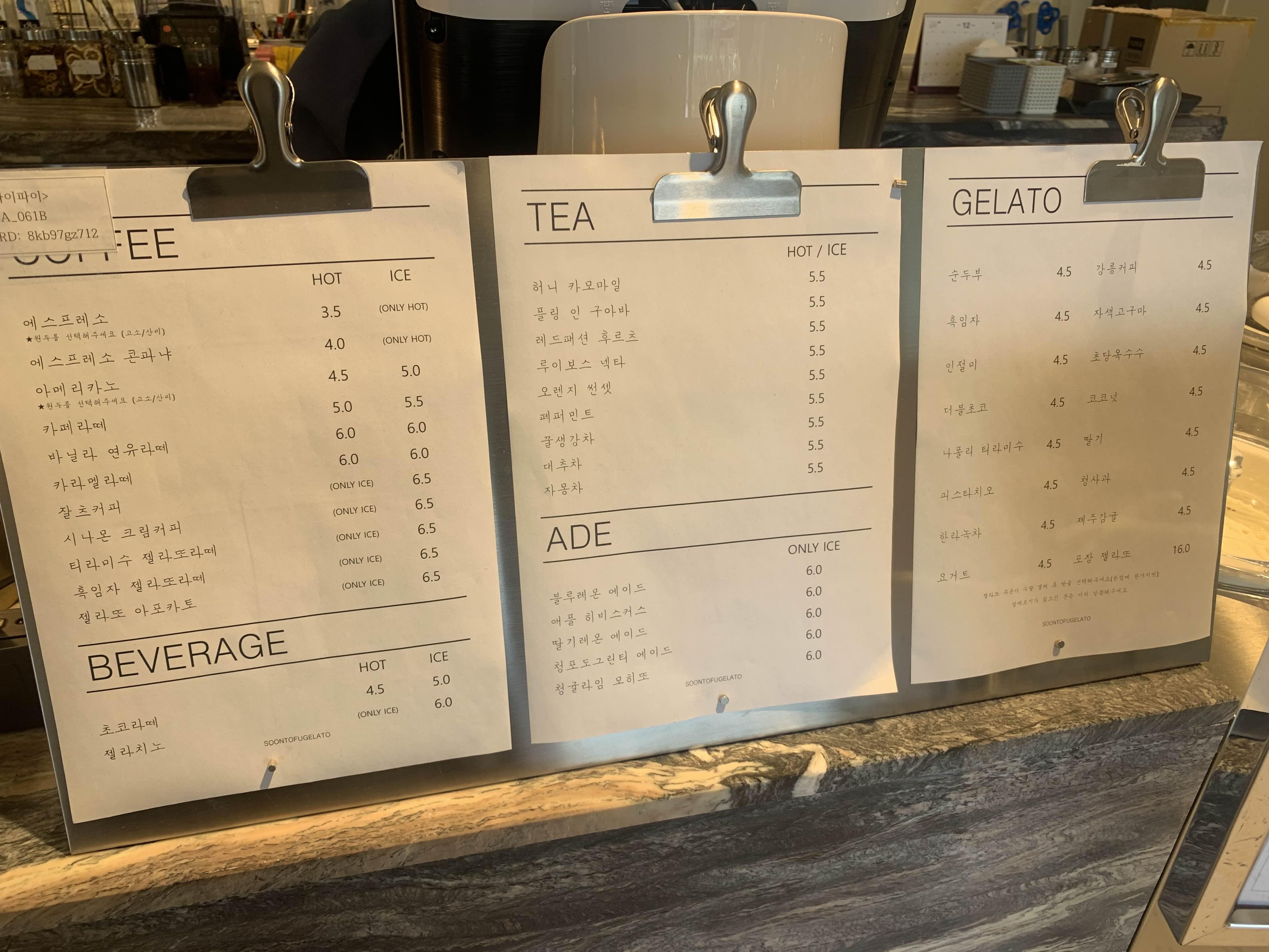 순두부 젤라토의 식감?이랄까.... 쫀득한 식감이라 생각했는데... 그리 쫀득한 식감은 아니고, 부드러운 아이스크림 느낌이 들었다. 순두부의 맛이라.... 무슨 맛인지는.... 사실! 순두부 맛이 맹맛인데.... 순두부찌개의 양념이 들어가야 매콤해지고!? ㅎㅎ 암튼, 맞는 순수한 맛이랄까? 양이 너무 적어서 그런지? 무슨 맛인지 몰라... 그 맛은 무슨 맛인지 알아맞혀 보려고 그런지? 아이스크림은 금세 바닥을 드러냈다.