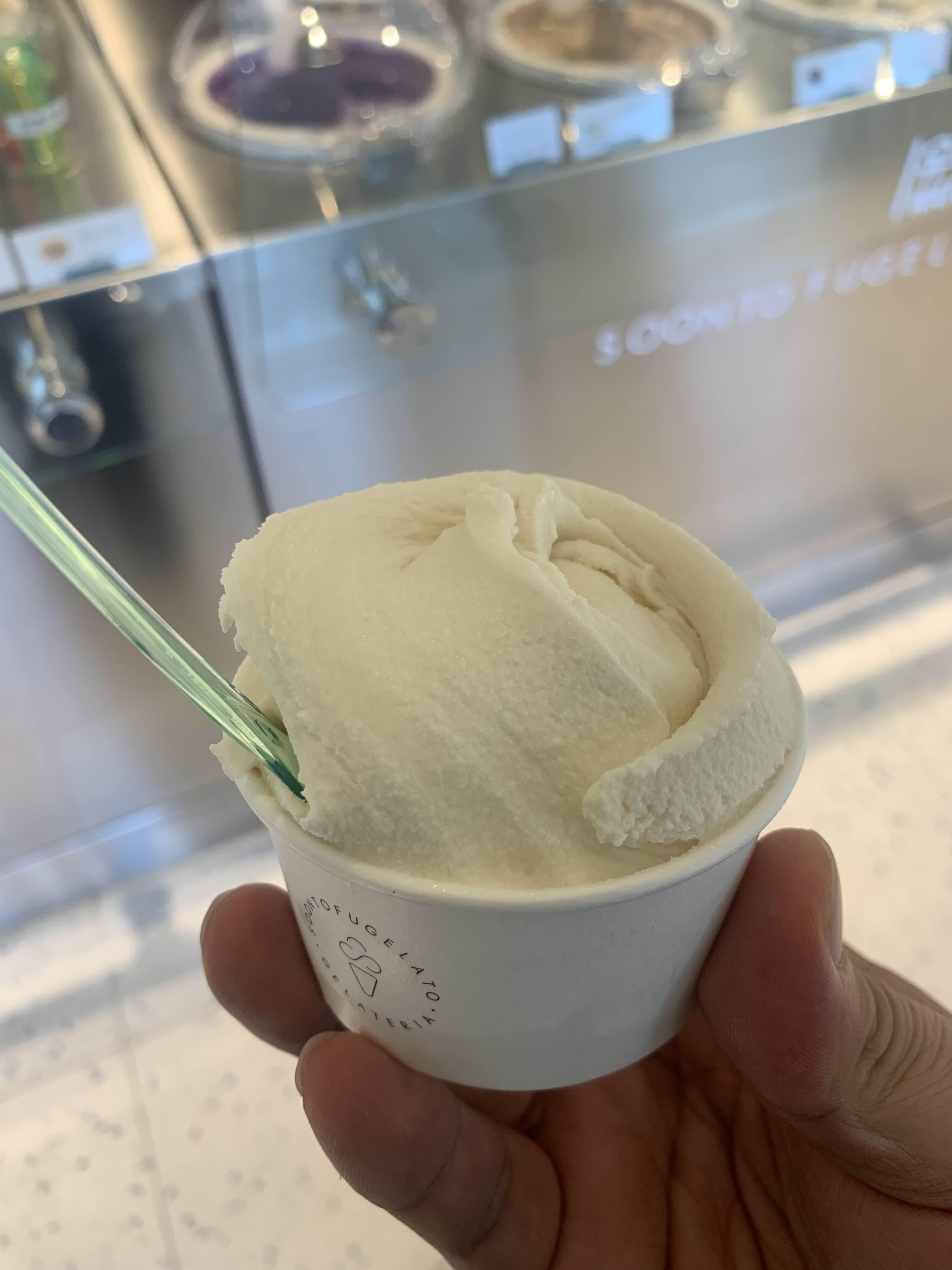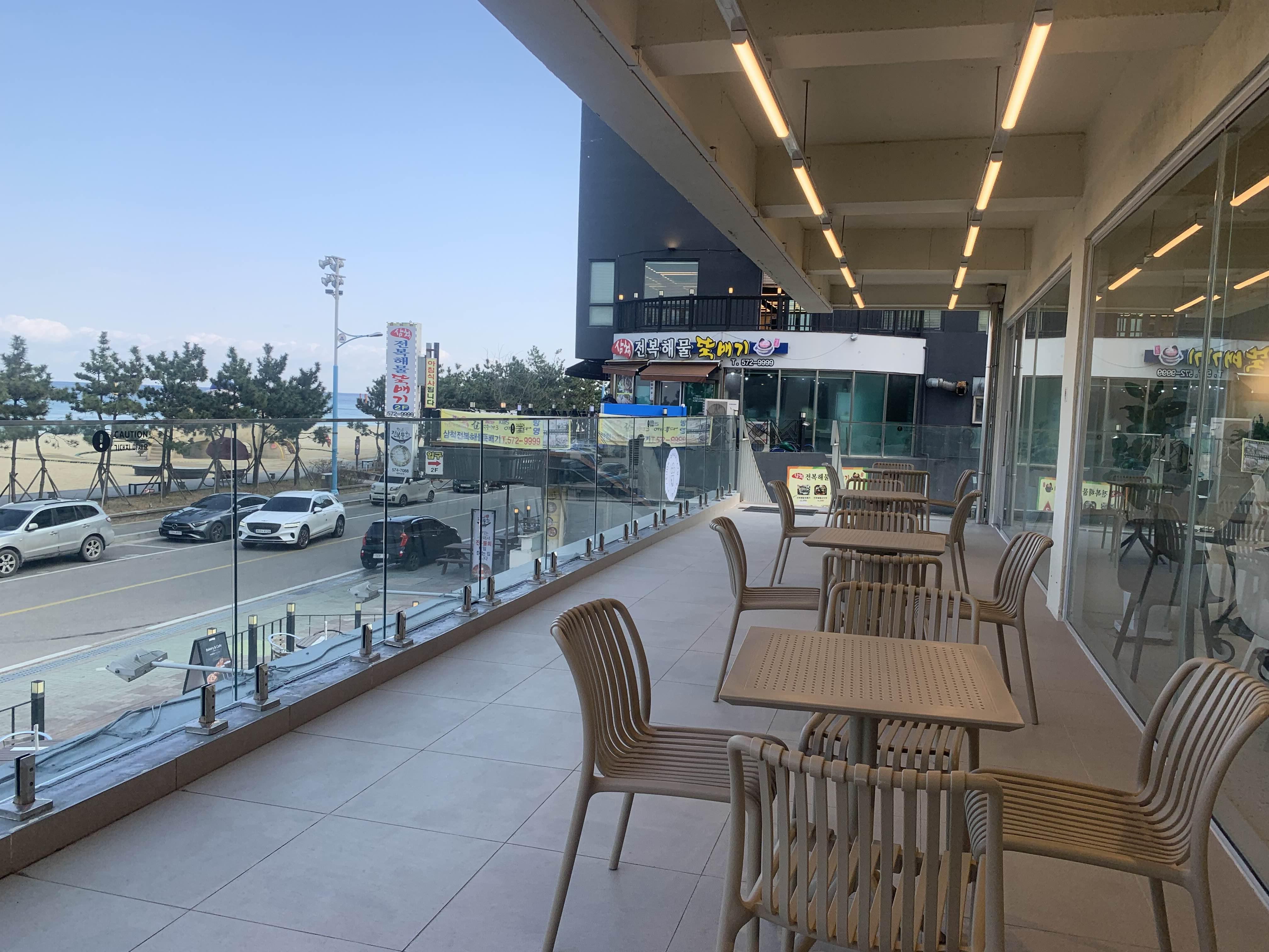 순두부 젤라토 한 컵을 받아 들고.... 전망이 좋은 자리에 앉아서... 맛보기로 했습니다. 매장의 대부분의 좌석이 해변을 바라보고 있어서... 특히 여름이라면, 매장 앞쪽의 오픈 공간에서 앉아서 맛보아도 좋겠더군요.ㅎㅎ 주문하면 젤라토를 떠주시는데... 일반 아이스 큼과 다르게.... 슬라임이나 물컹한 젤리처럼 흘렁거린다.