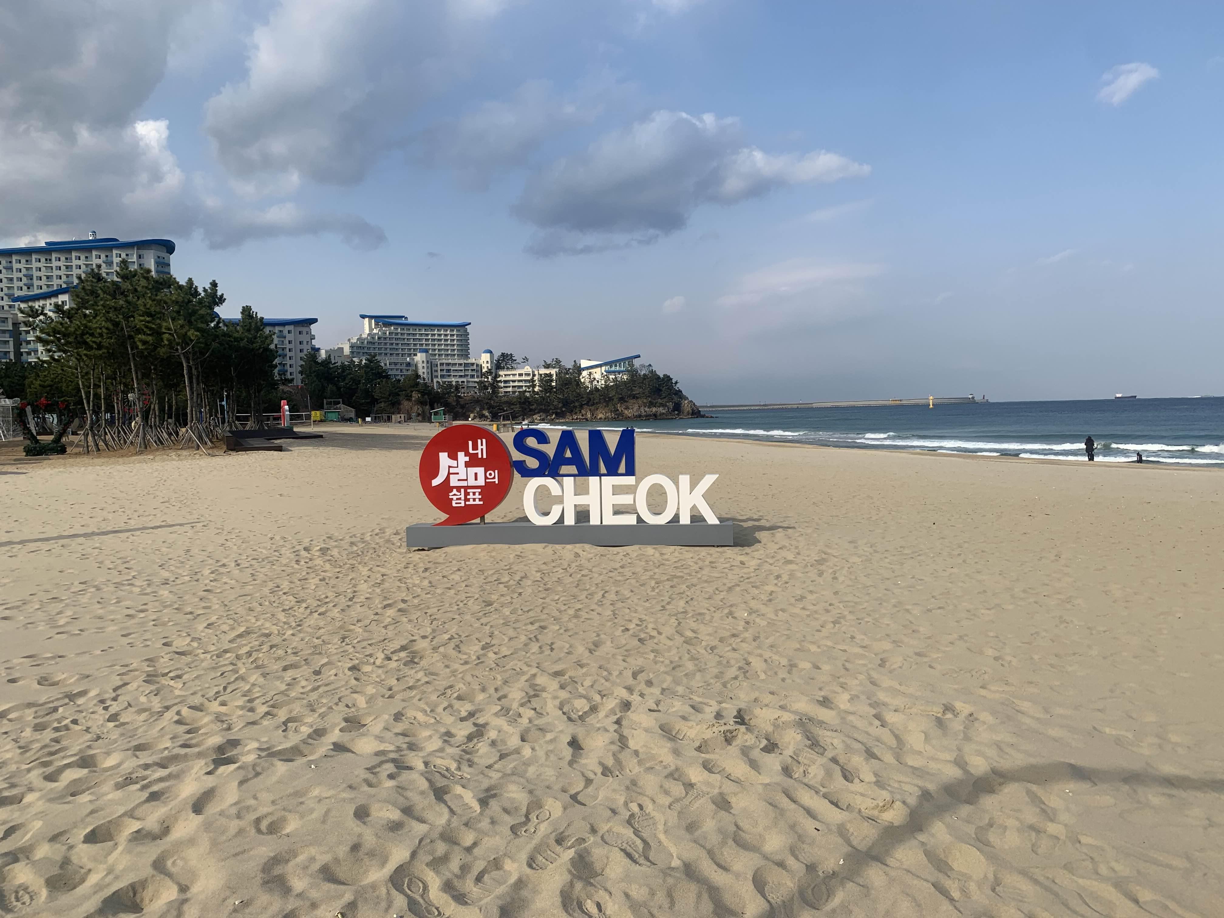 삼척해변에 나오니. "내 삶의 쉼표 삼척"이라는 문구가 보였다.