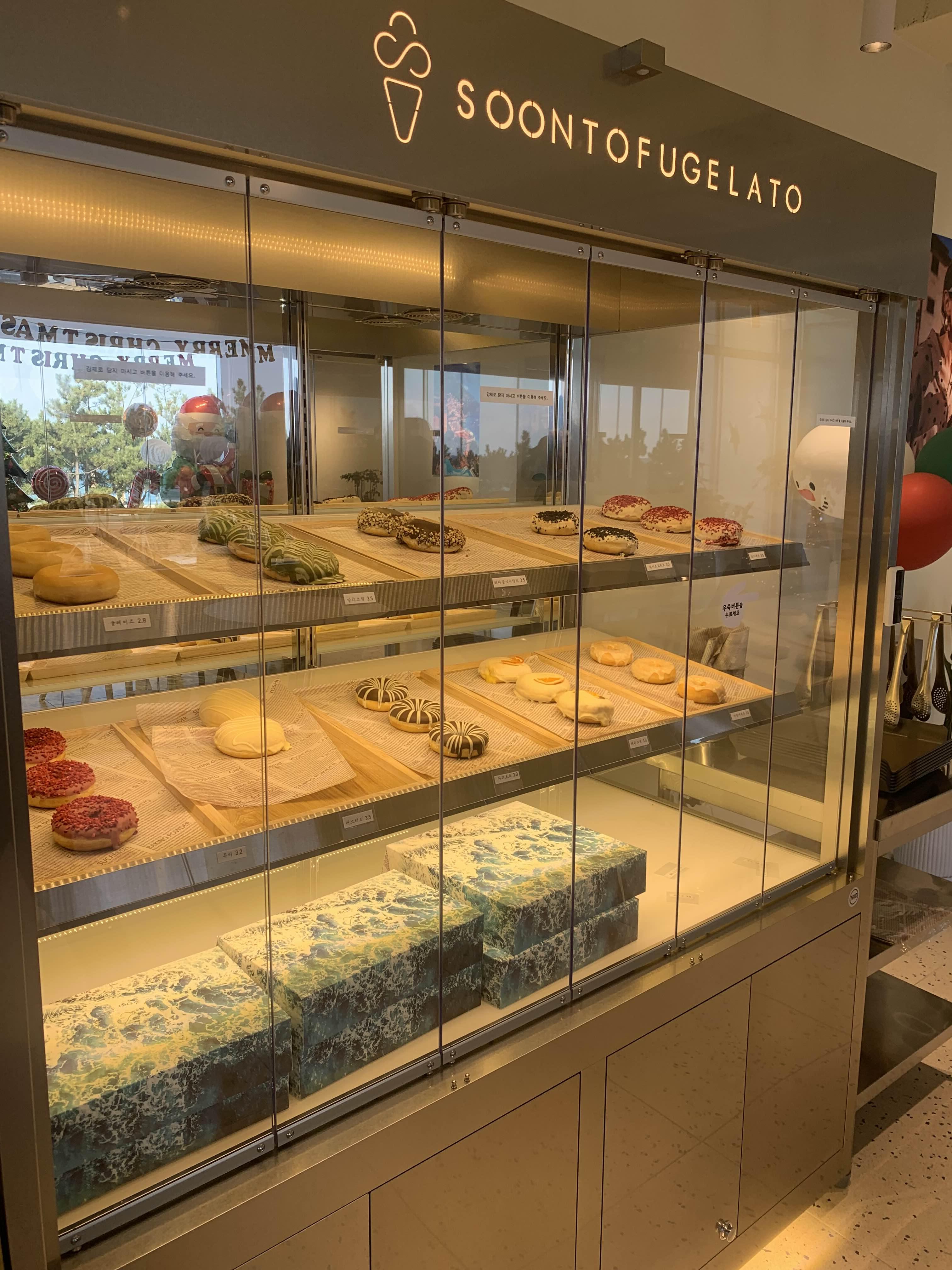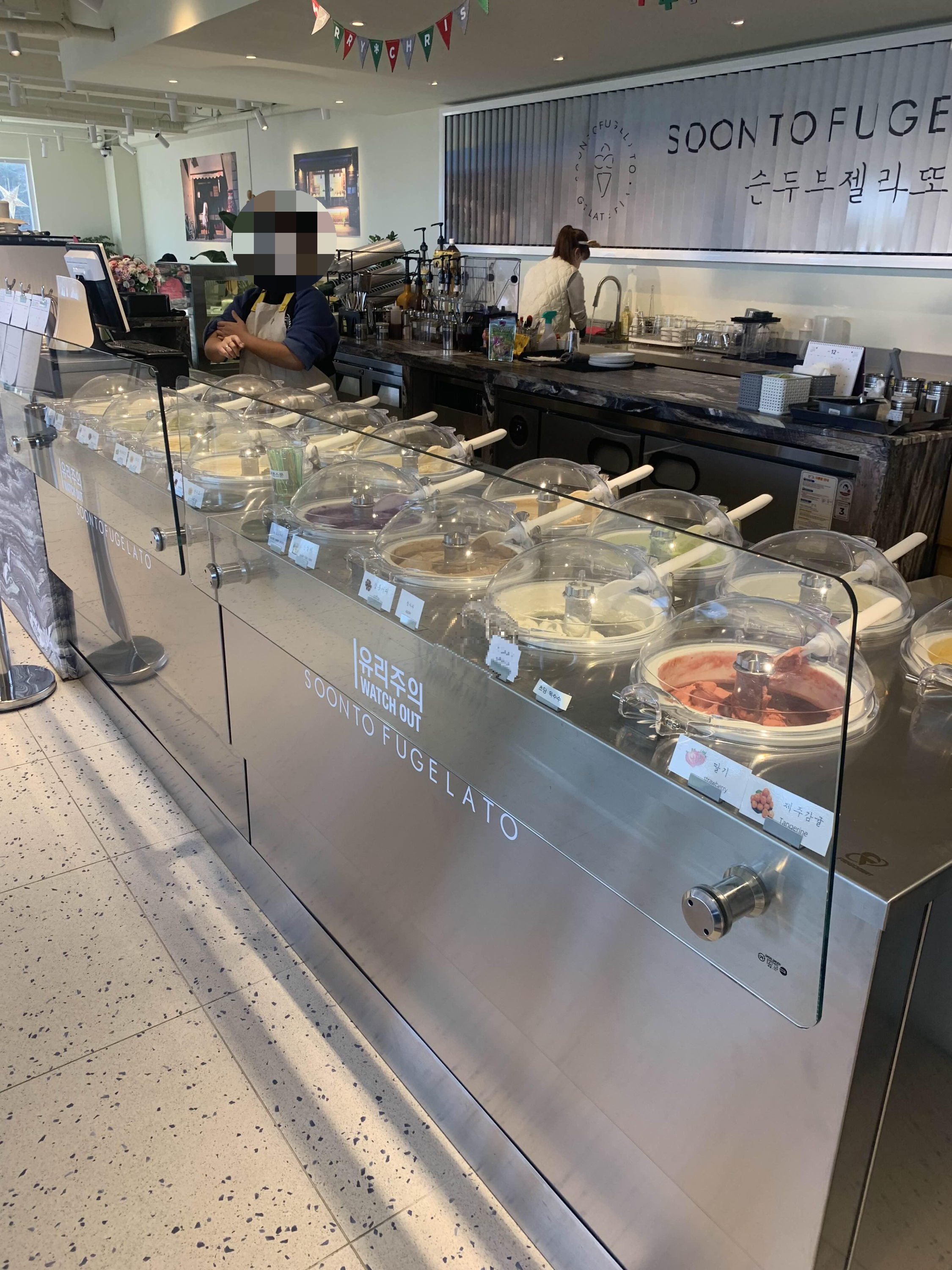 매장에 방문하면... 출입구에는 도넛(던킨도너츠 비슷한 모양으로 전시됨)이 보이고... 아이스크림은 베스킨 31과 유사하게 되어있다. 하지만, 베스킨 31과 다른 부분이... 요 아이스크림통이 돌아간다는 것이다. 아이스크림을 빙빙 돌리니... 느낌상 아이스크림이 쫀득한 느낌이 들 거라는 생각이 들었다. 젤라토 가격은 조그마한 컵 기준으로 4,500원! 매장의 대표메뉴 순두부로 하나 주문했다.