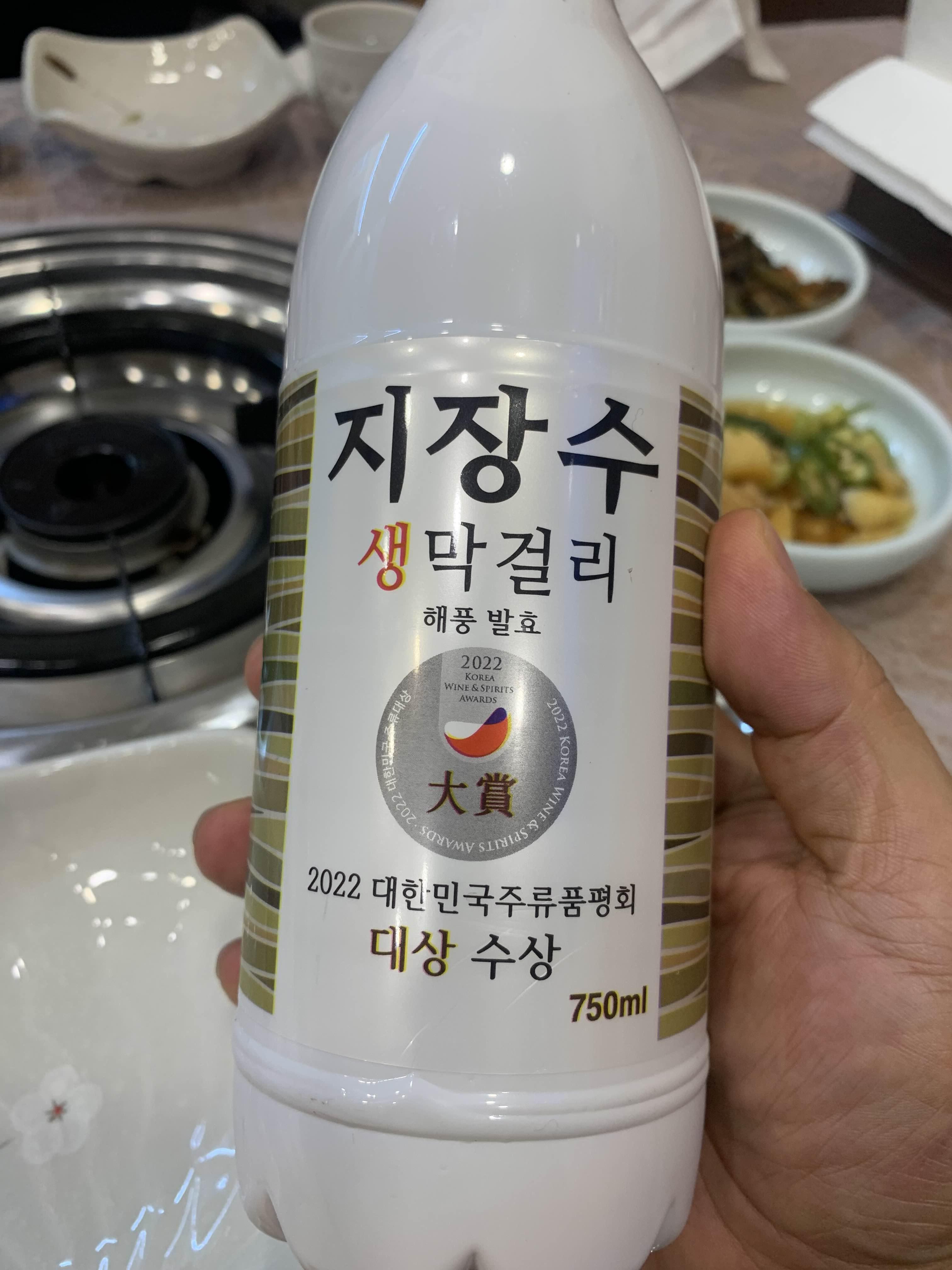 지난 방문 시 점심시간이라.... 술을 못 마셨는데... 오늘은 저녁식사라 막걸리 주문해 보았습니다. 삼척은 지장수 생막걸리가 주로 판매한다고 하시는군요. 막걸리의 발효는...... "해풍 발효" 막걸리라는 문구가 눈에 들어오더군요.ㅎㅎ 해풍으로 어떻게 발효를 시켰을까요?