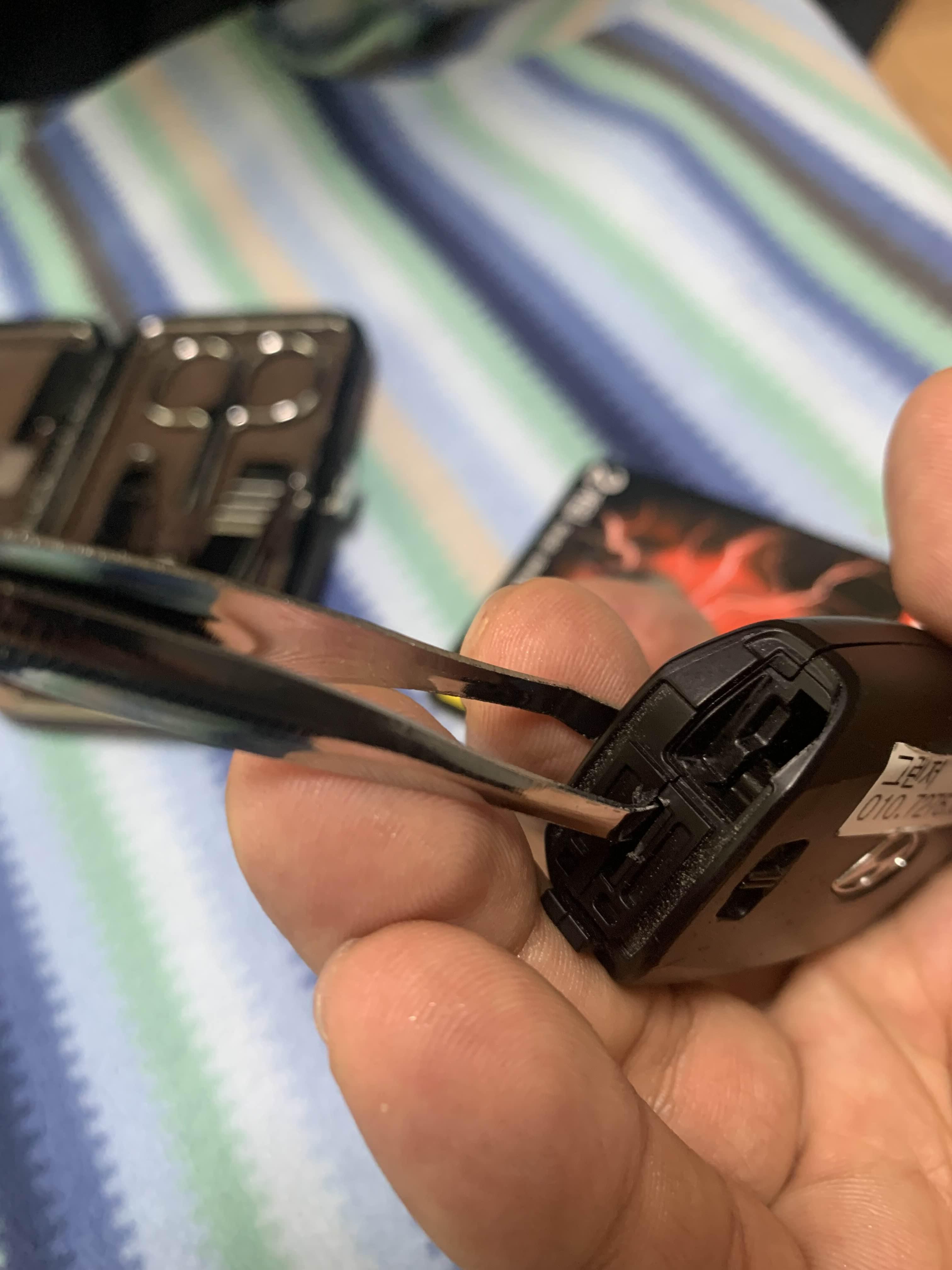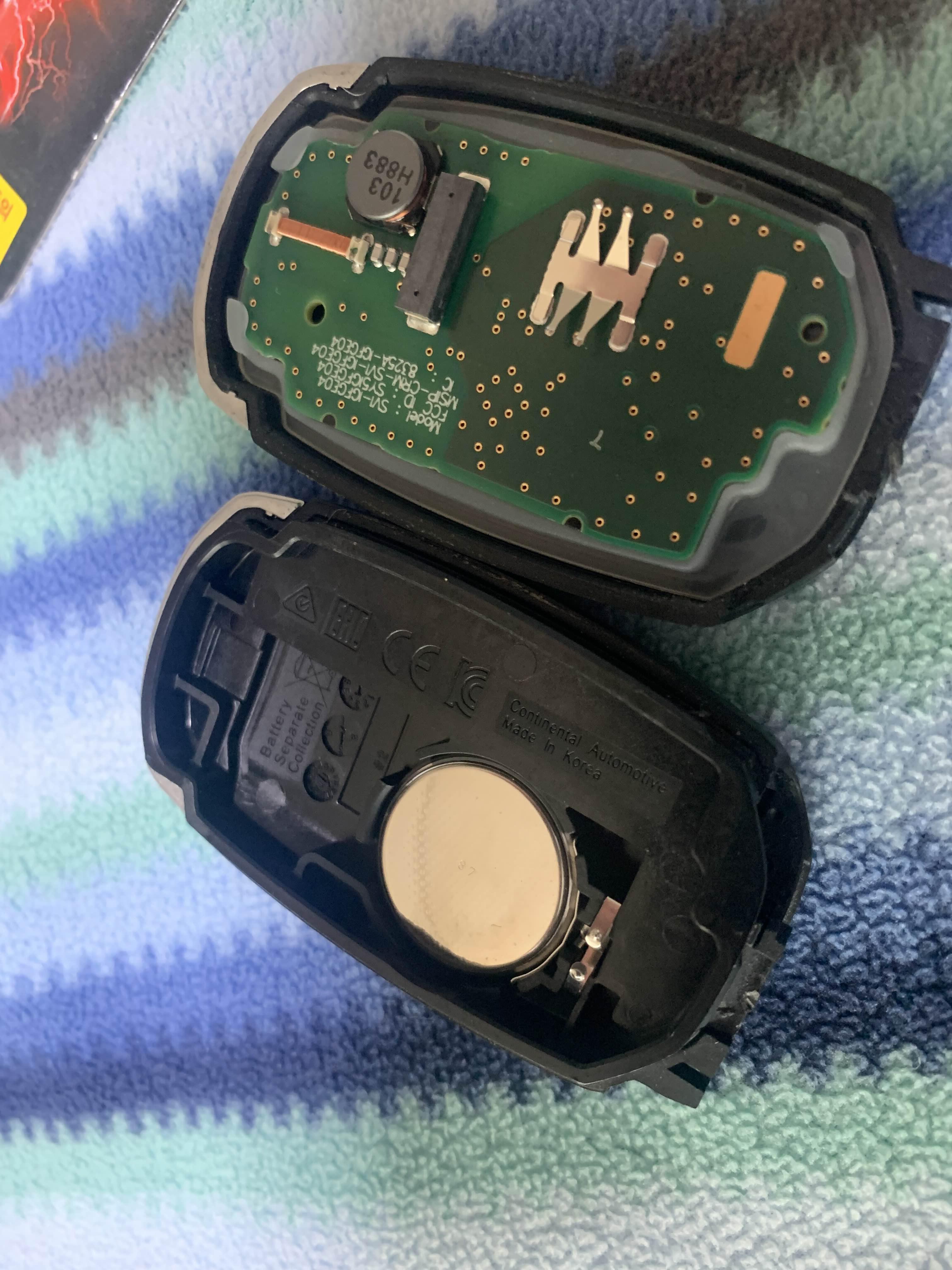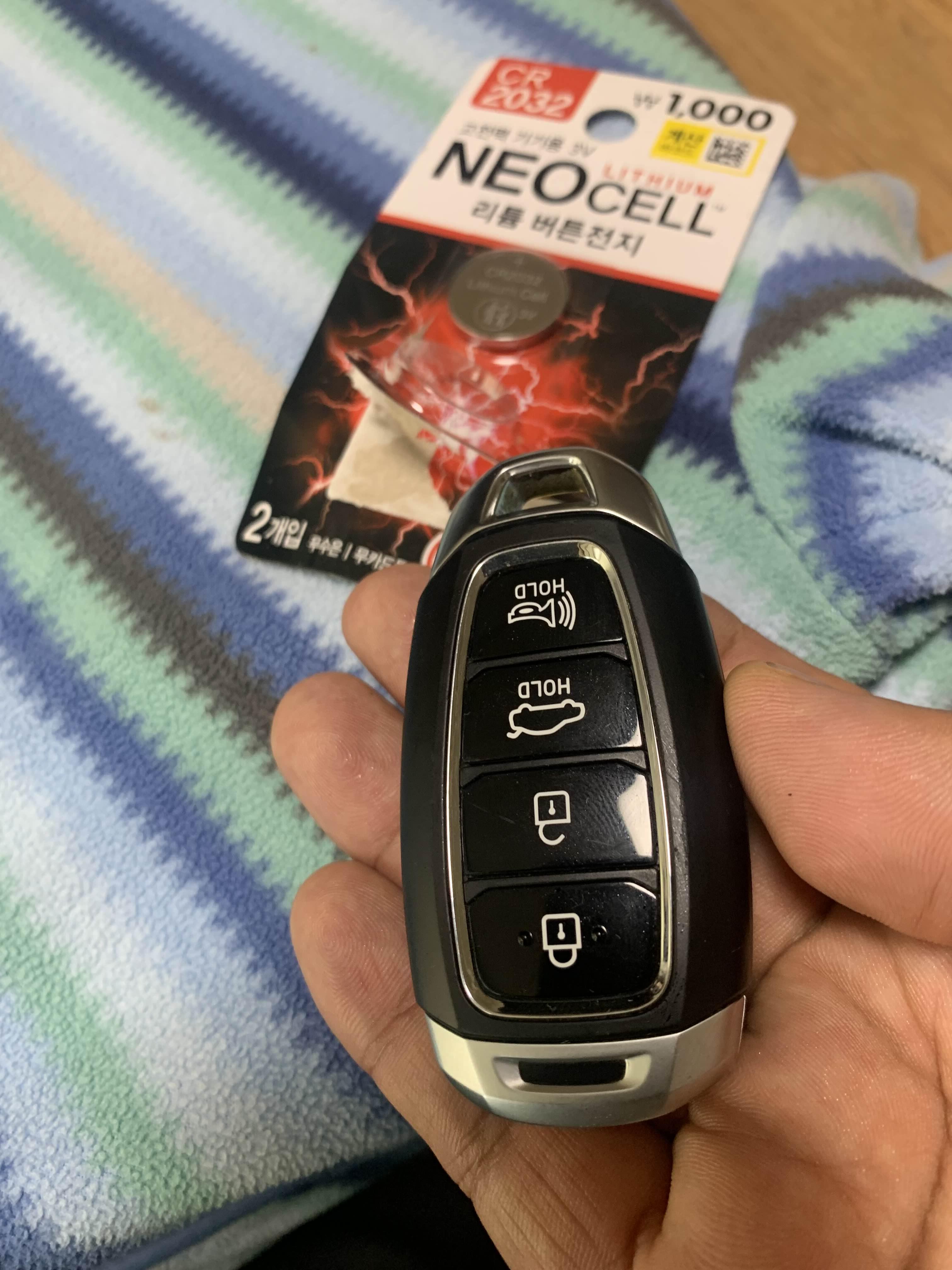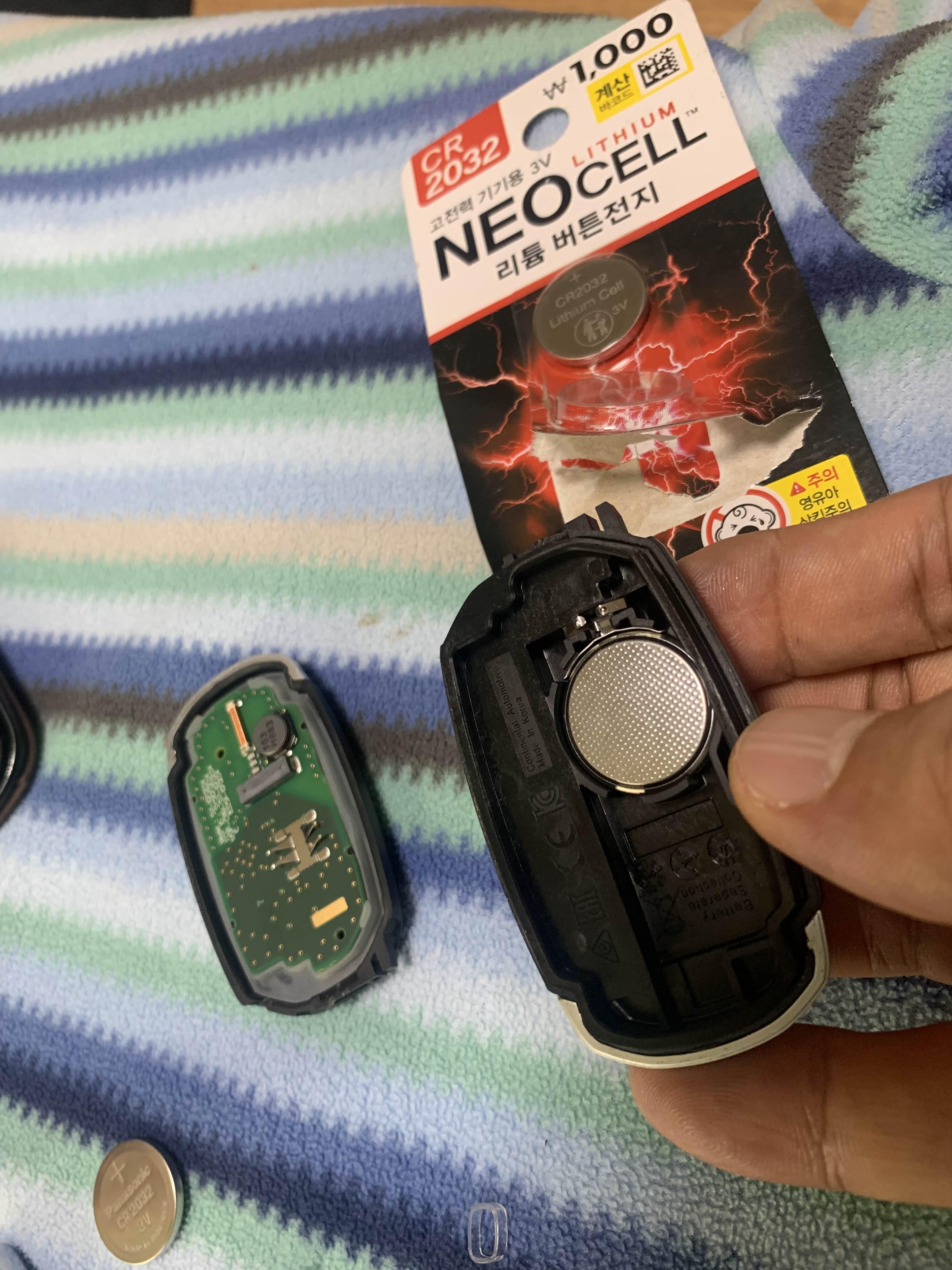 아래처럼 스마트키가 반으로 잘라졌으면 준비했던 배터리를 교체하면 끝!