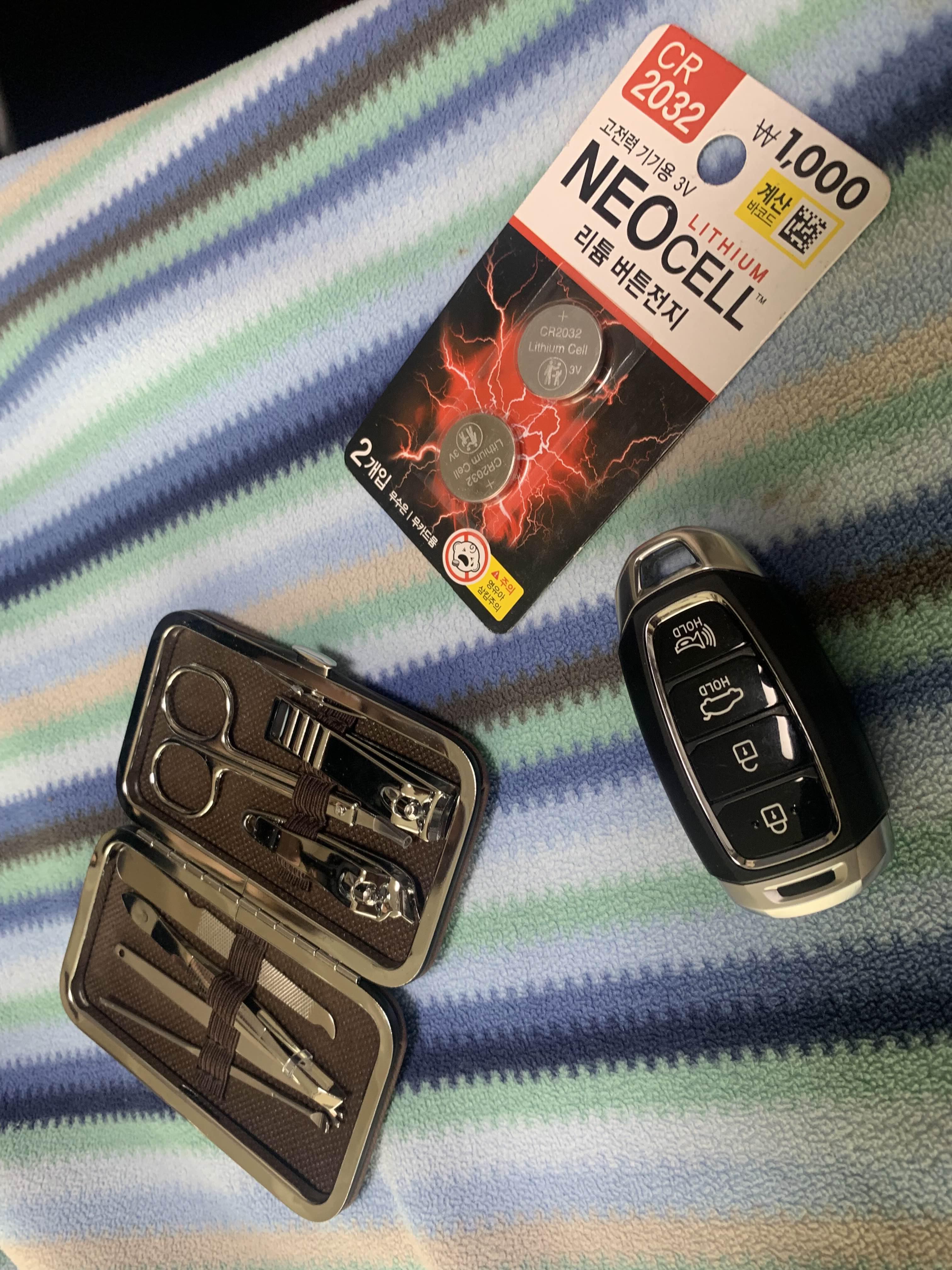 그랜저 스마트키에 사용되는 배터리는 CR2032가 사용됩니다. 다이소에서 배터리 2개 1,000원에 구입했습니다.