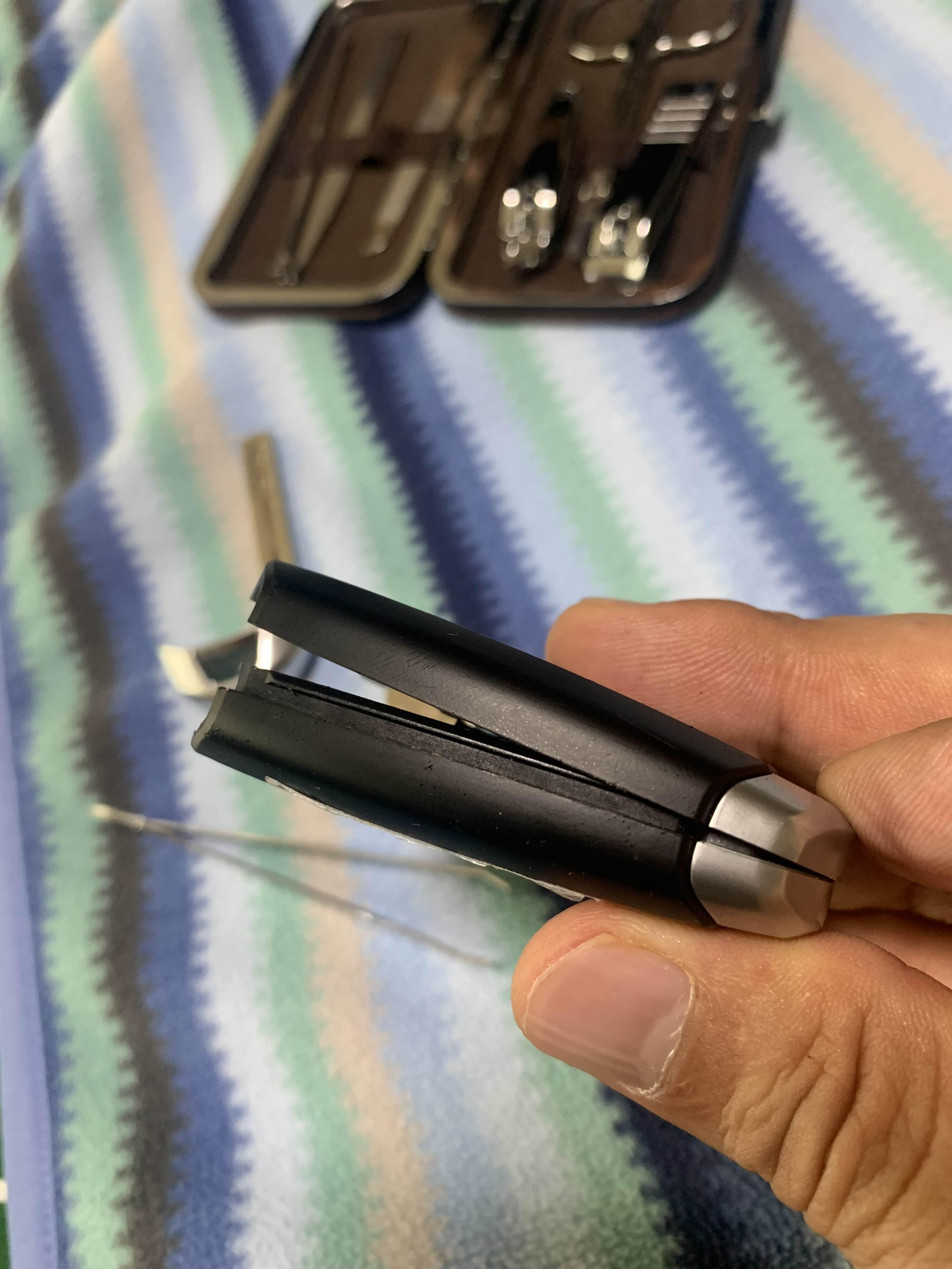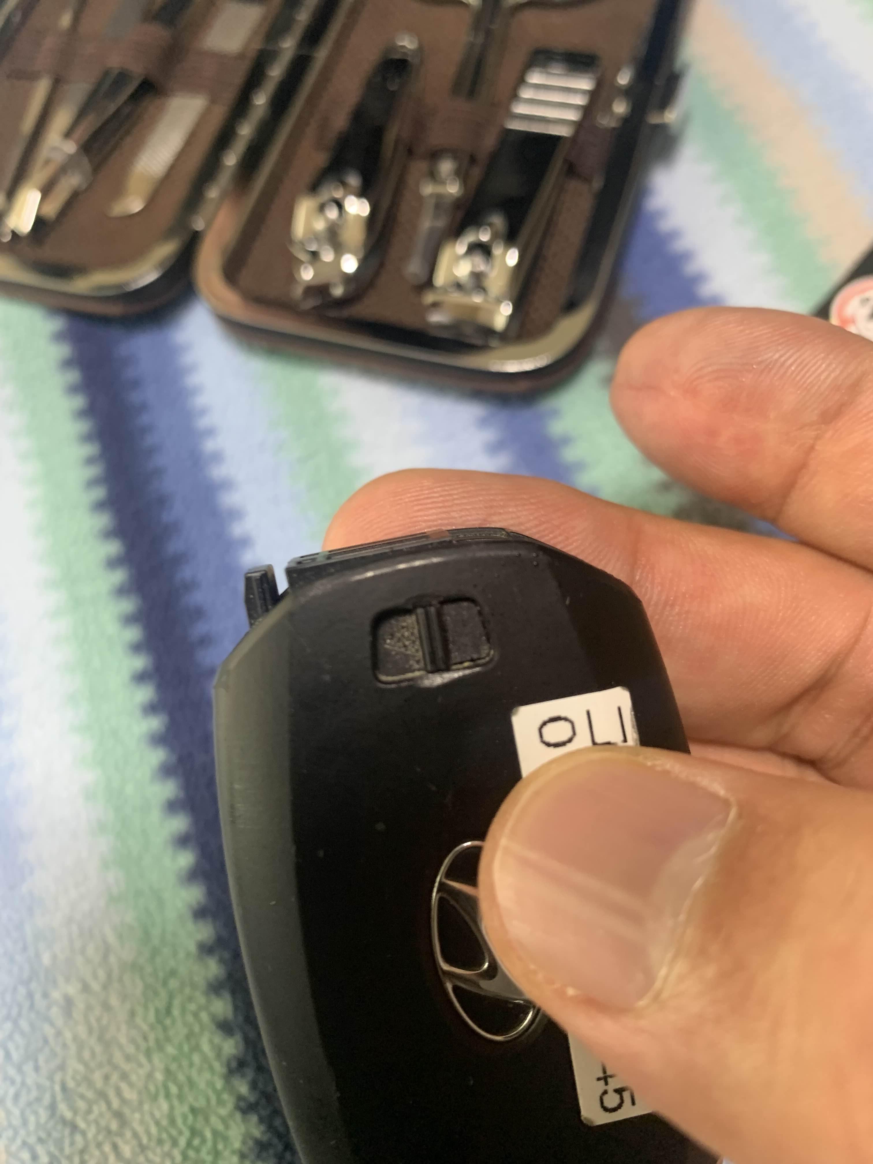 그렌저 스마트키의 수동열쇠를 탈락 후 중앙부위에 송곳을 이용하여 반절로 갈라줍니다.
