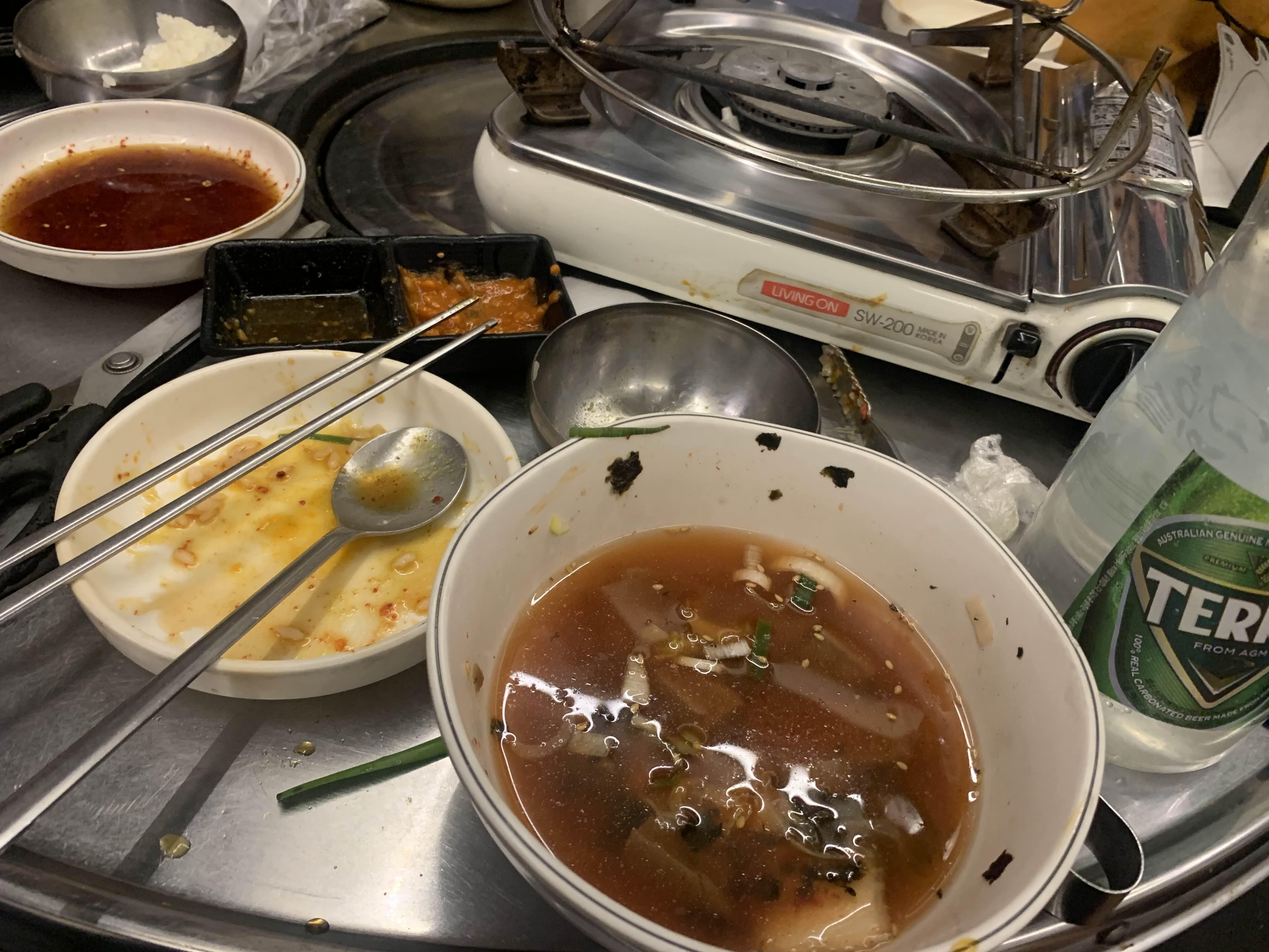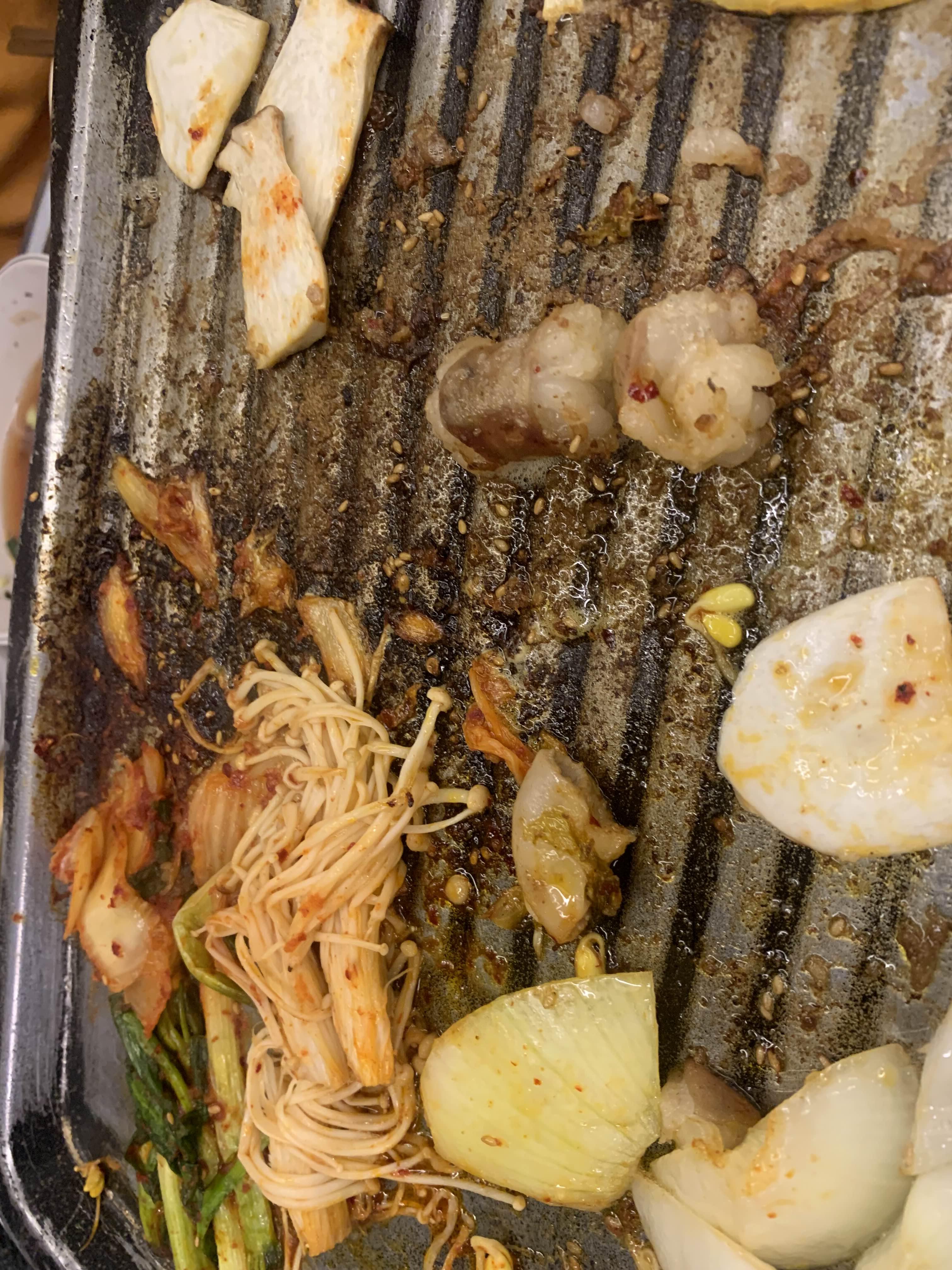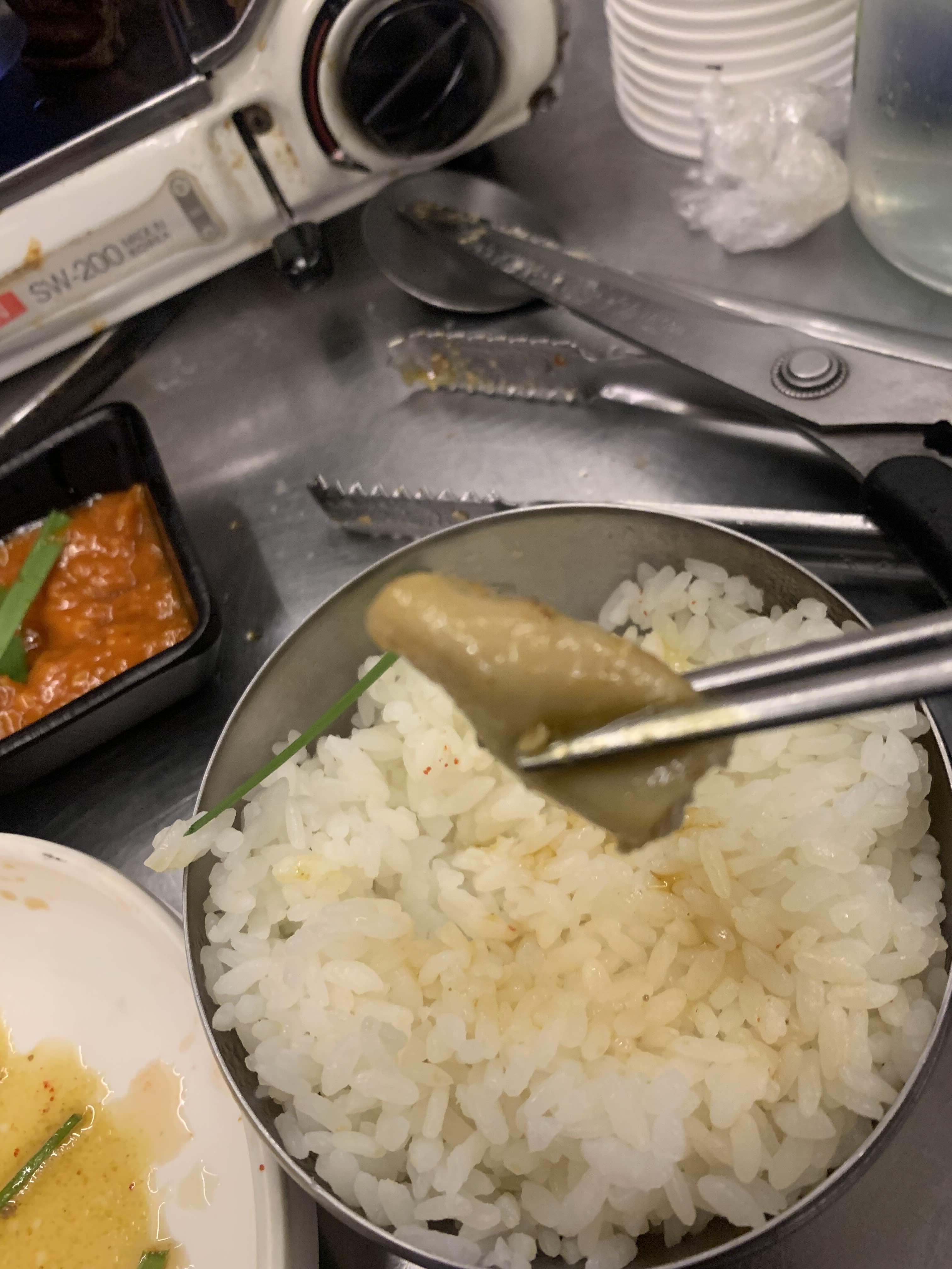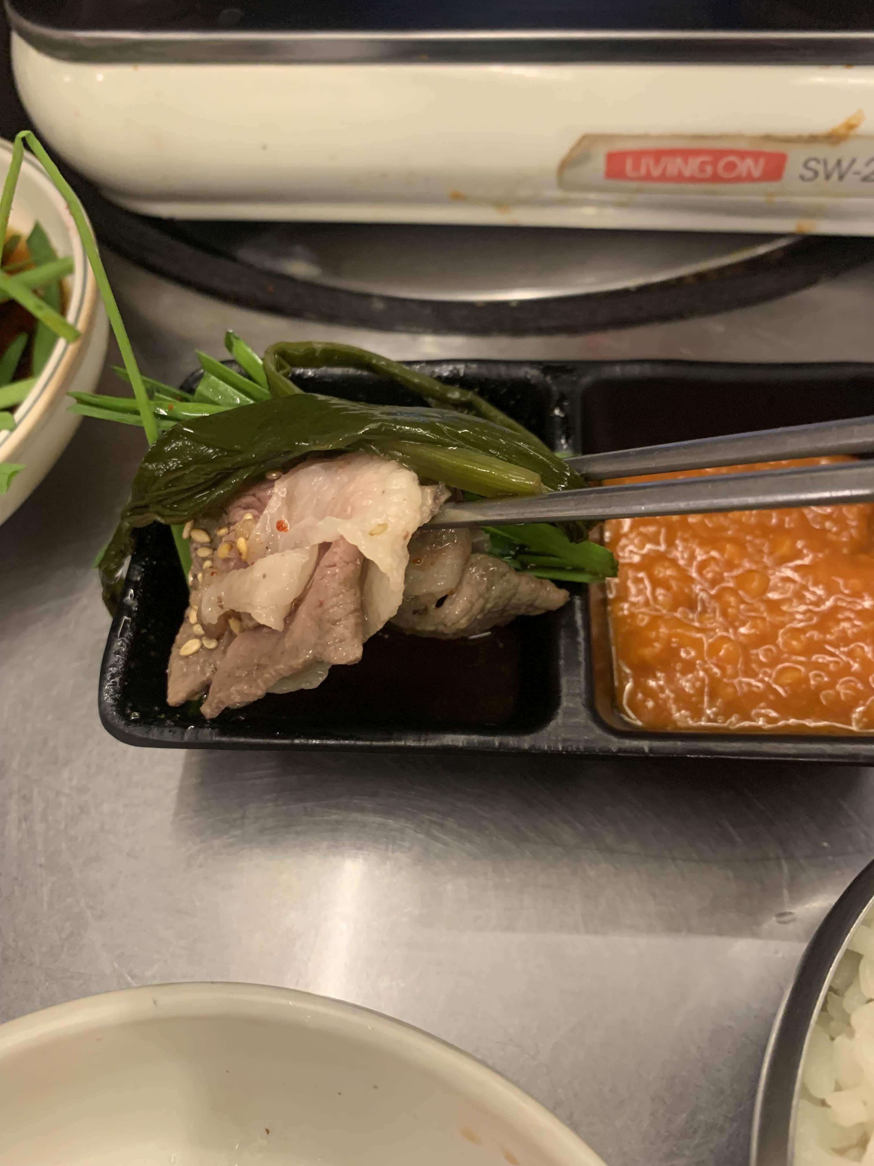 우삼겹의 식감은 좀 별로지만!!! 요 곱창 소스가 괜찮아서.. 명이잎과 우삼겹을 싸서 밥이랑 먹으면 맛이 꽤 괜찮더군요.