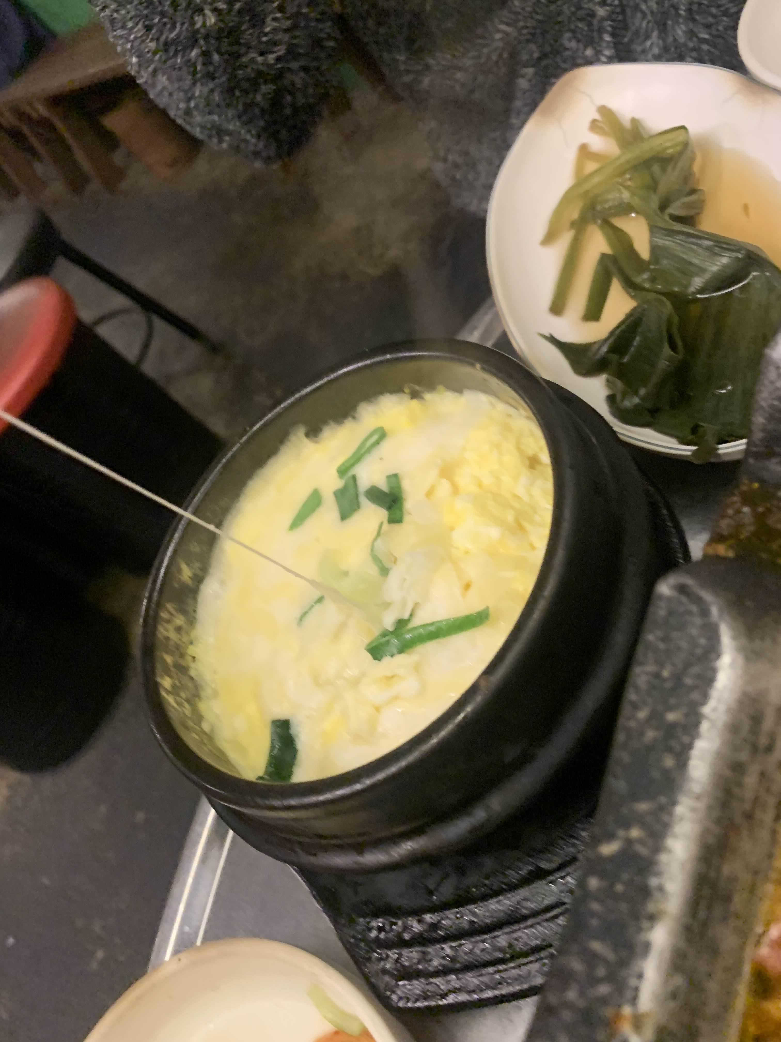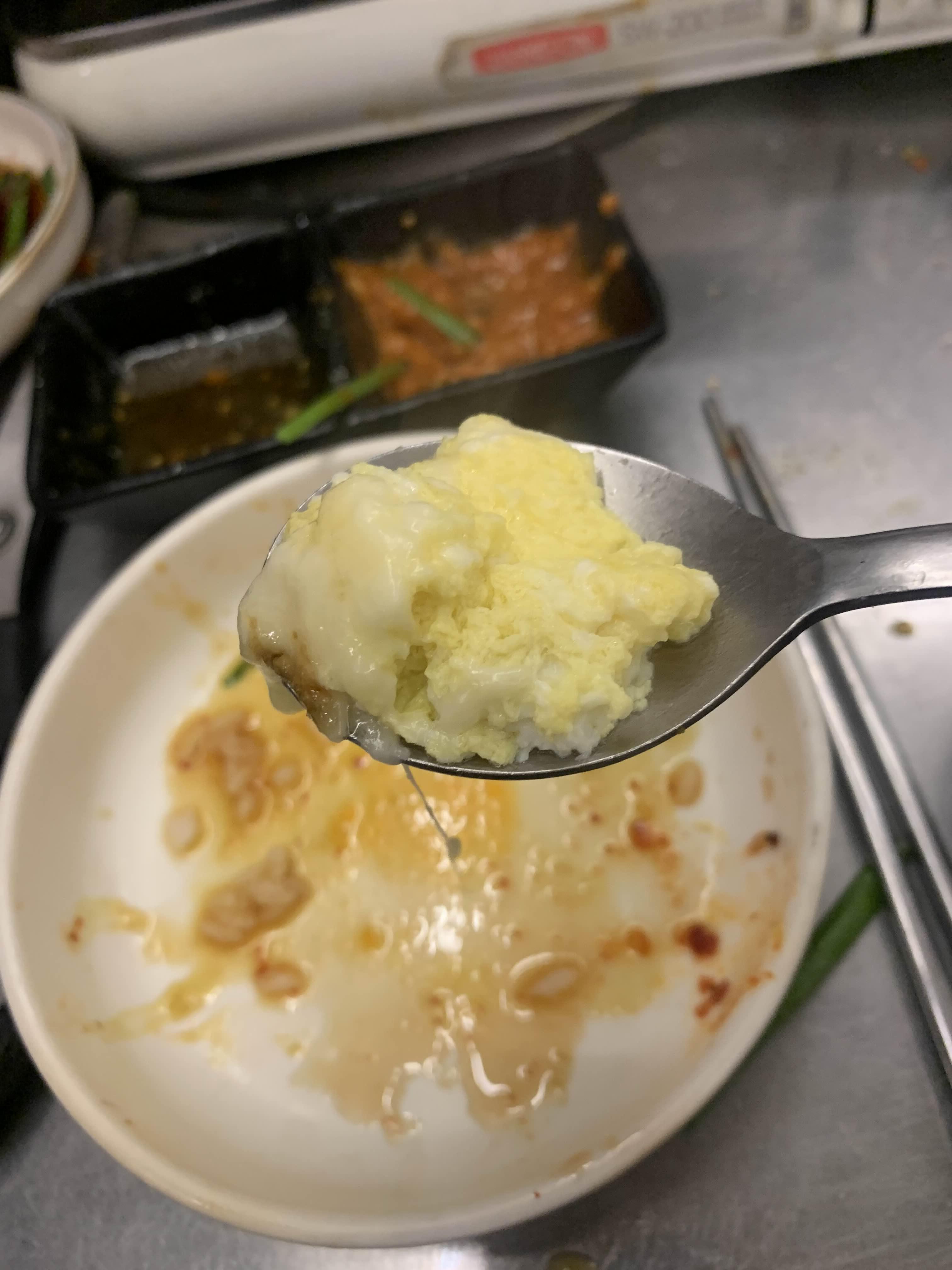 아이들 식사용 달걀찜!!! 달걀찜 위 치즈가 올려져서 나오는데.... 치즈가 달걀찜과 상당히 잘 어울리더군요. 곱창맛에 많이 실망했으나... 요 달걀찜은 상당히 맛나더군요.