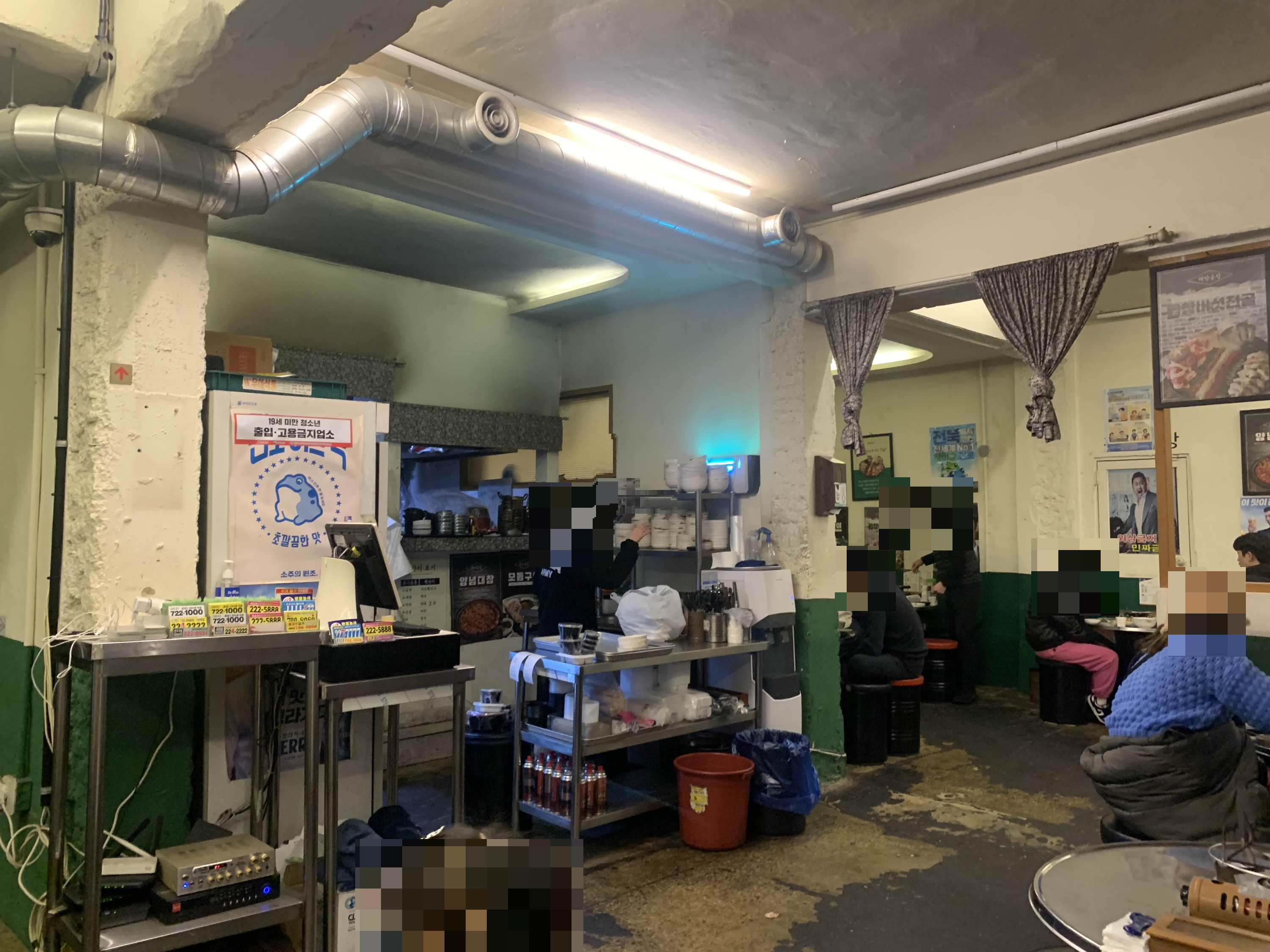식당에 방문하여 테이블에 앉아서.... 메뉴판을 스캔해 주었습니다. 다른 테이블 어떤 메뉴를 드시나? 스캔도 해보니... 메뉴 주문을 하기 위해... 무슨 메뉴가 가장 많이 나가는지 물어봅니다. "모둠구이"가 가장 많이 나간다고 하시더군요. 그래서 모둠구이 3개 주문했습니다. 식당 내부는 조금 지저분합니다. 그 주방옆 공간이 좀 많이 지저분해서... 그 부분은 다른 것으로 좀 시선을 가렸으면 좋겠더군요.