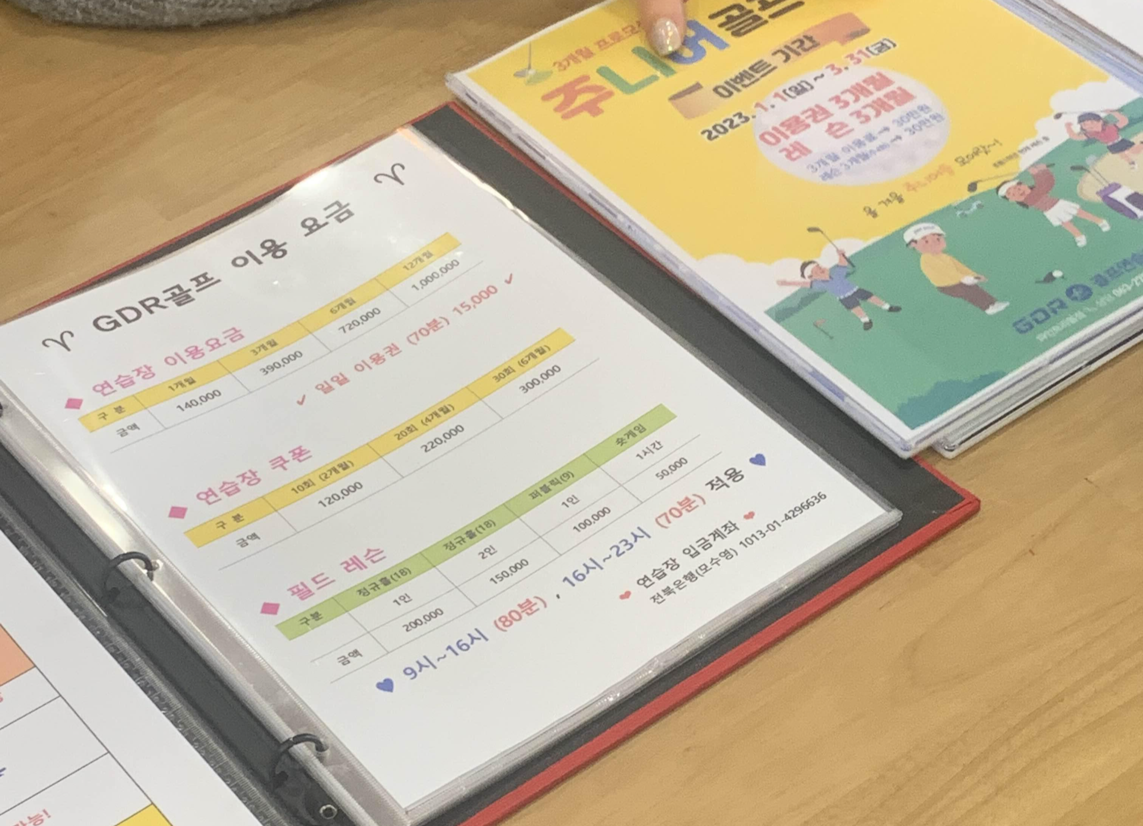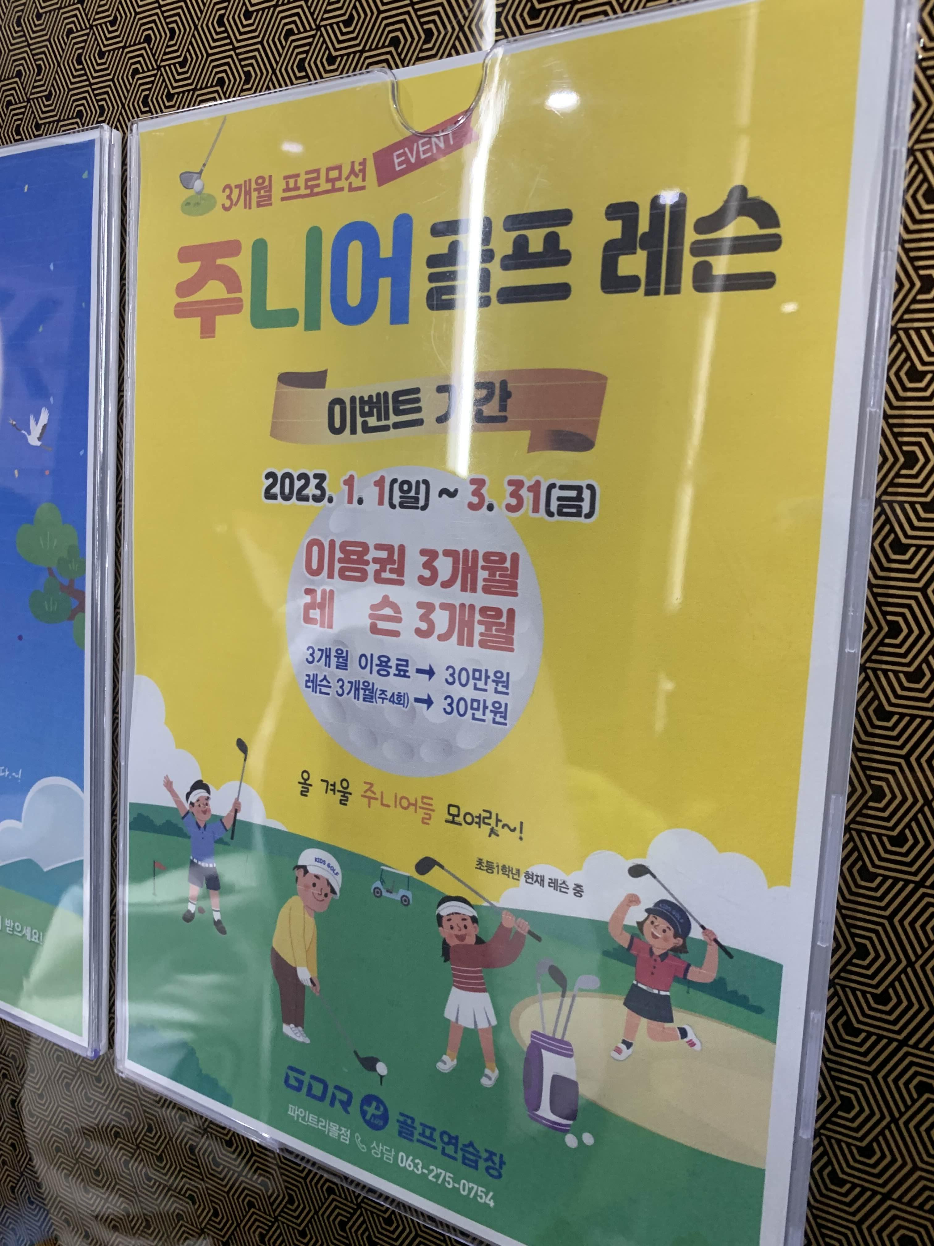 주니어 골프 레슨에 이벤트 안내문이 보인다. 3개월 연습/레슨 비용이 60만 원이다. 아!!! 비싸다...
