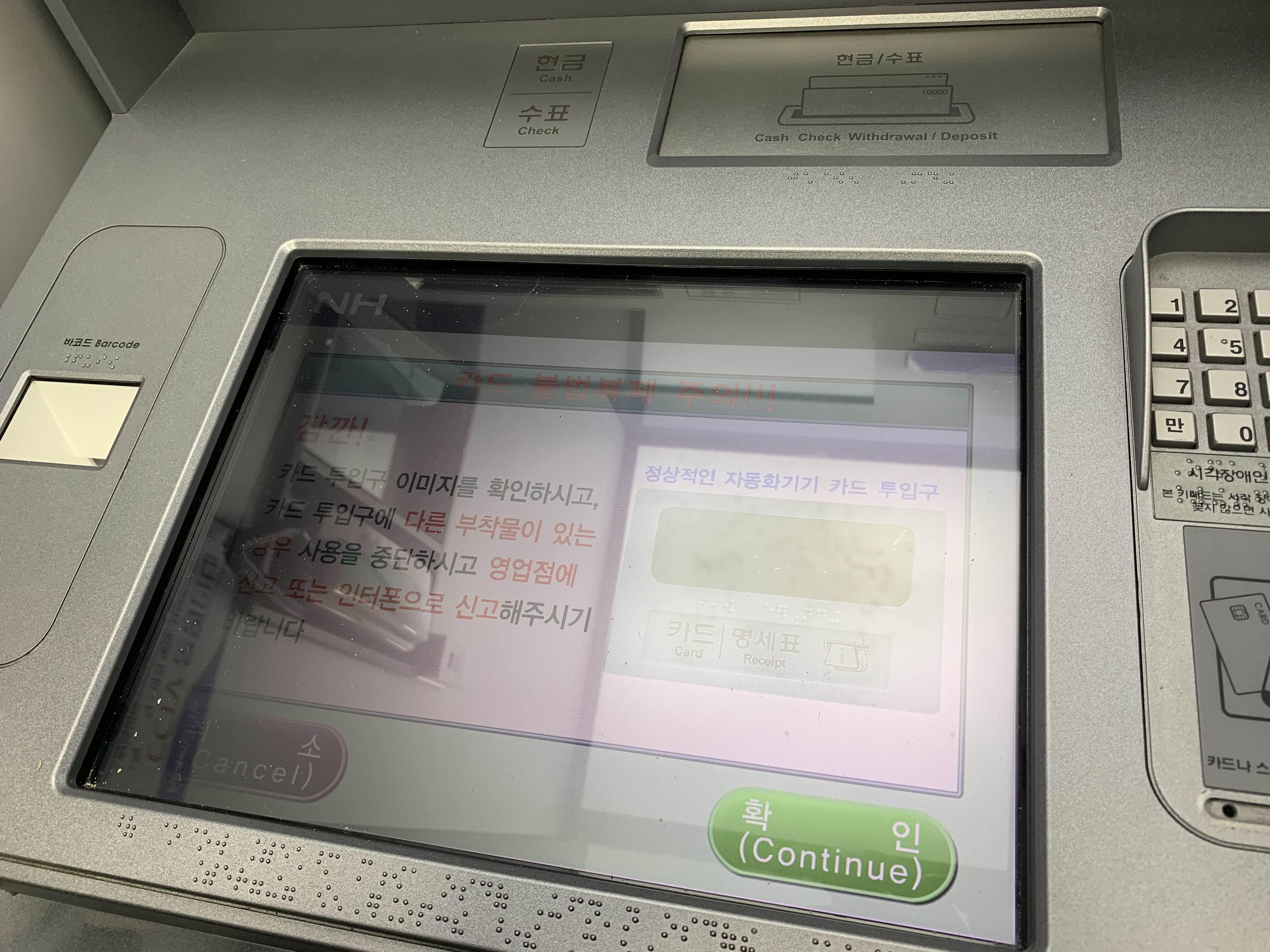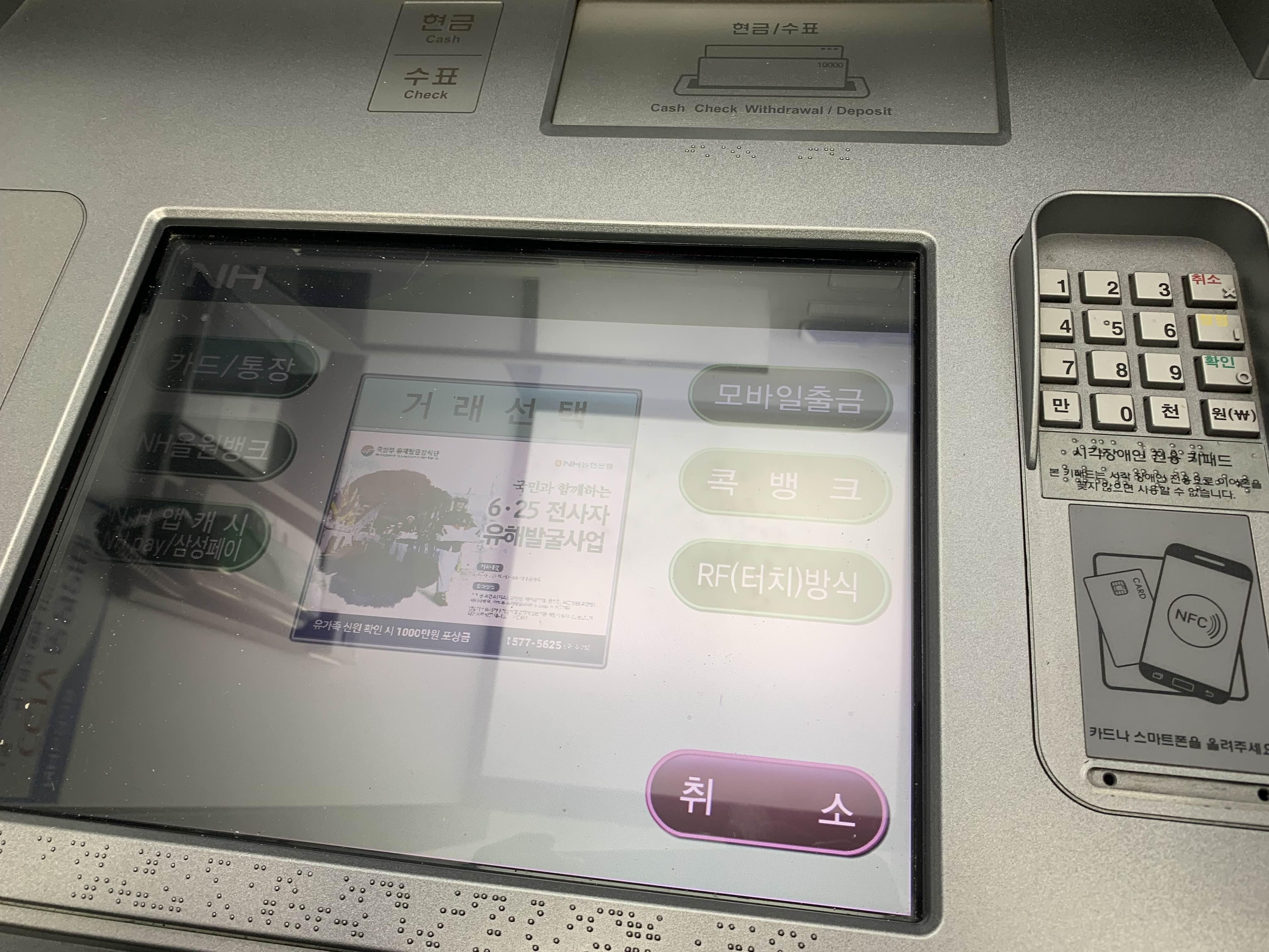 현금을 ATM에서 인출하여야 하는데... 인출되는 카드가 없다.
