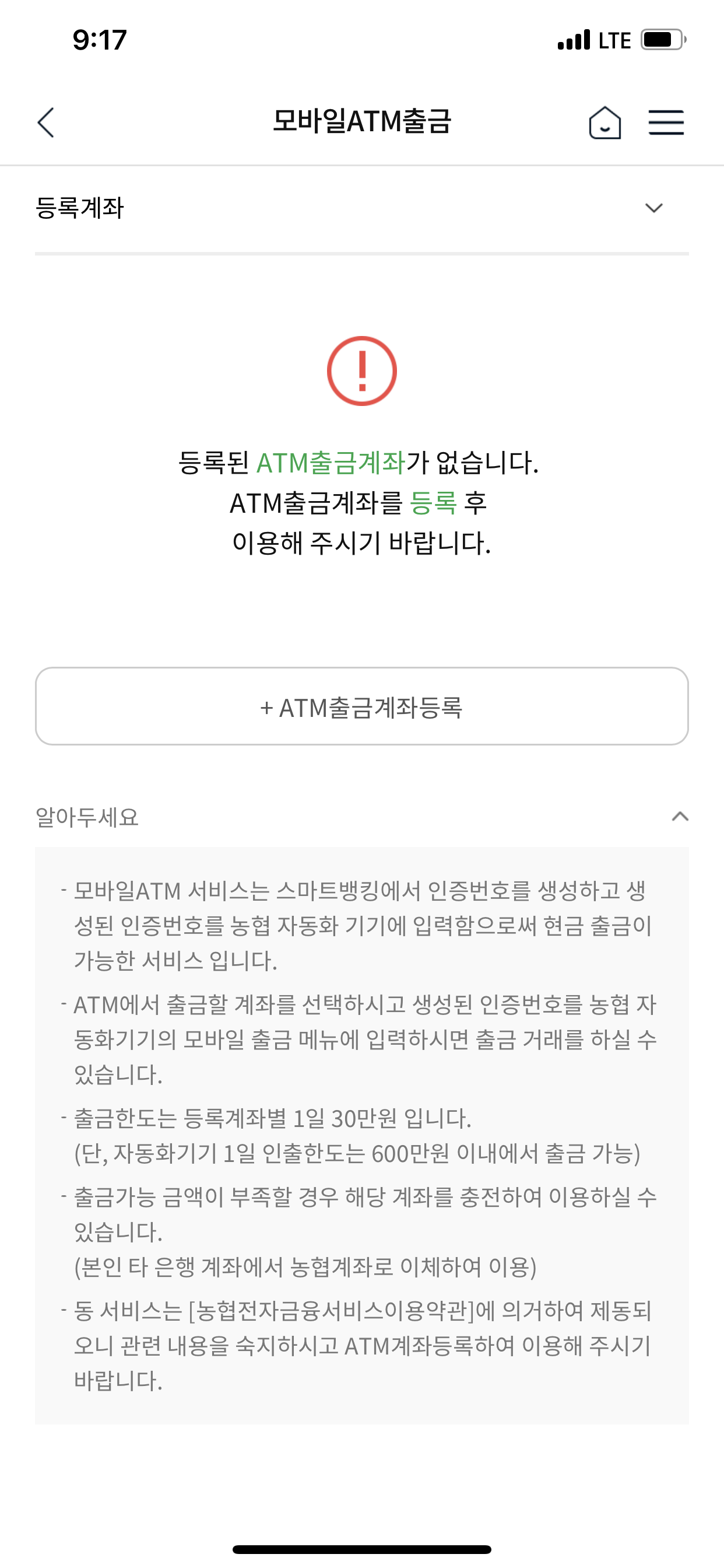 안드로이드 스마트폰의 경우 NFC를 이용하여 ATM 출금이 가능했다. 하지만... 아이폰의 경우 NFC 연결이 안 된다. 하지만!! 농협모바일뱅킹 앱을 이용하여 인출이 가능하다.