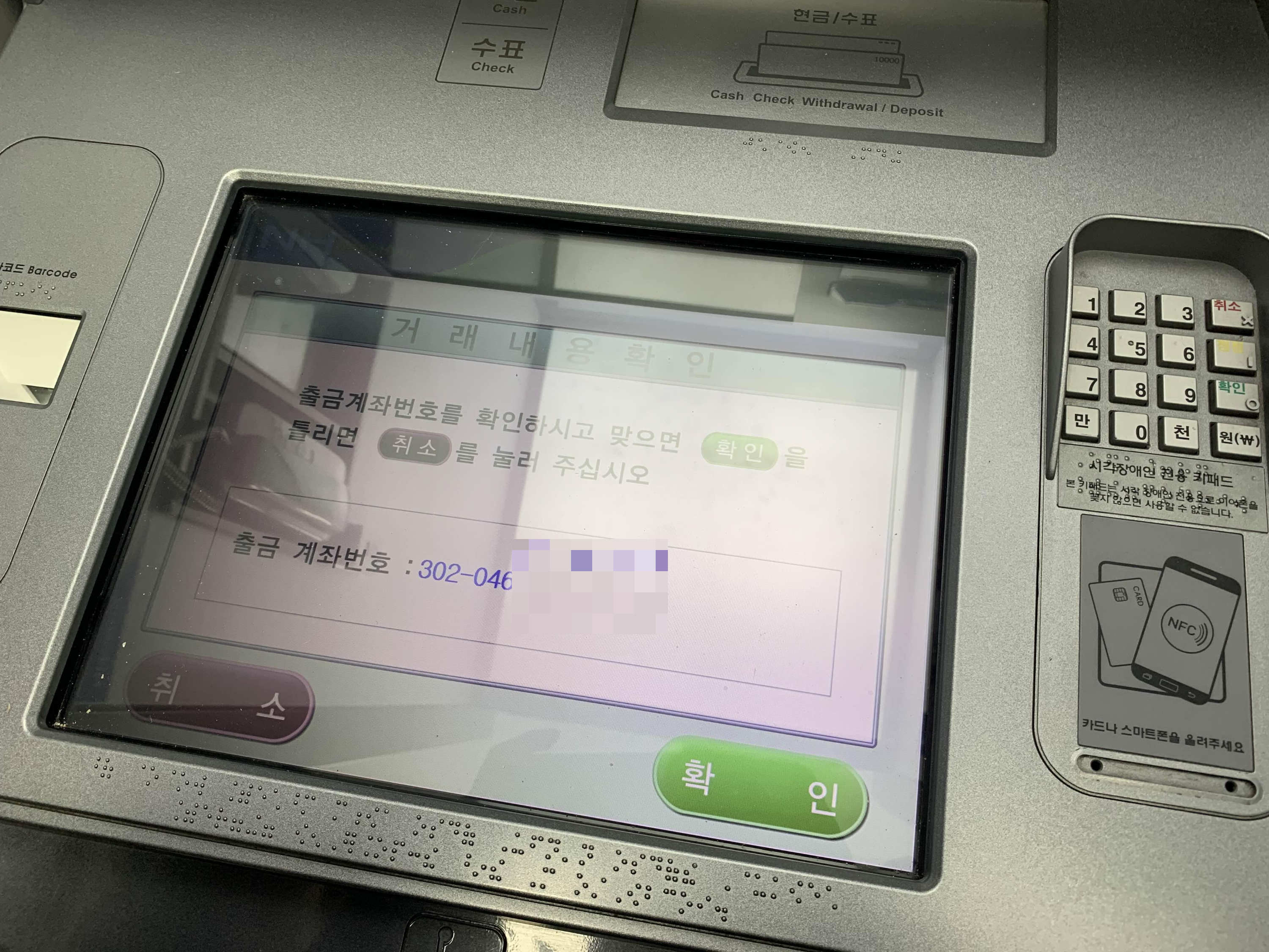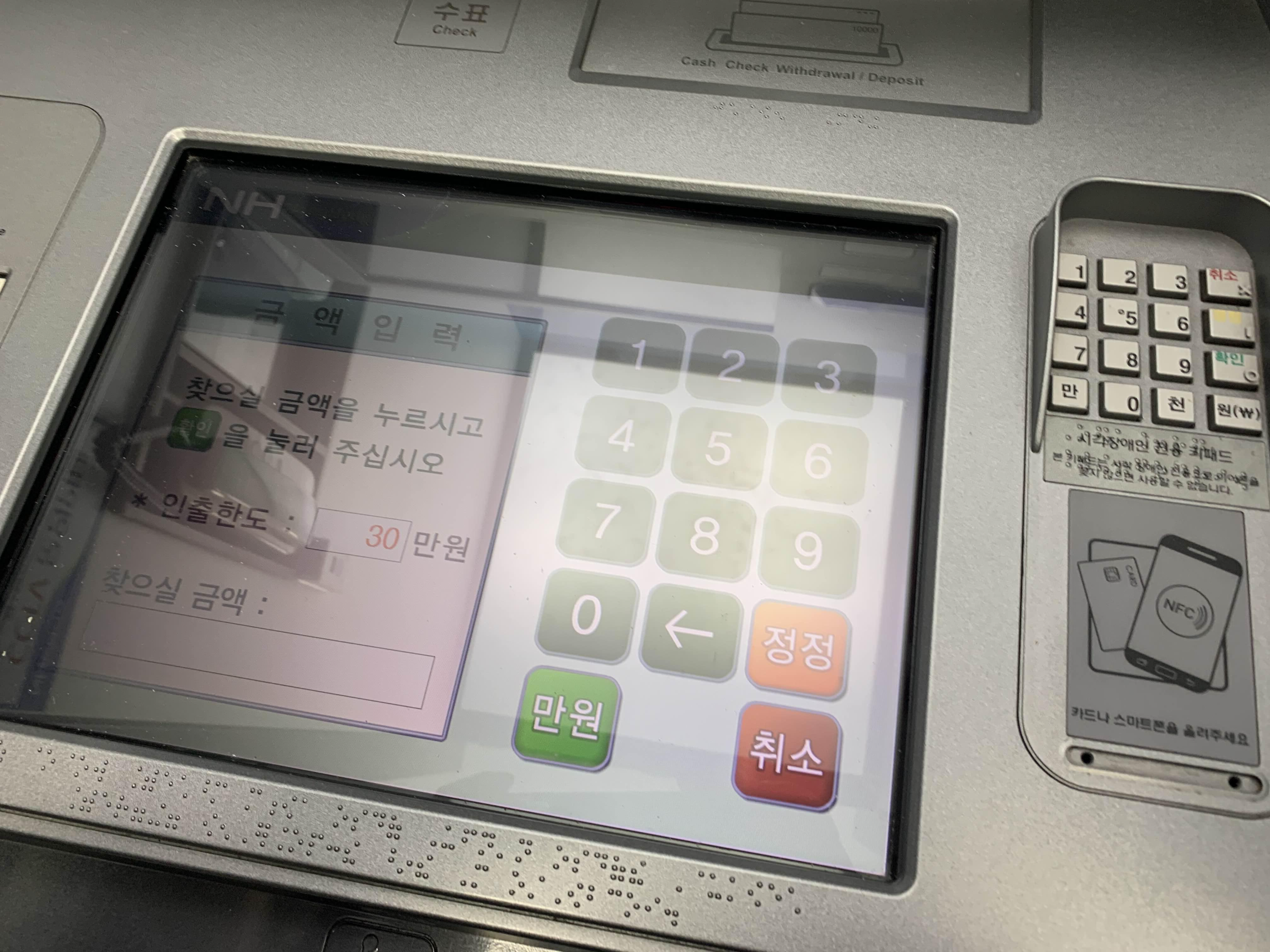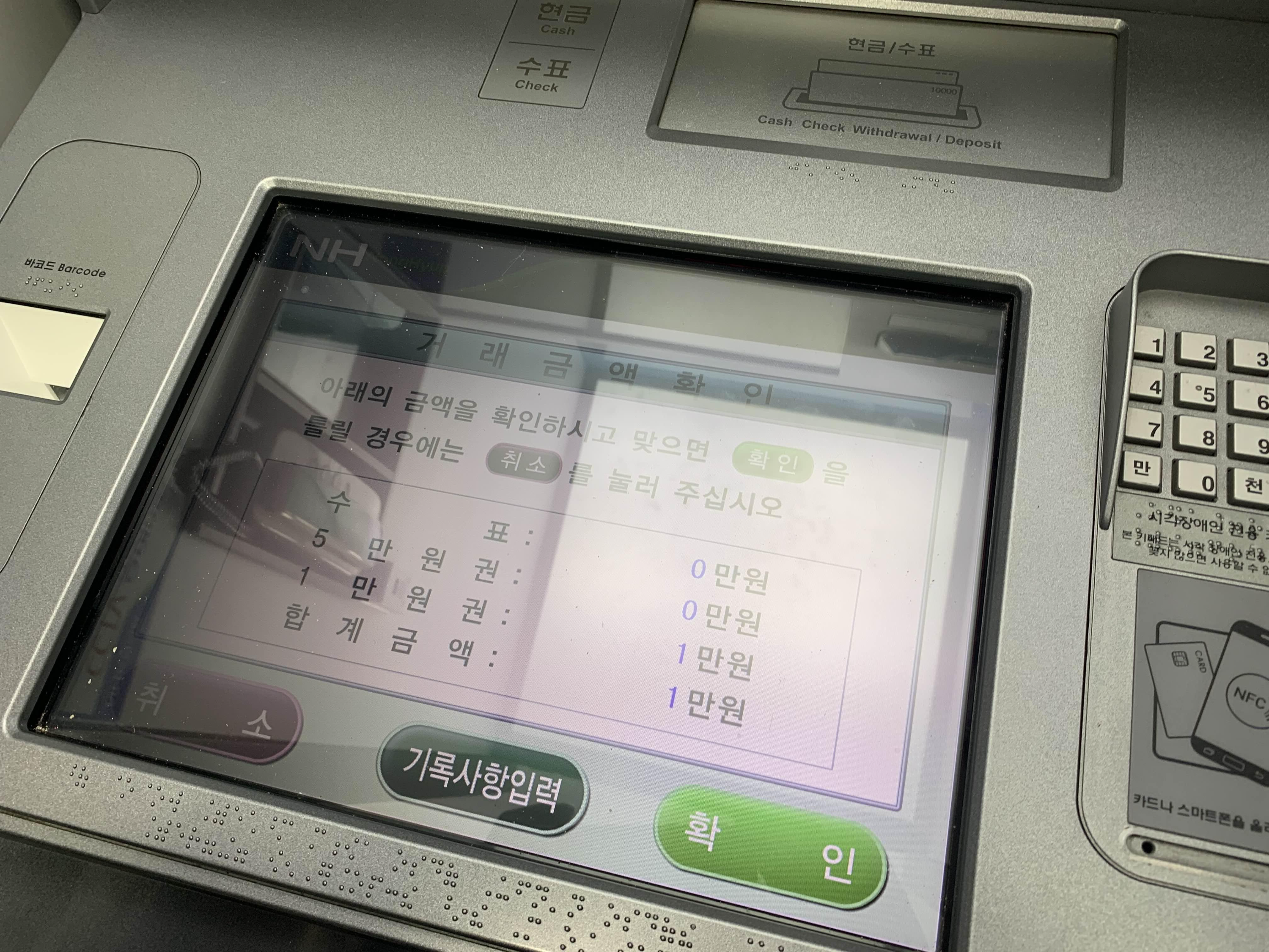 마지막으로 인출기의 현금을 찾아주면 끝!