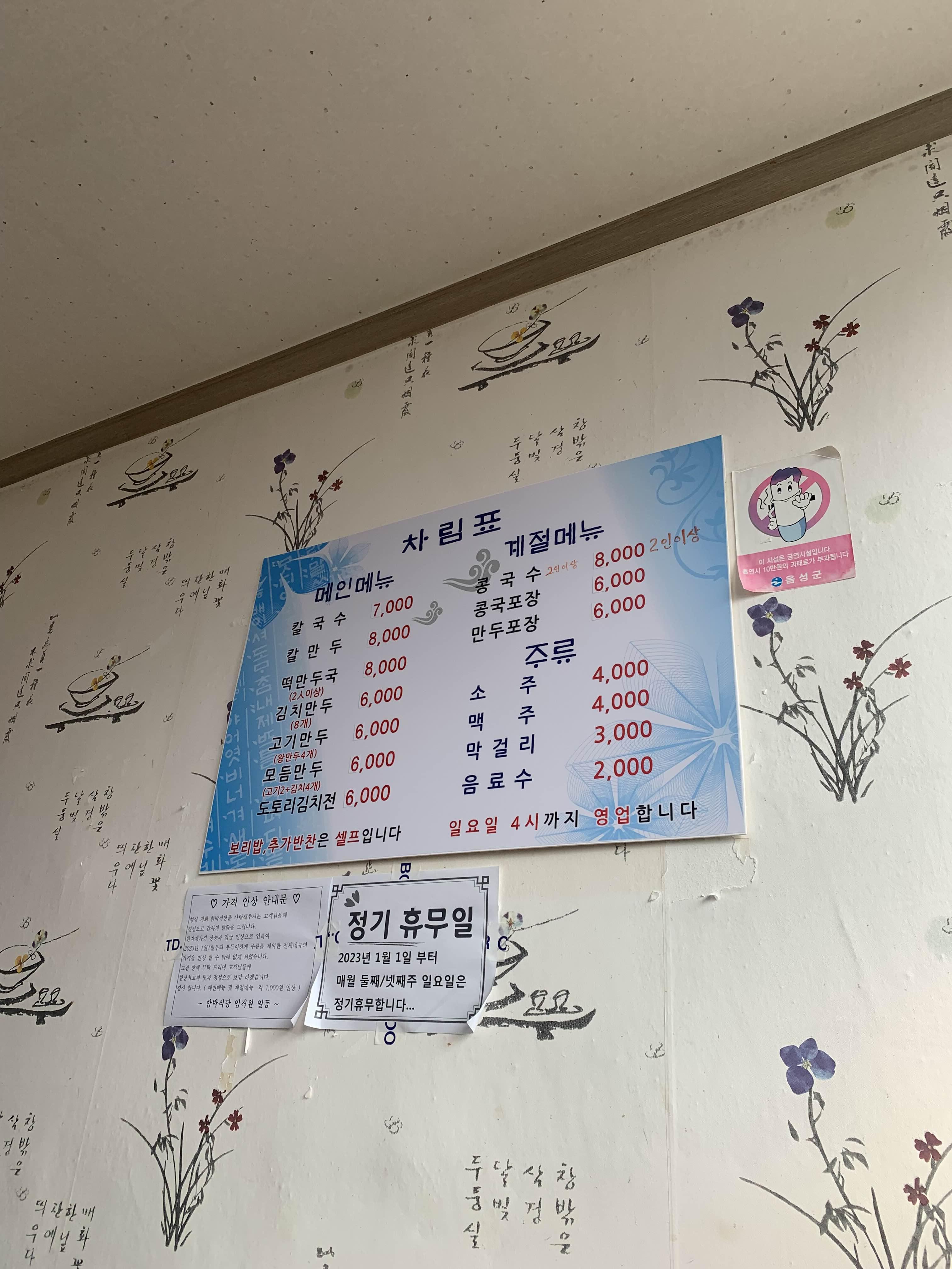 식당에 방문하여 메뉴판을 스캔!! 대표메뉴 칼국수 2개 주문했습니다. 칼국수를 먹기 전 셀프코너에 보리밥을 맛볼 수 있도록 준비되어 있지만... 칼국수 양이 꽤 많아서 보리밥은 패스해 주었습니다. 음식을 주문하고..... 너무 오랫동안 칼국수가 나오지 않더군요. 주문이 이상하게 되었는지... 주문한 지 대략 30분 정도 지나서야... 칼국수가 나왔습니다. ㅠㅠ