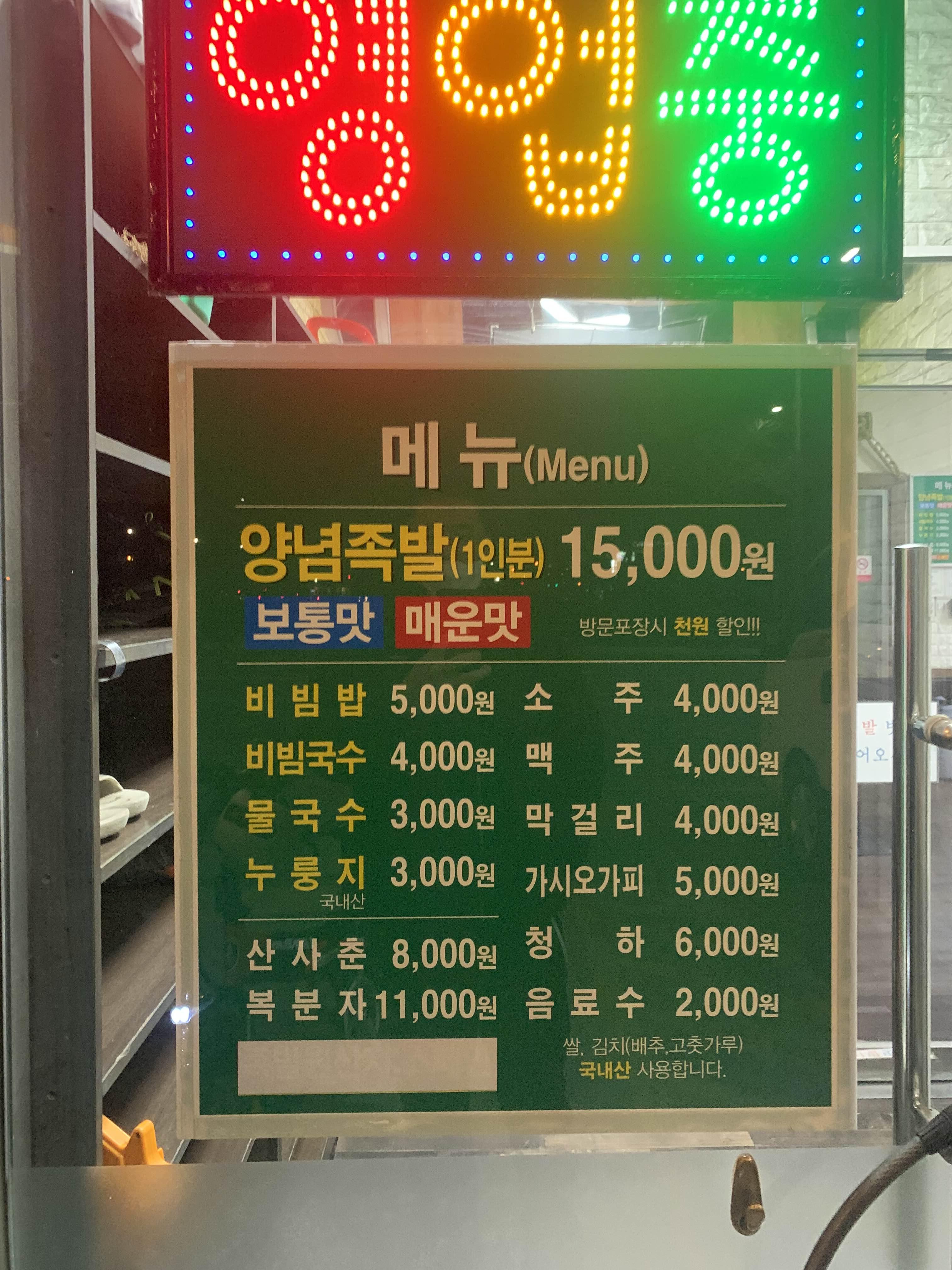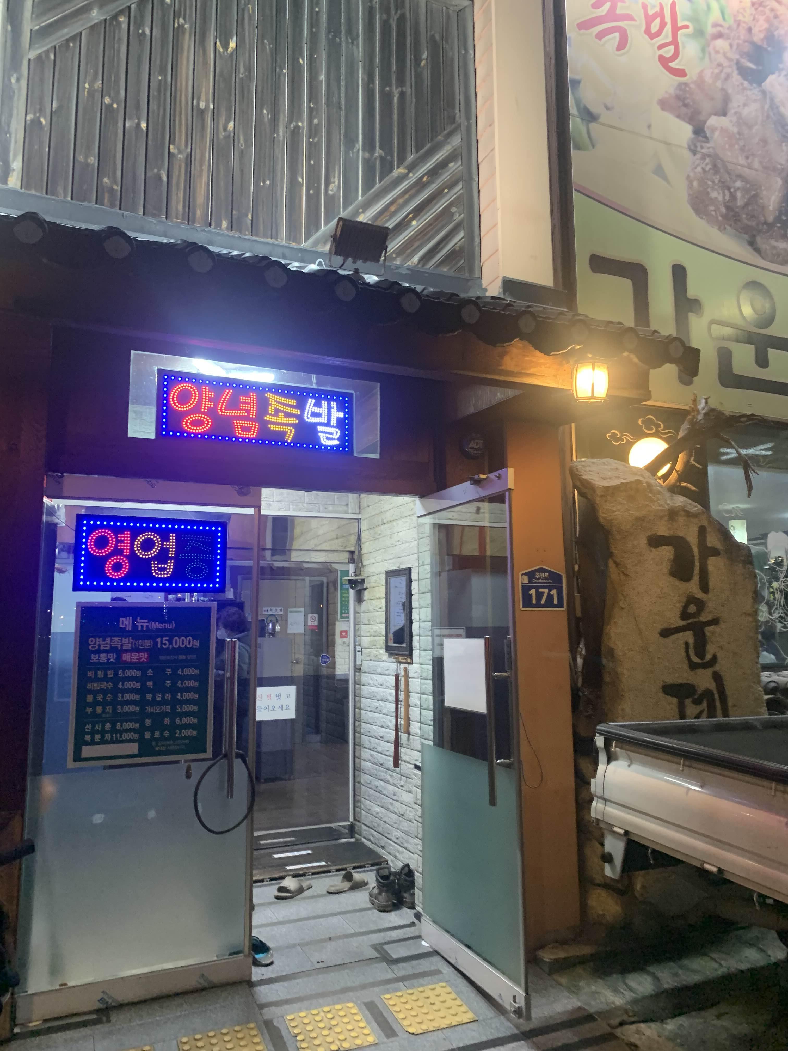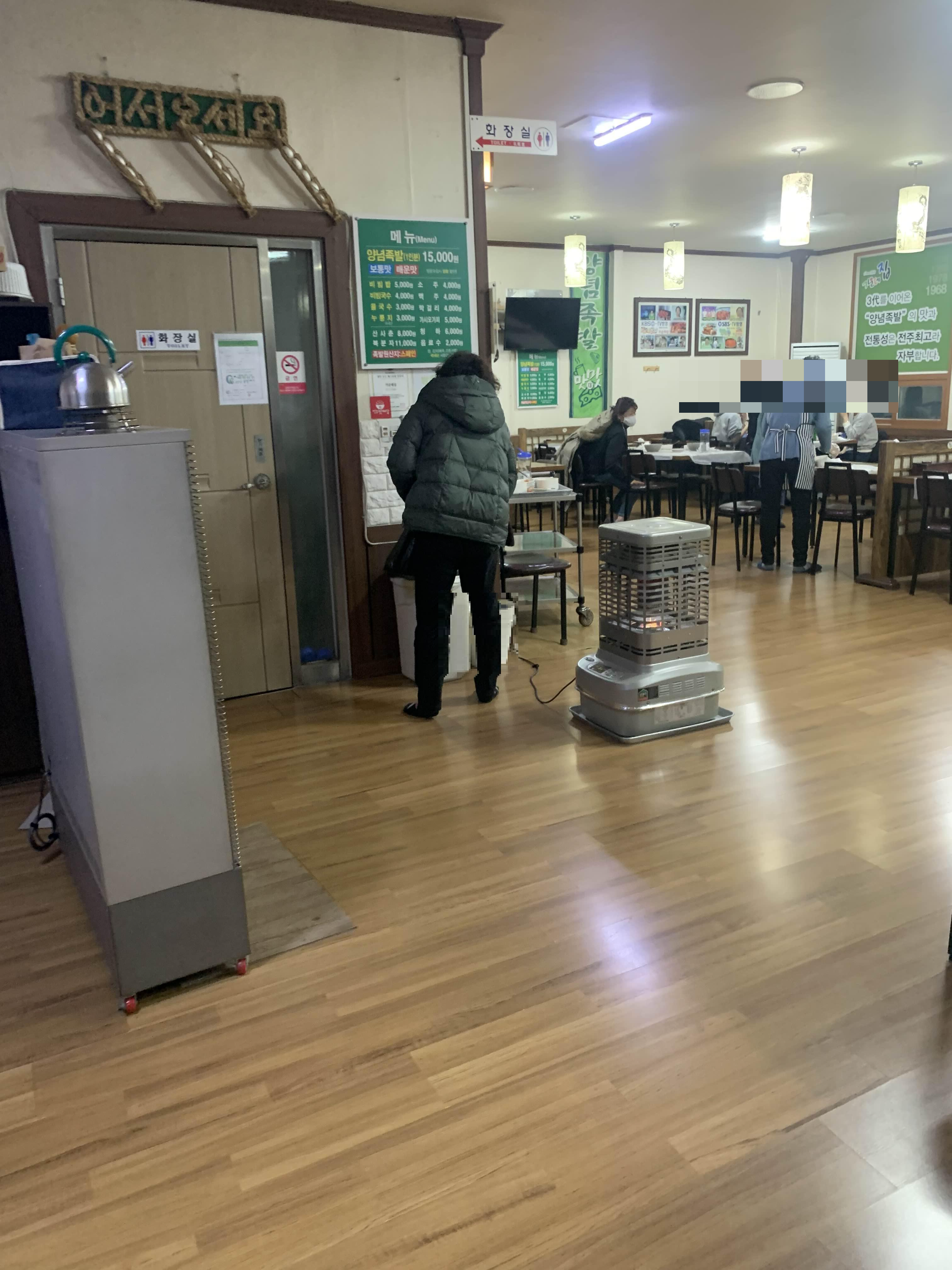 전주 팔복동 추천대교 근처에 위치한 식당! 족발 식당이 3개가 있는데.. 그중 가운데에 위치한 가운데집^^ 메뉴는 단일메뉴인 족발이 있는데. 보통맛과 매운맛이 준비되어 있습니다. 주문한 보통맛, 매운맛 하나씩 포장주문했습니다. 대략 15분 정도 시간이 소요되며... 포장주문을 찾으러 가보았습니다.