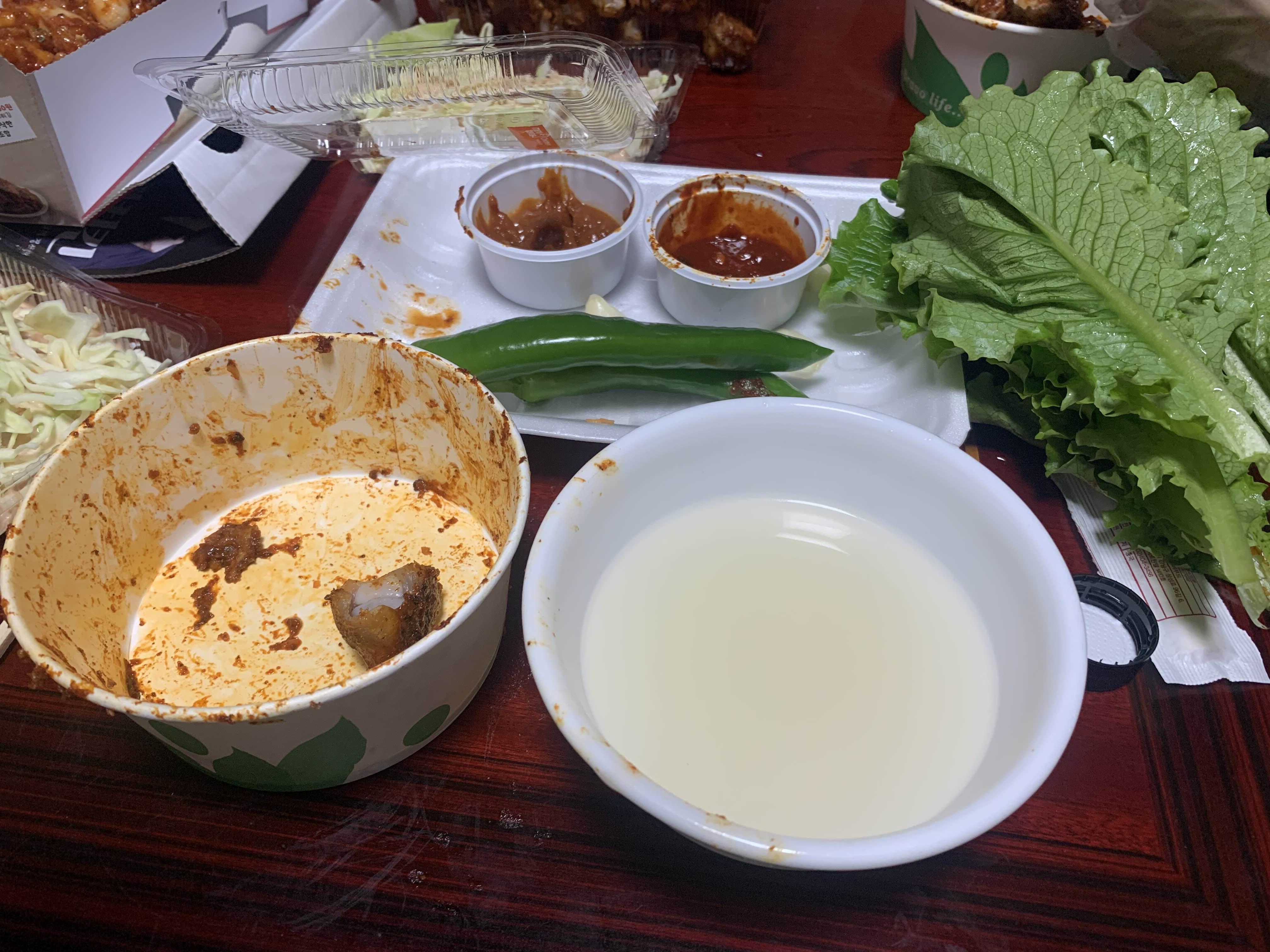 막걸리는 한잔과 족발!! 족발 보탕맛보다는 매콤한 맛은 막걸리와 정말 조합이 좋았음!!! 매콤맛과 비교하면 보통맛은.... 약간 밍밍한 맛처럼 느껴지는... 매콤함이 너무 강렬해서 그런지?ㅎㅎ