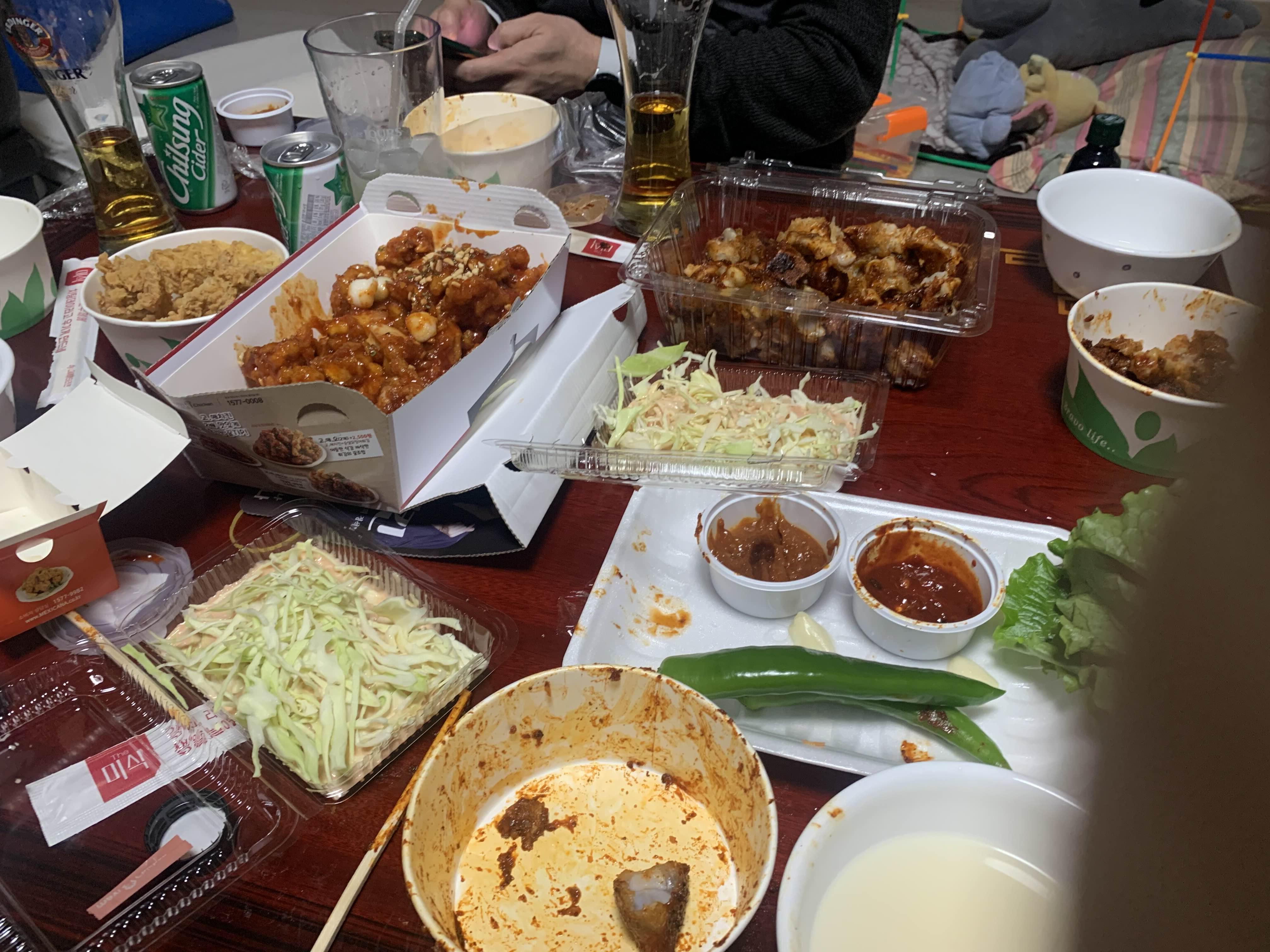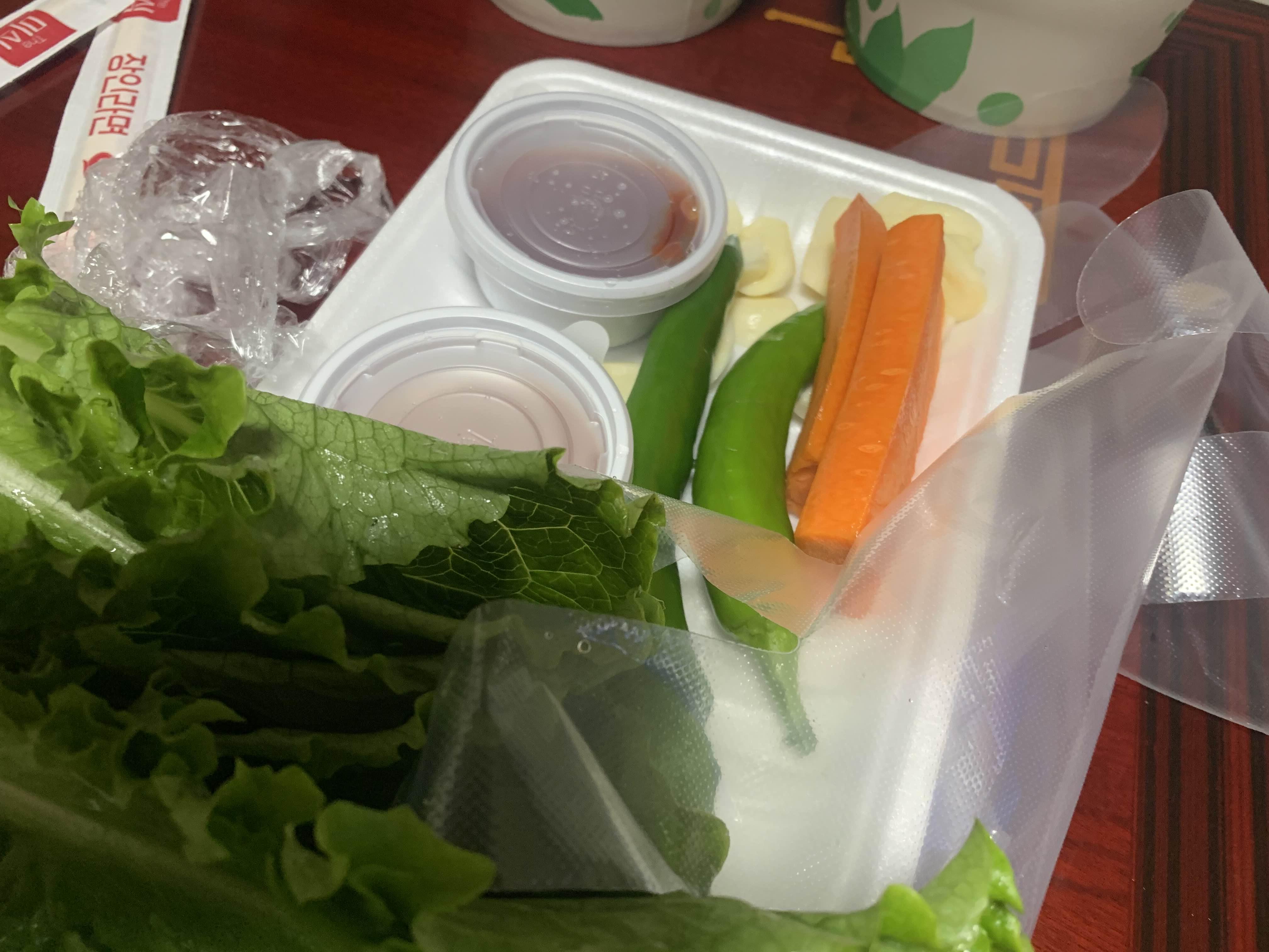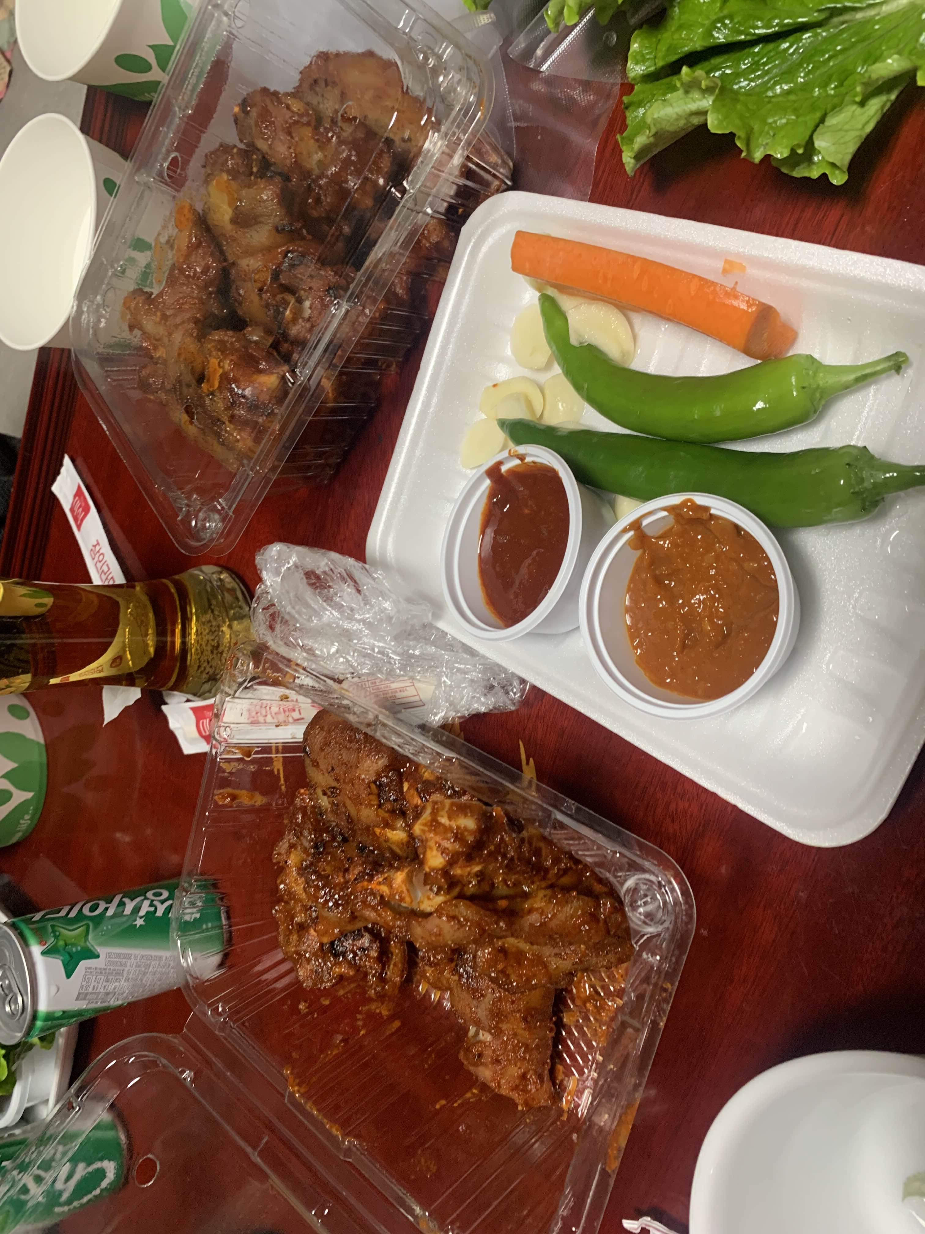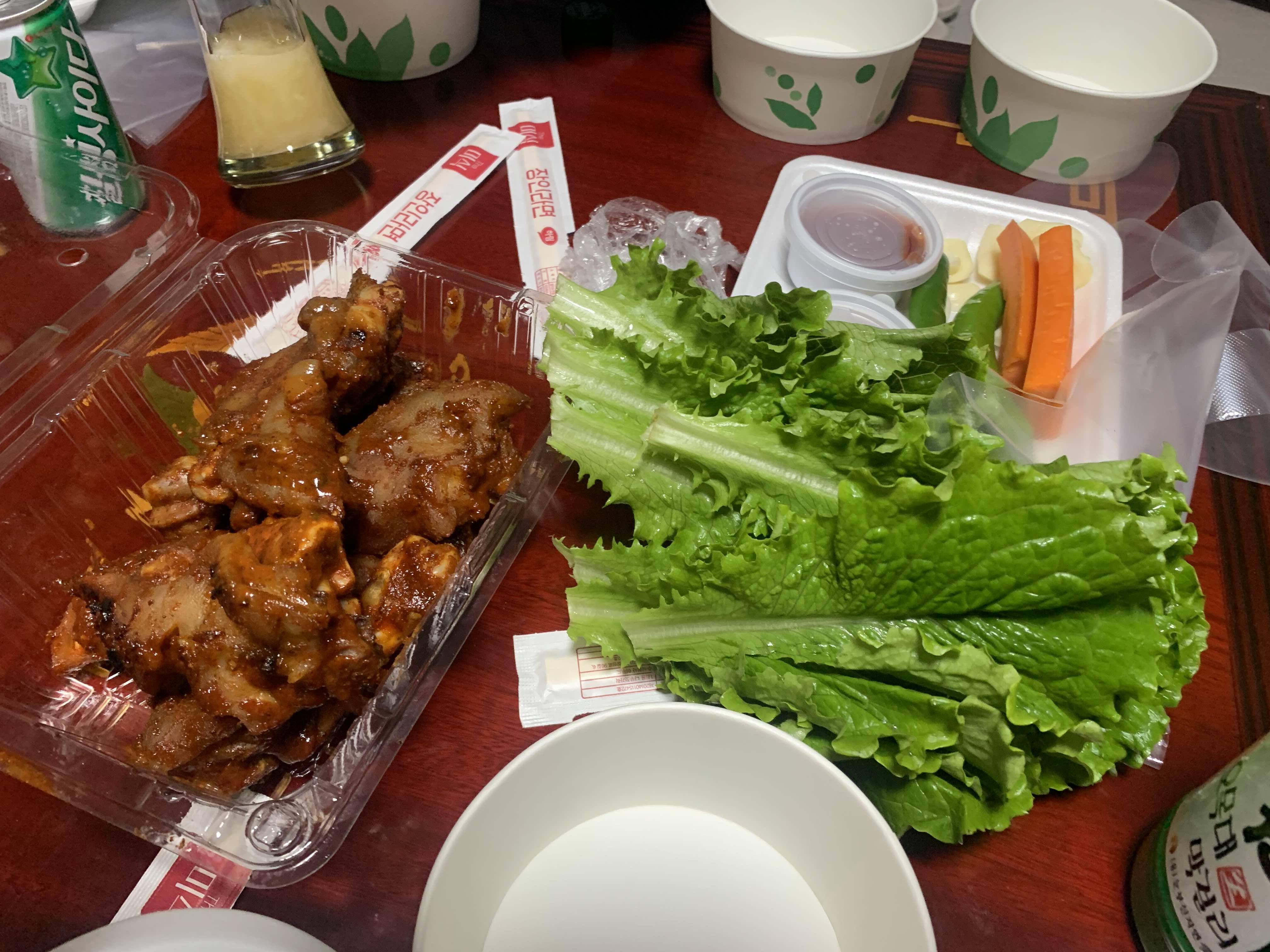 족발 1인분 포장은... 혼자 먹기에 양이 좀 많은 편입니다. 대략 족발만 먹어도 배부른 수준?입니다. 거기에 막걸리까지 한잔 걸치면 완벽한 한 끼 식사!! 가운데집 족발은 포장보다는 매장에서 먹는 게.... 기본 반찬 세팅이 좋아서 매장에서 먹기를 권해드리고 싶습니다. 오늘은 집에서 치킨과 함께 먹기 위해서... 포장ㅜㅜ