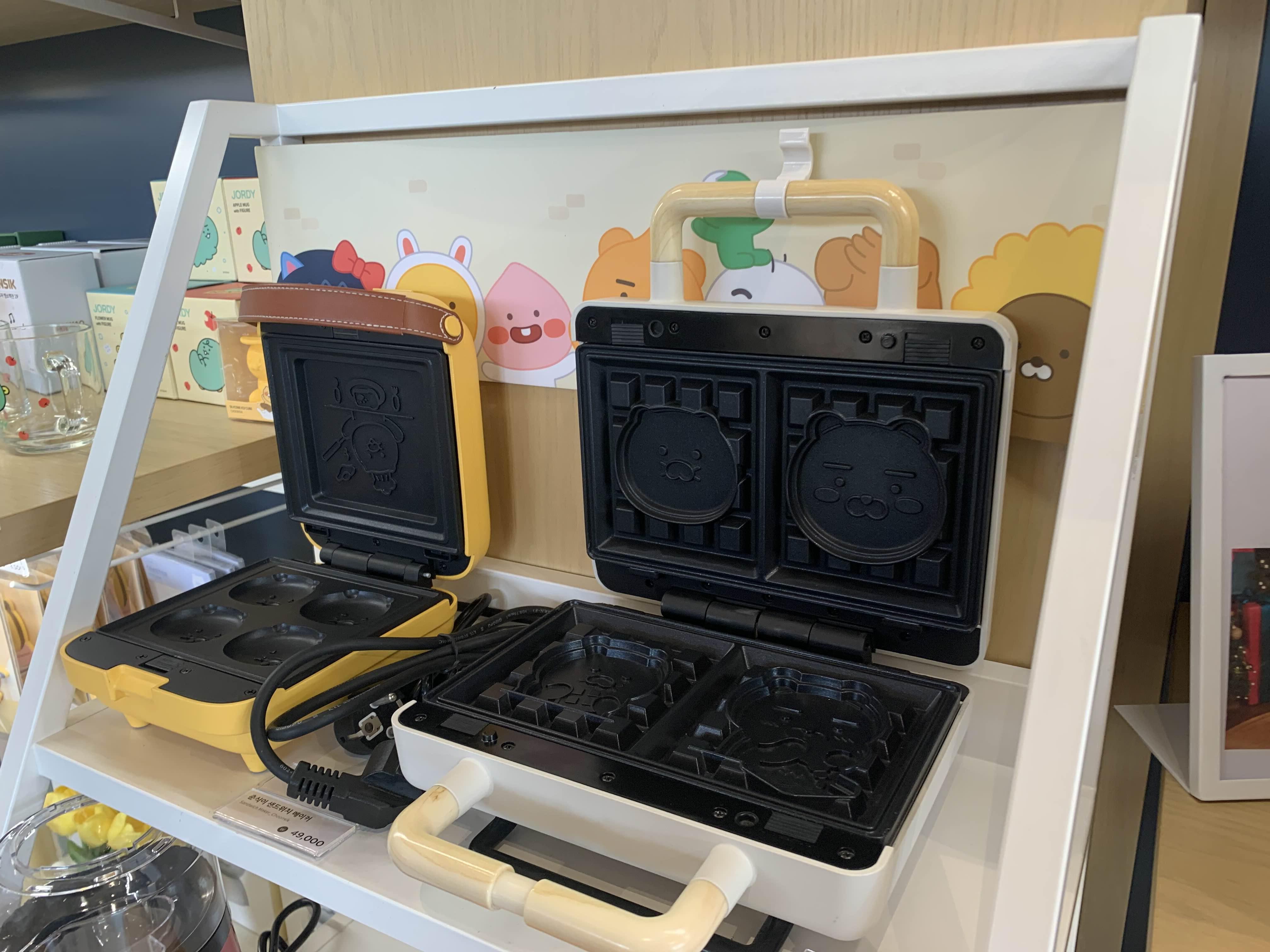 매장에는 다양한 카카오 프렌즈 친구들이 등장하는 상품이 준비되어 있더군요. 다양한 상품이 마련되었는데... 이 중 가장 눈에 들어오는 상품은... 와플기계!!ㅎㅎ 와플을 만들면 프렌츠 친구들이 만들어지는.... ㅎㅎ