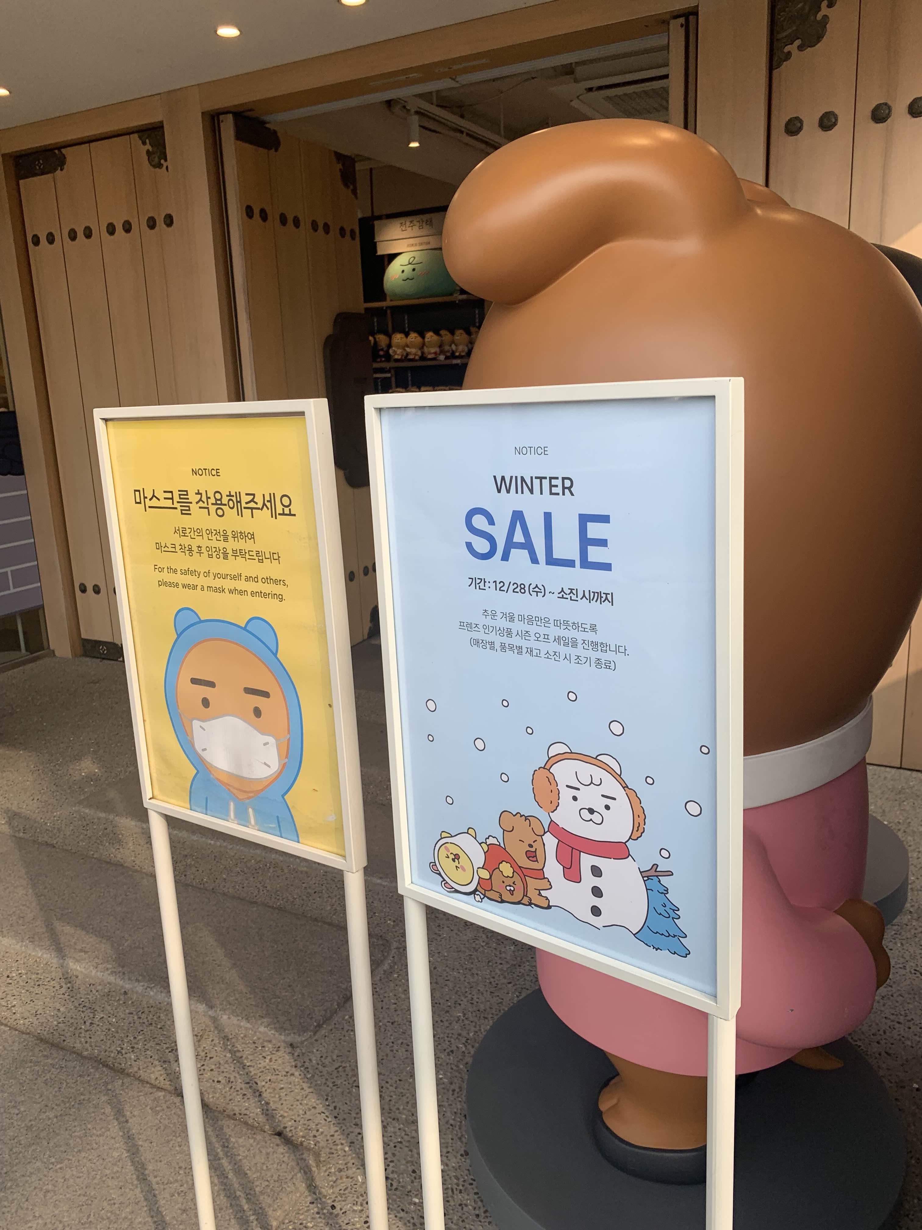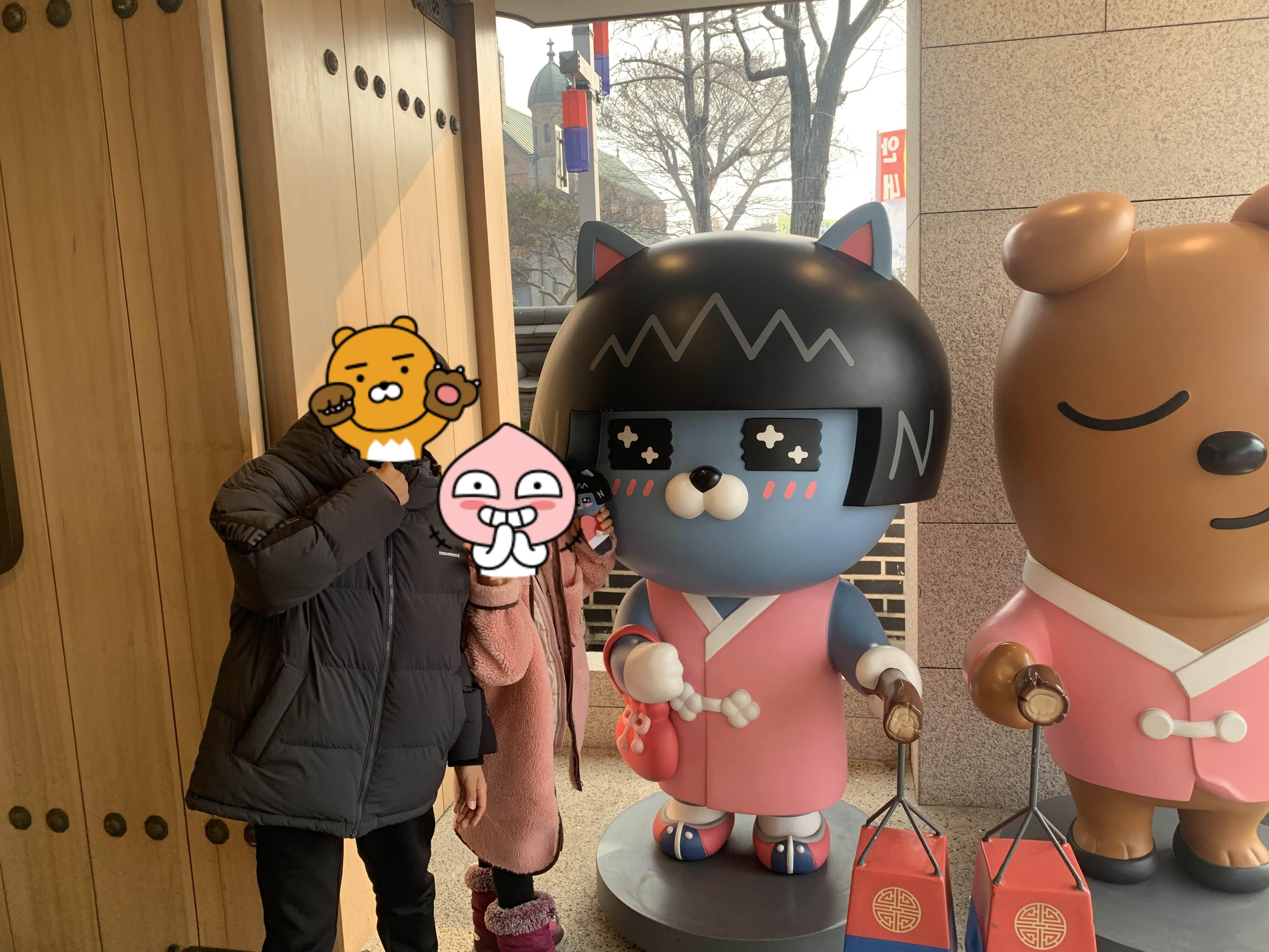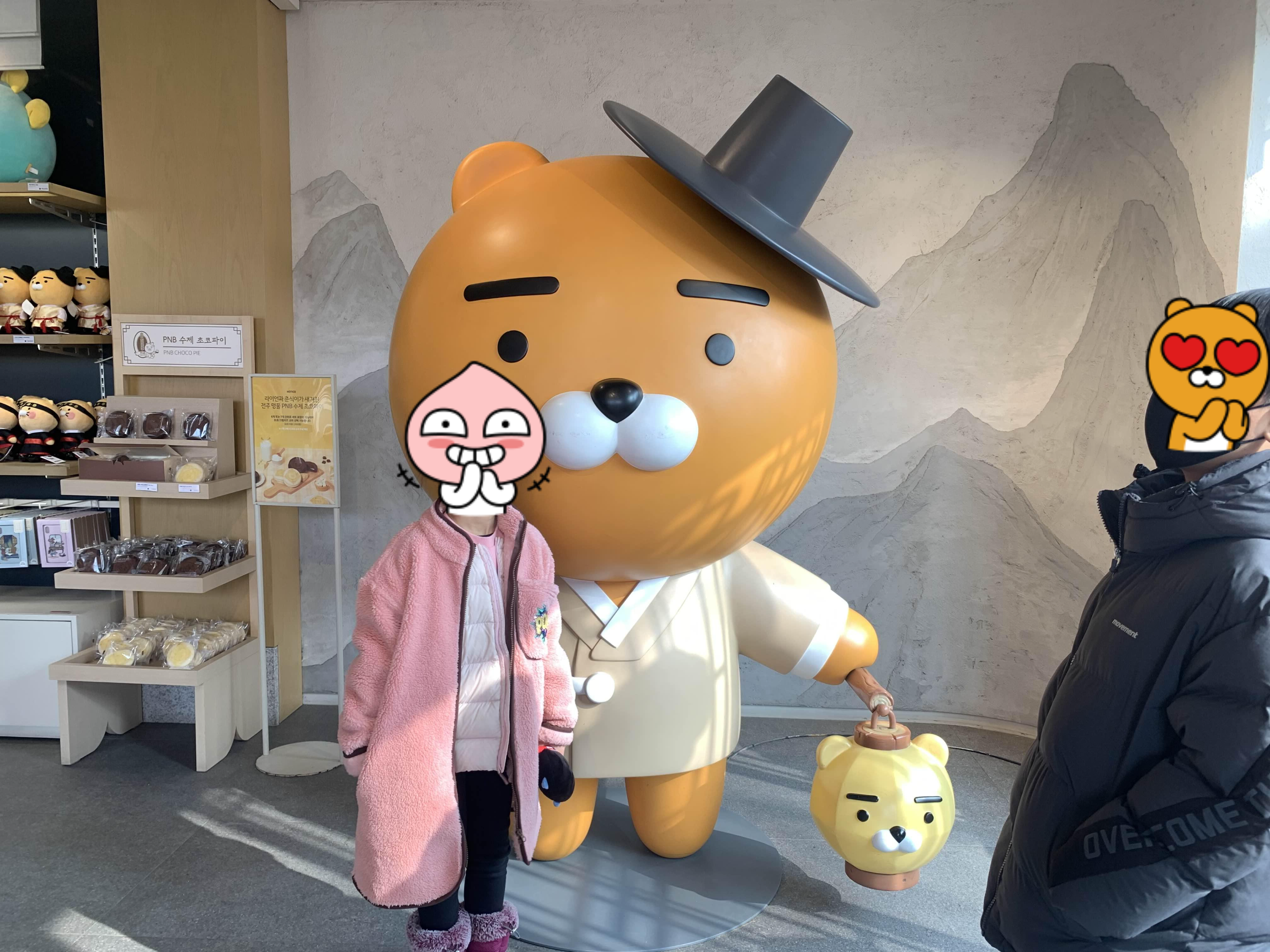 전주한옥마을 입구(전동성당)에 위치한 카카오 프렌즈 매장입니다. 매장 입구에는 라이온 대형 인형이 준비되어 있더군요.ㅎㅎ