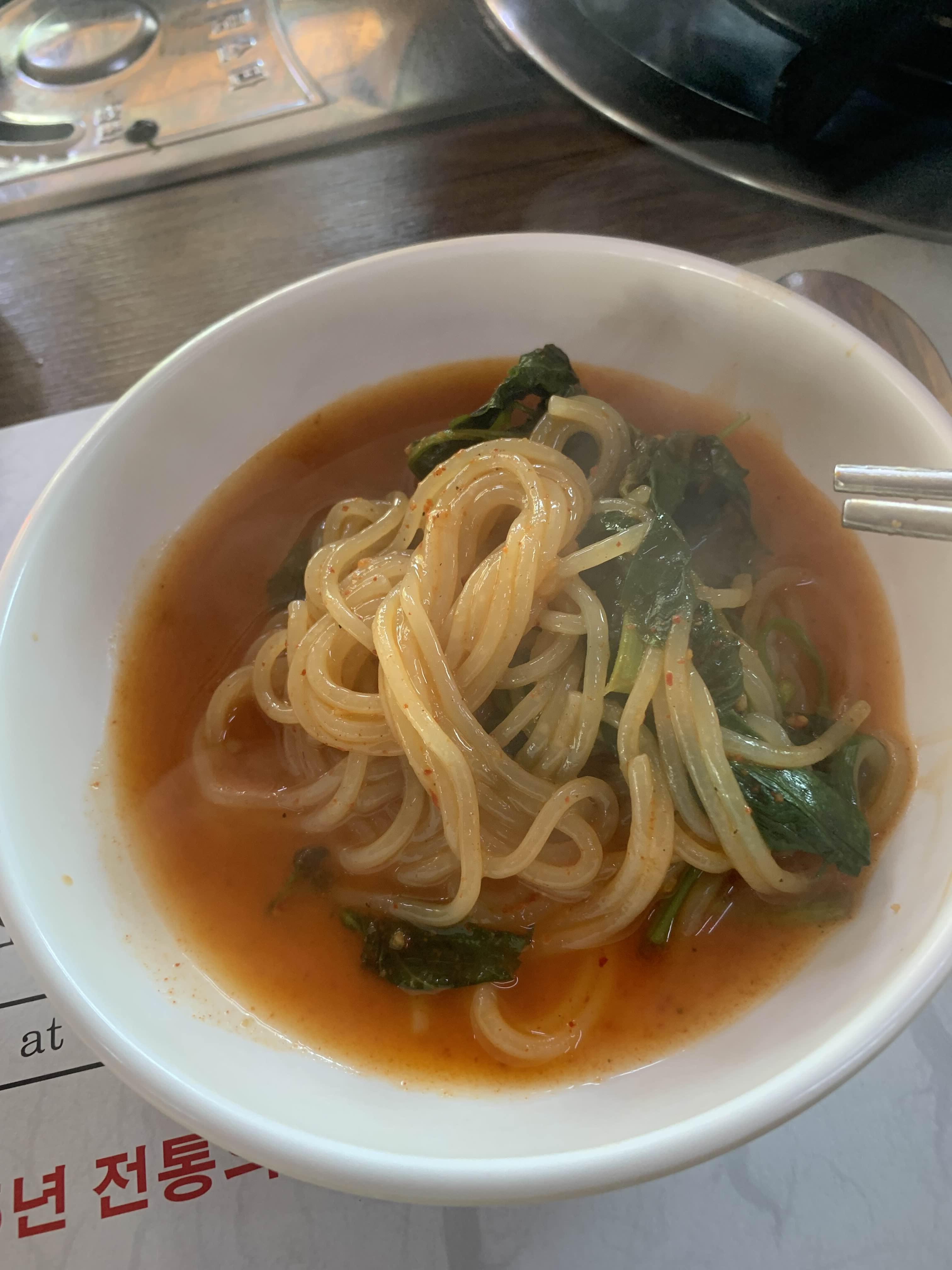 쫄면사리와 배추김치 조합이 상당히 좋았다. ㅎㅎ 그리고 채소!! 푸성귀 향이 건강한 맛!! 닭고기 국물이 건강하게 느껴져서... 먹으면 먹을수록 건강해지는 느낌이 들었다.ㅎㅎ