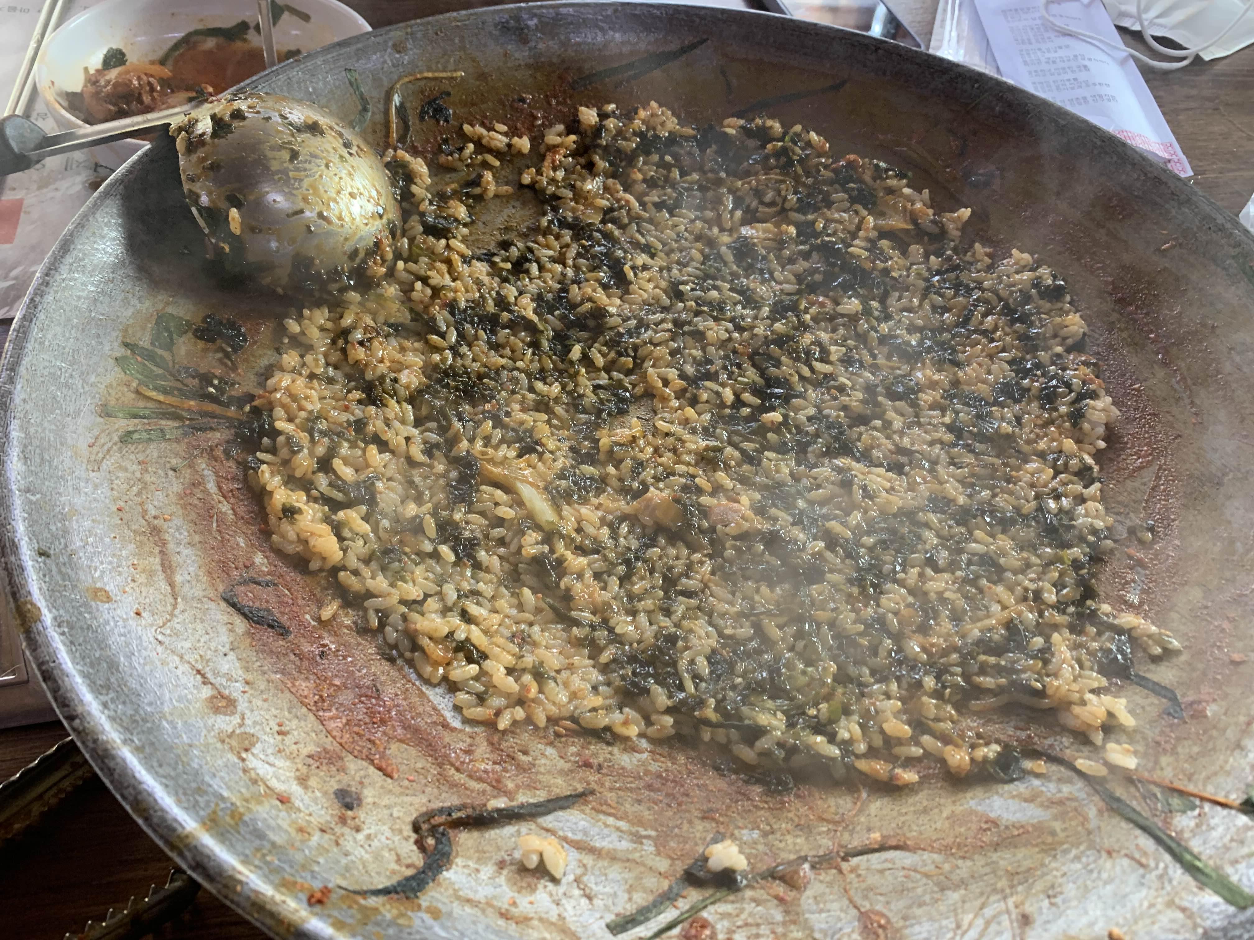 마지막은 볶음밥! 일반 닭갈비 마지막 코스는 볶음밥!! 물 닭갈비에서 마지막 코스 역시!! 볶음밥이었다. 먹으면서 지속적으로 우려낸 육수에 밥과 조미김을 넣어 썩어주면..... 끝! 이 조합을 맛이 없을 수 없는 조합이라.... 맛 표현을 패스해 주겠다.