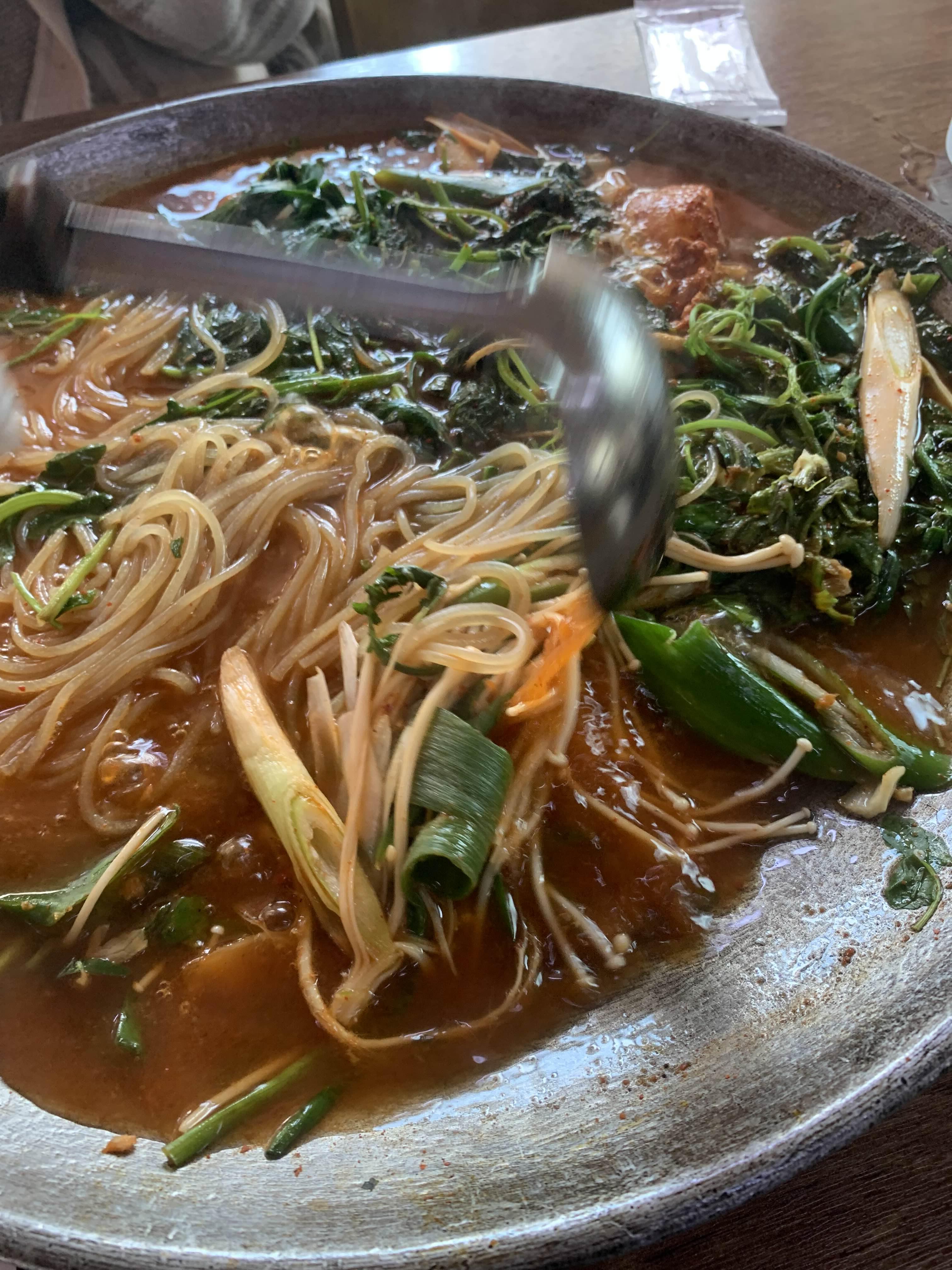그리고 사리를 하나 주문하라고 해서... 쫄면사리로 하나 주문해 보았다. 식당에는 두 테이블에서는 쫄면사리와 가락국수사리... 사장님은 당면사리를 추천! 나는 쫄면사리!ㅎㅎ