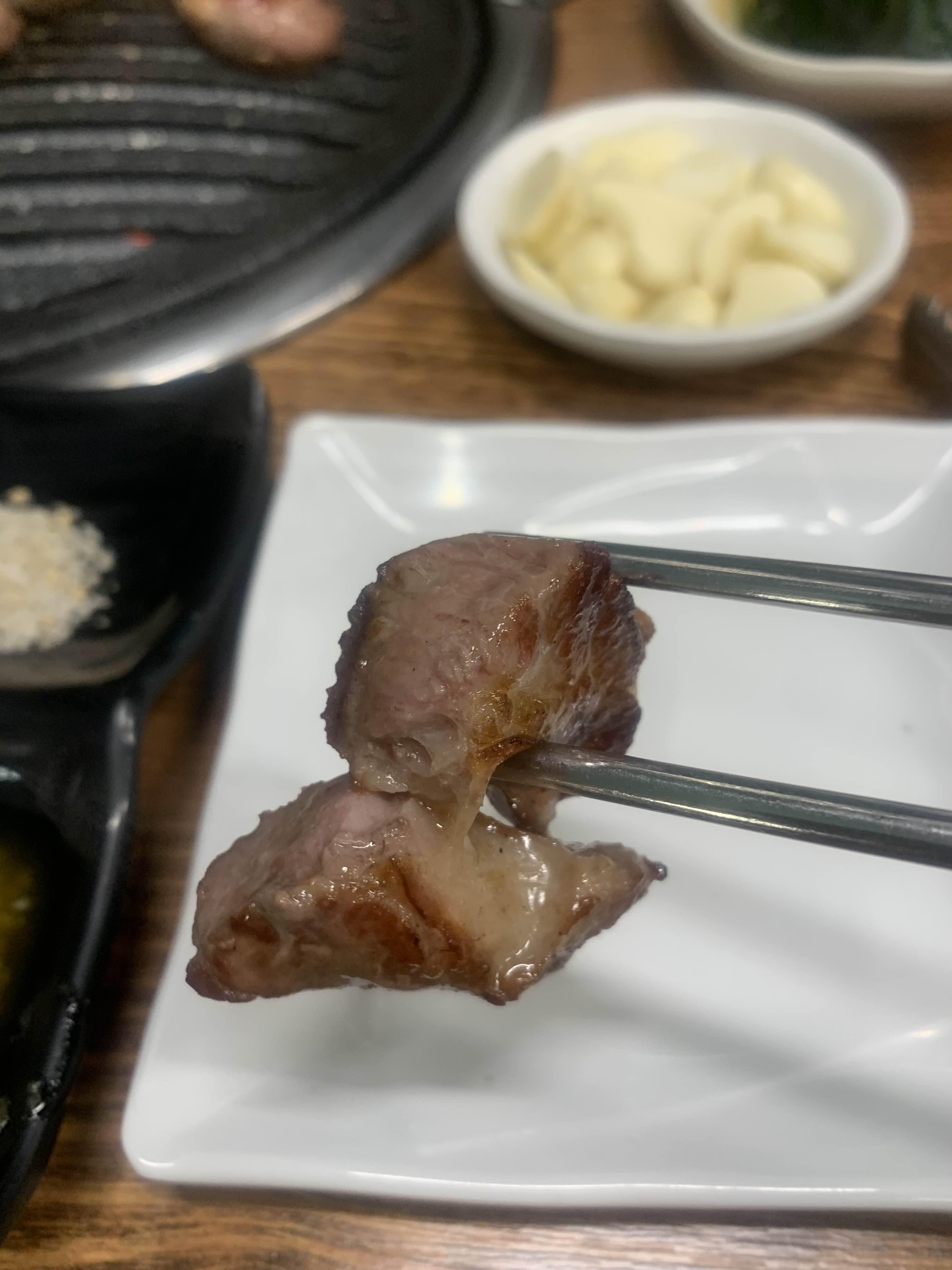 도깨비살이... 어느 부위인지는 모르겠으나.. 고기를 구워보니.. 상당히 쫄깃해 보였다. 꼭 갈빗살의 느낌이랄까!?ㅎㅎ