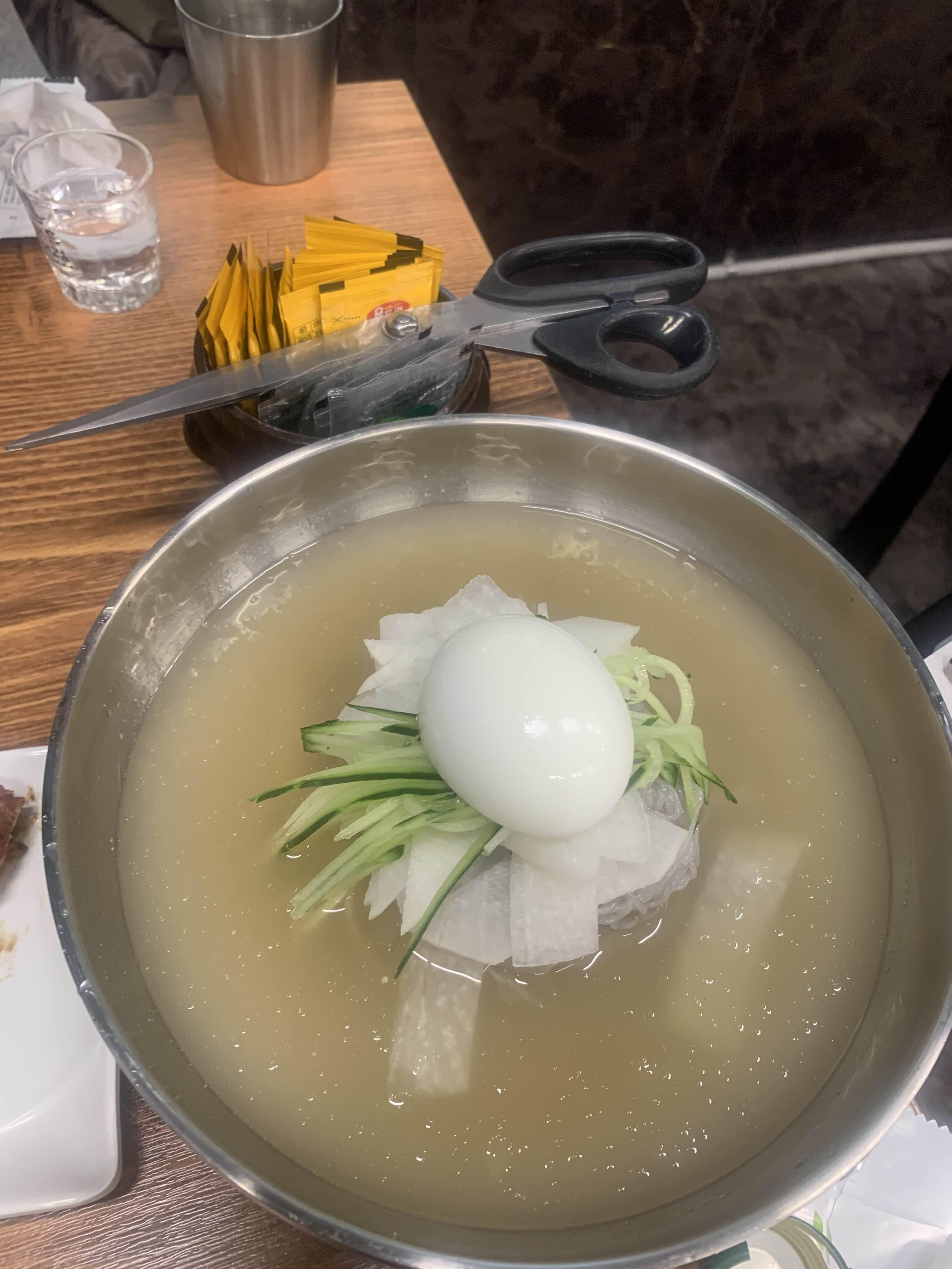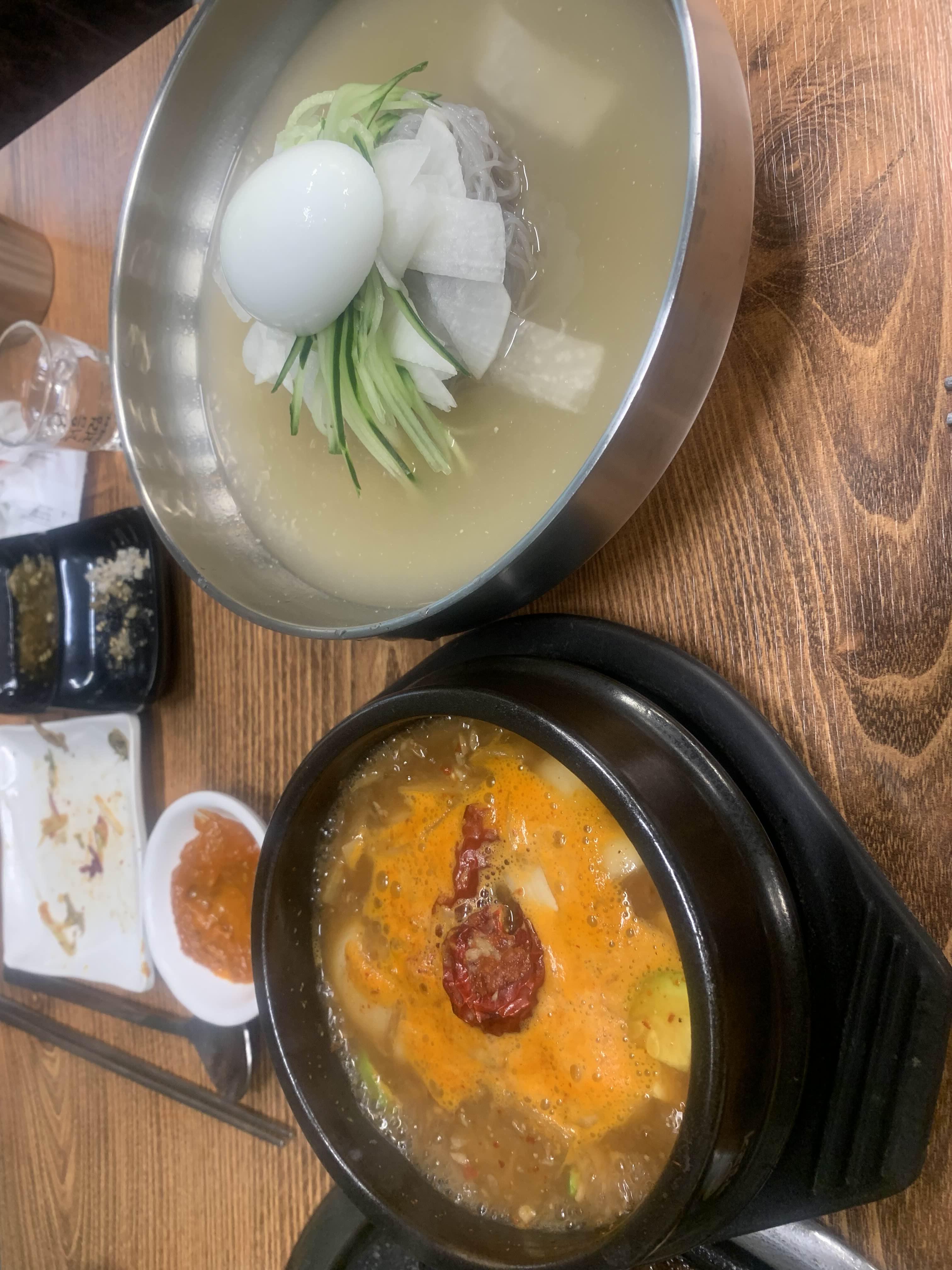 후식으로는 냉면과 된장찌개!! 냉면은 무난했으나.... 된장찌개! 맛이 상당히 괜찮았다. 된장찌개에 공깃밥은 포함되지 않아서... 공깃밥 추가!ㅎㅎ