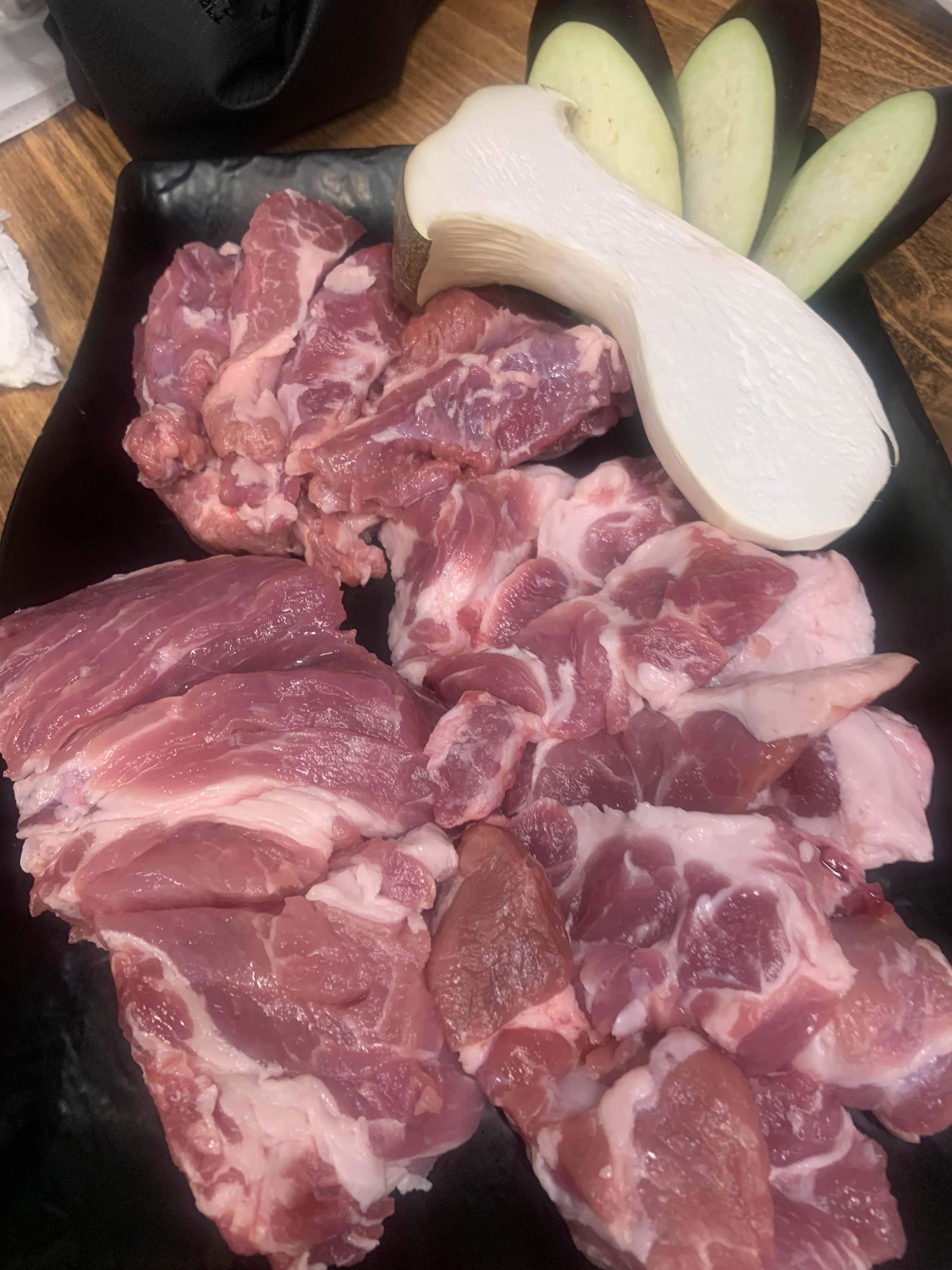고기는 도깨비살, 갈매길살, 목살 각각 1인분씩 주문했다. 돼지고기는 상당히 싱싱해 보였다. 1인분 고기 중량은 150g.... 1인분 고기 중량은... 기본 200g인데.. 이제 200g 1인분 고기는 보기 힘들고... 식당에서 180g이 보이고... 여기는 150g 1인분^^ 너무 양이 적다.ㅠㅠ