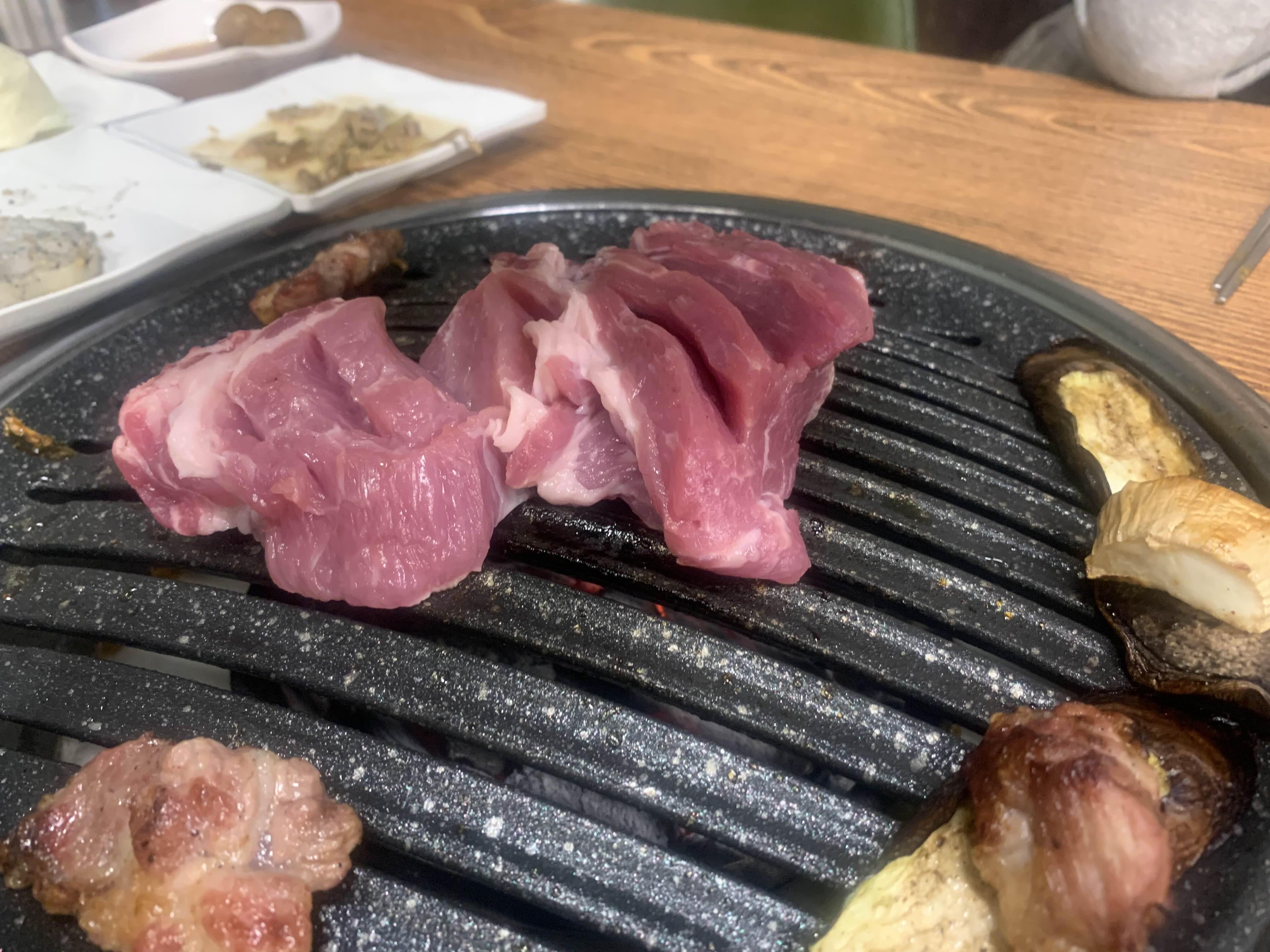 고기를 주문해 보았다. 고기 2인분 주문했는데.... 3인분부터 주문이 가능하다고 한다.ㅎㅎㅎ 2인이 방문하여.. 2인분 주문하고, 추가로 1인분 주문하려고 했는데... 3인분부터 주문이 가능하다고 하니!! 기분이 썩!!ㅎㅎ 산뜻하지는 않았다^^