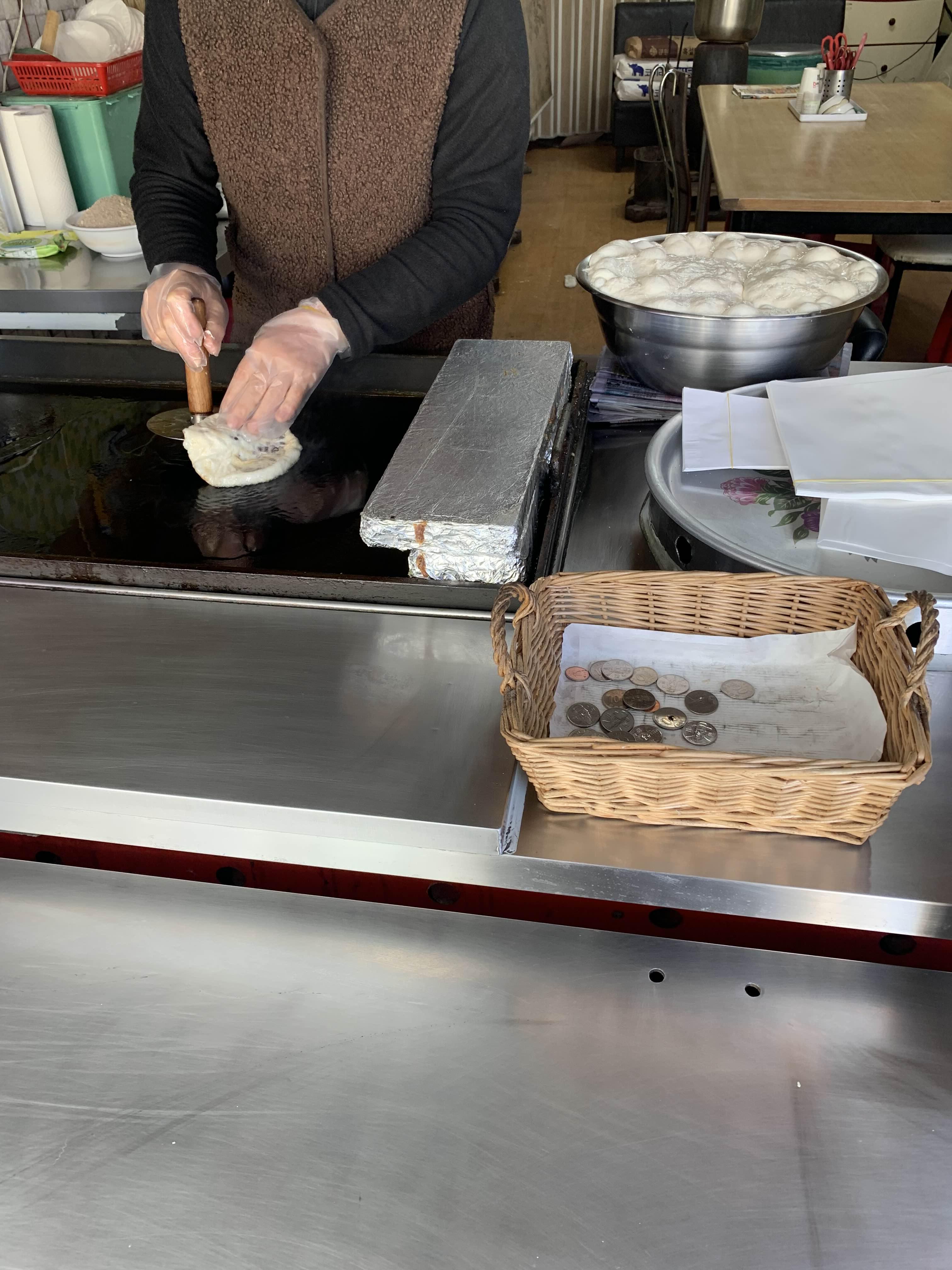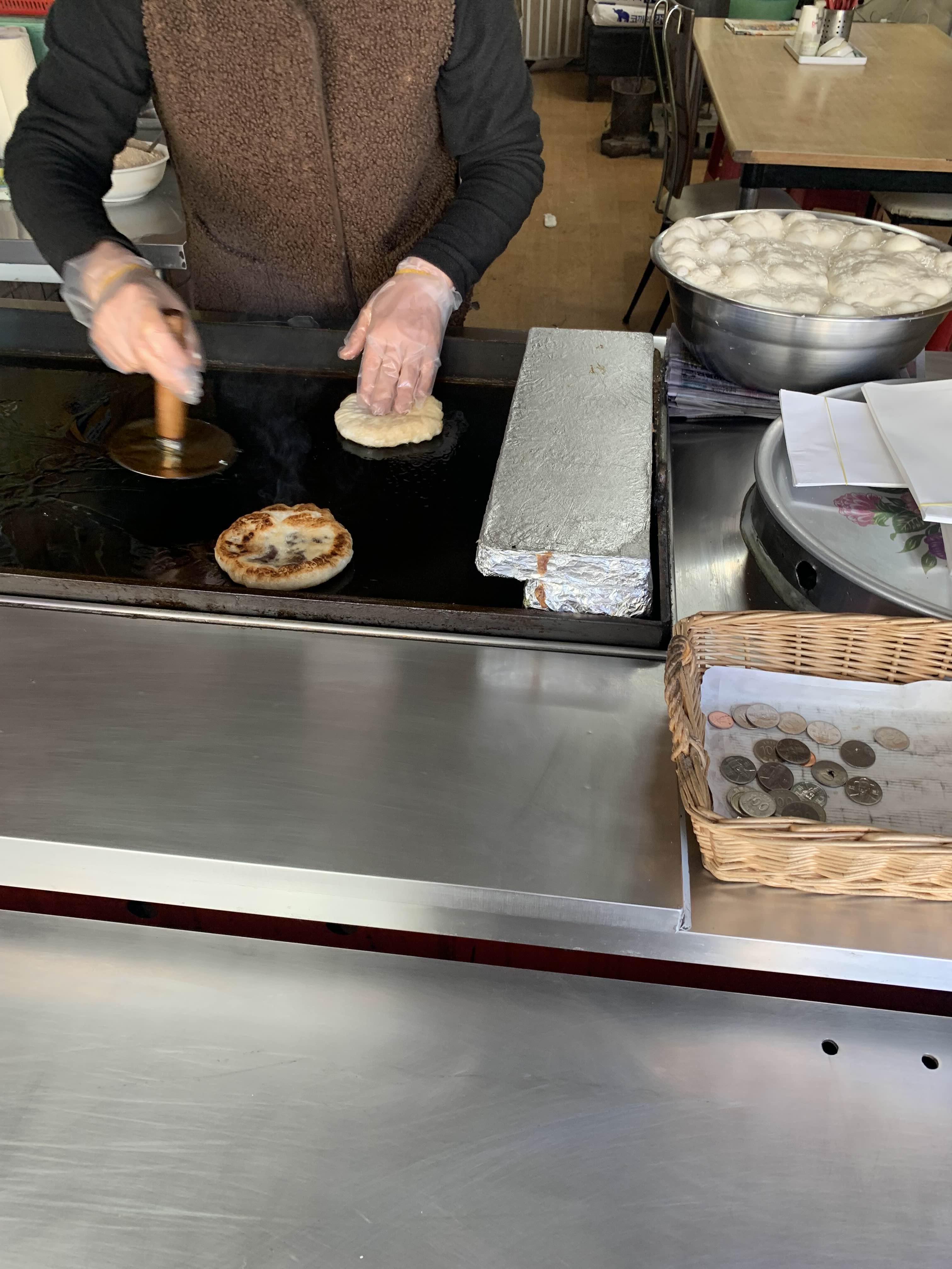 호떡 주문은 하나하나 설탕과 팥을 주문했다. 주문과 동시에 만들어 주시는 호떡! 이른 아침이라... 다른 손님들은 안보였다.ㅎㅎ 넓은 대야에 들어있는 호떡 반죽을 이용하여.. 설탕과 팥을 이용하여... 만들어 주신다. 호떡은..... 호떡철판의 불 조절이 중요한데... 호떡이 타버렸다.ㅋㅋㅋ 반절이 타버린 호떡을 그냥 주실까?라는 두려움이 있었으나.... 다시 만들어 주셨다. 다행이다. ㅠㅠ