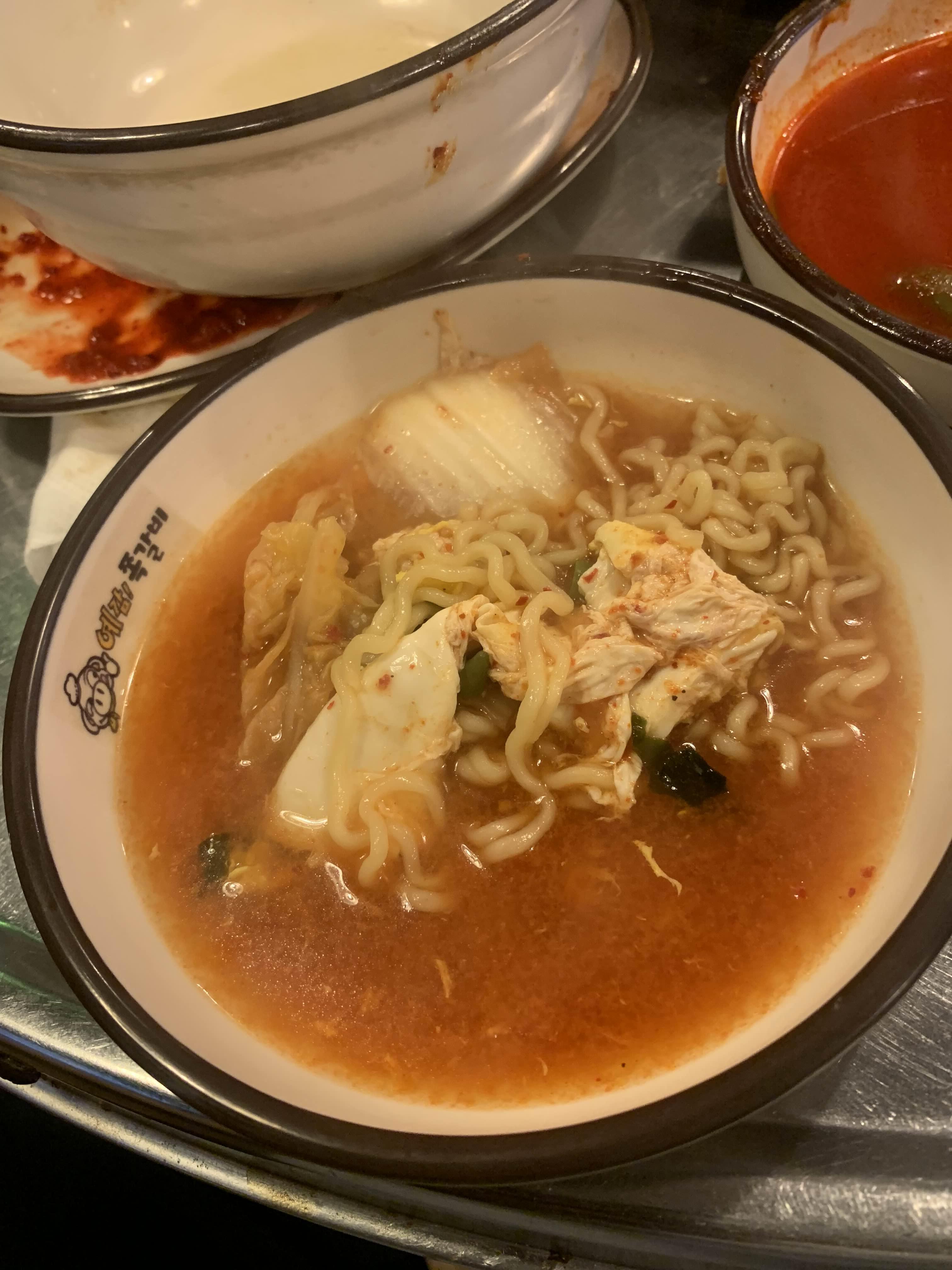 그리고... 후식 라면! ㅎㅎ 3명이 방문하여 너무 많은 양을 주문하는 거 같기도 하지만!!! 많이 먹는 사람들에게는.... 양이 정해지지 않는다... 인간의 한계가 정해져 있지 않듯이;;;ㅡㅡ; 라면은 왜 이리 맛있지?!ㅎㅎㅎ