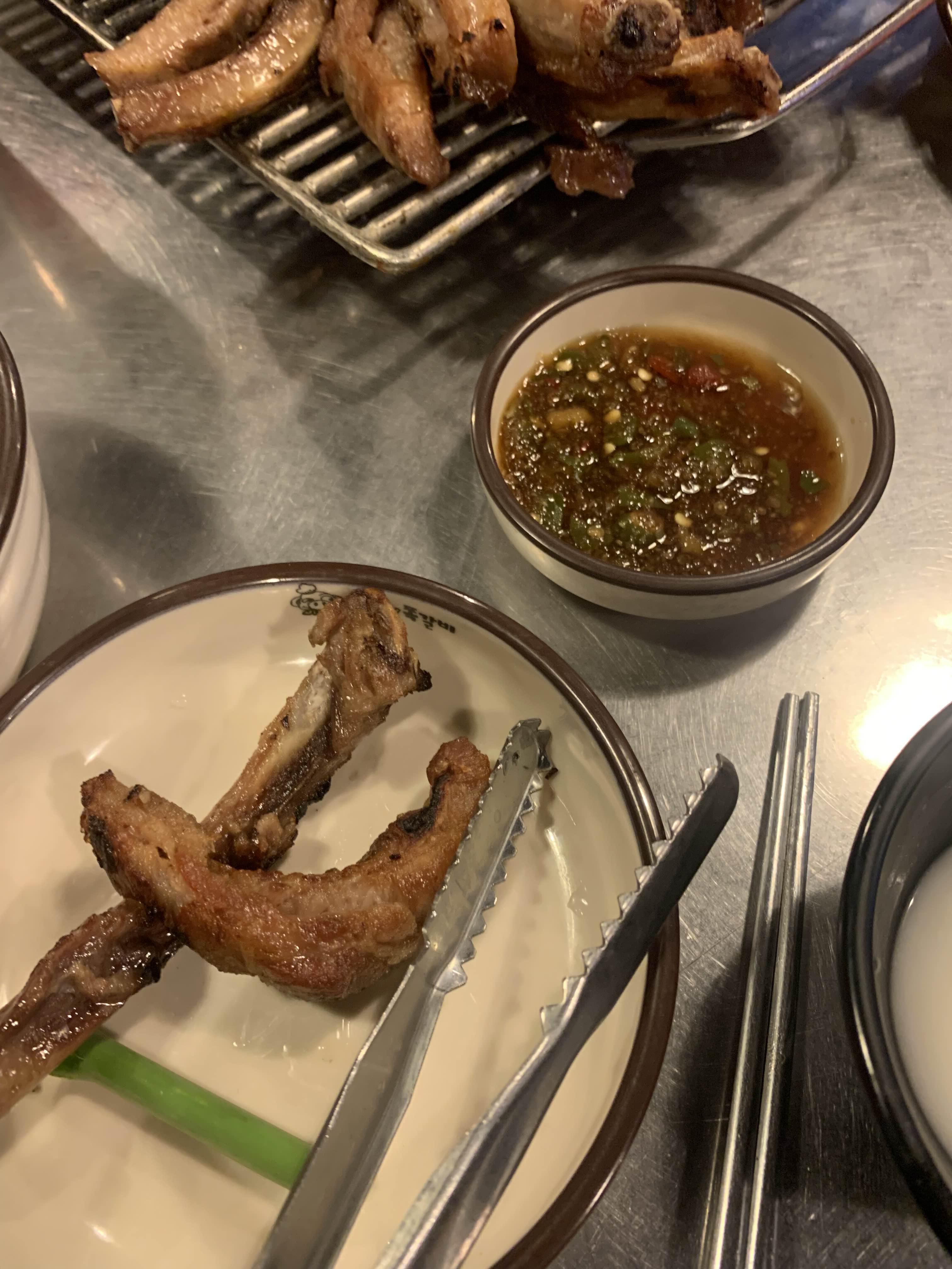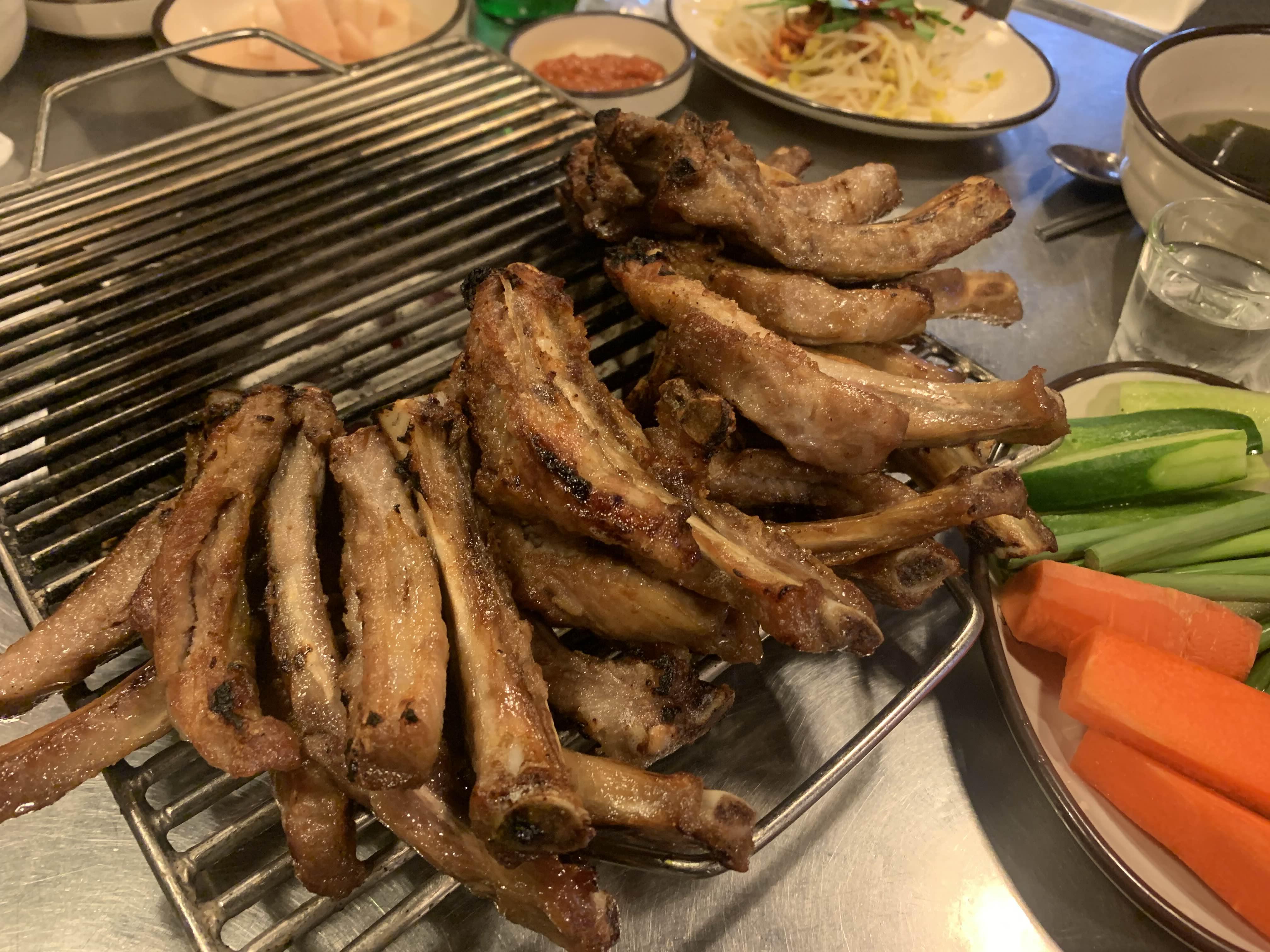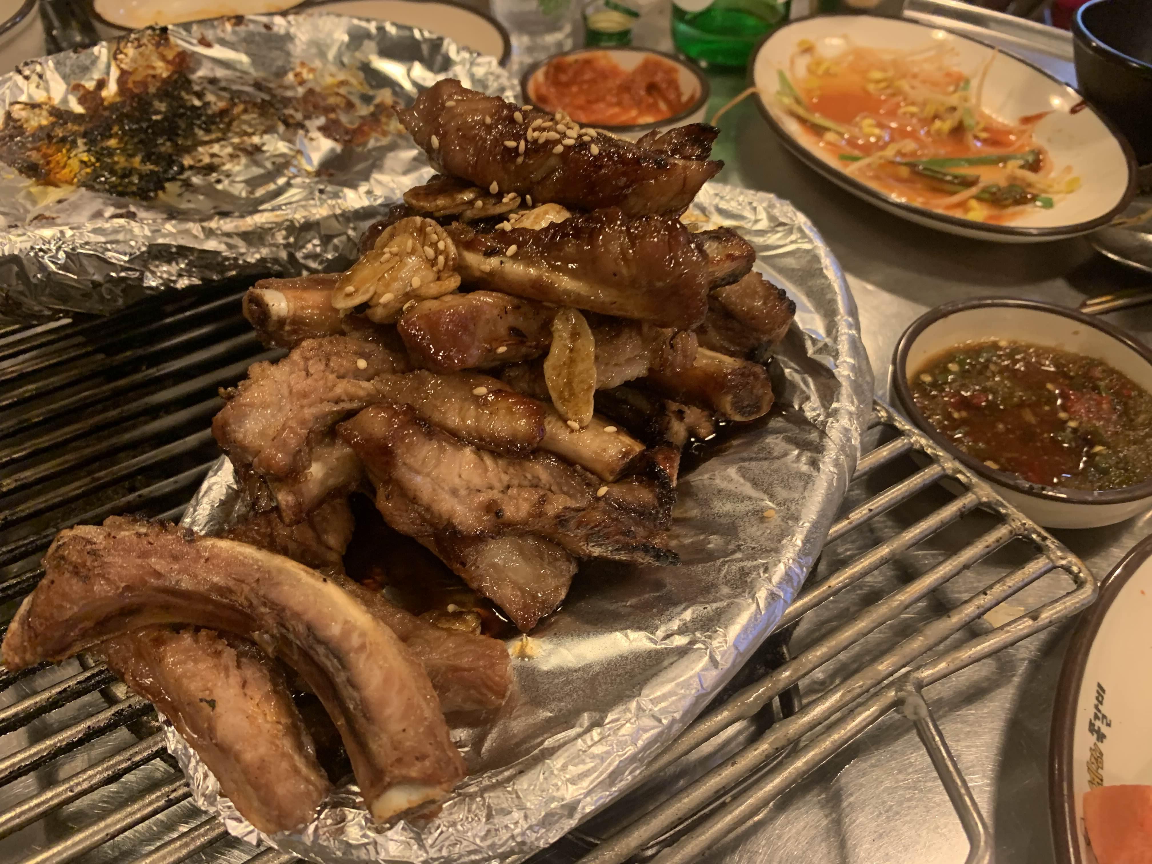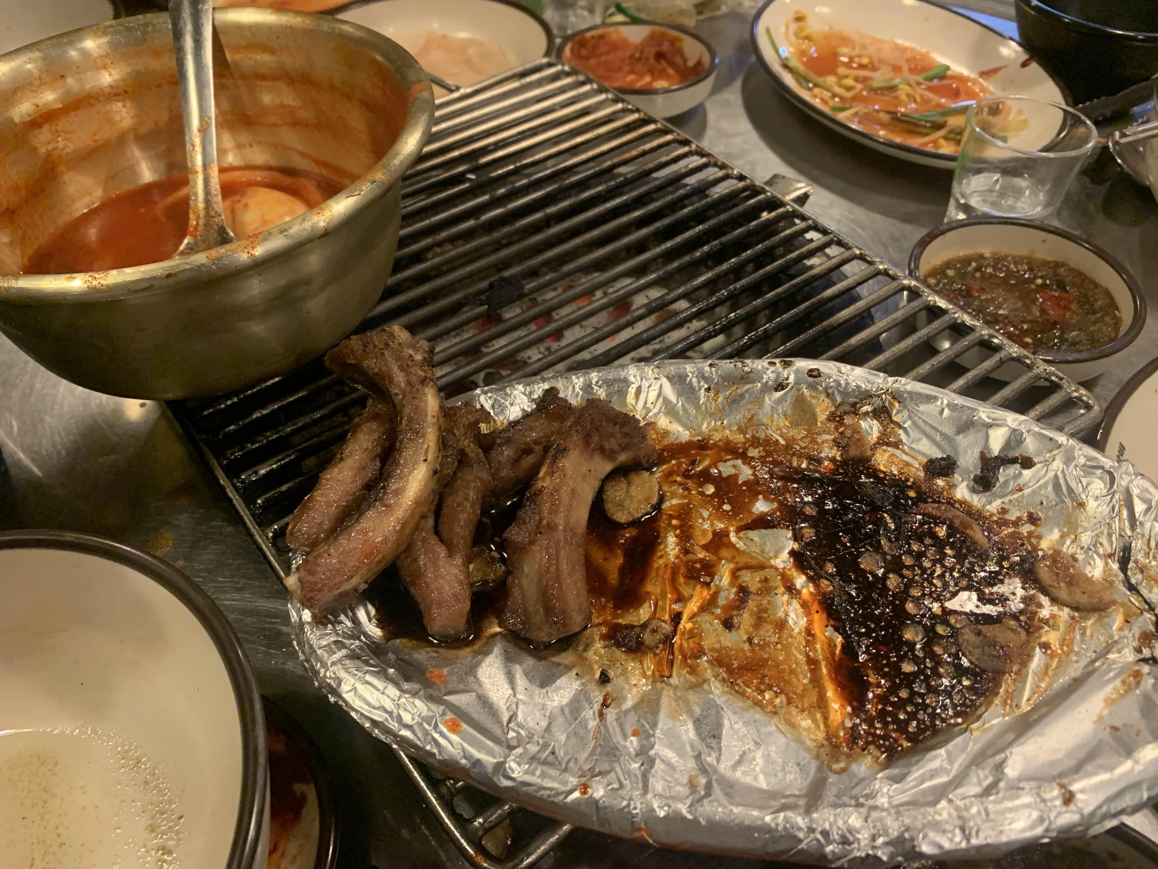 다른 테이블에서.... 마늘 쪽갈비를 주문하는 모습이 보였다... 그래서 마늘도 추가해 보았다. 마늘 쪽갈비는 다소... 맛이 떨어졌다. 쪽갈비는 기본 쪽갈비와 매콤이 가장 맛나고, 서로 궁합이 좋다.