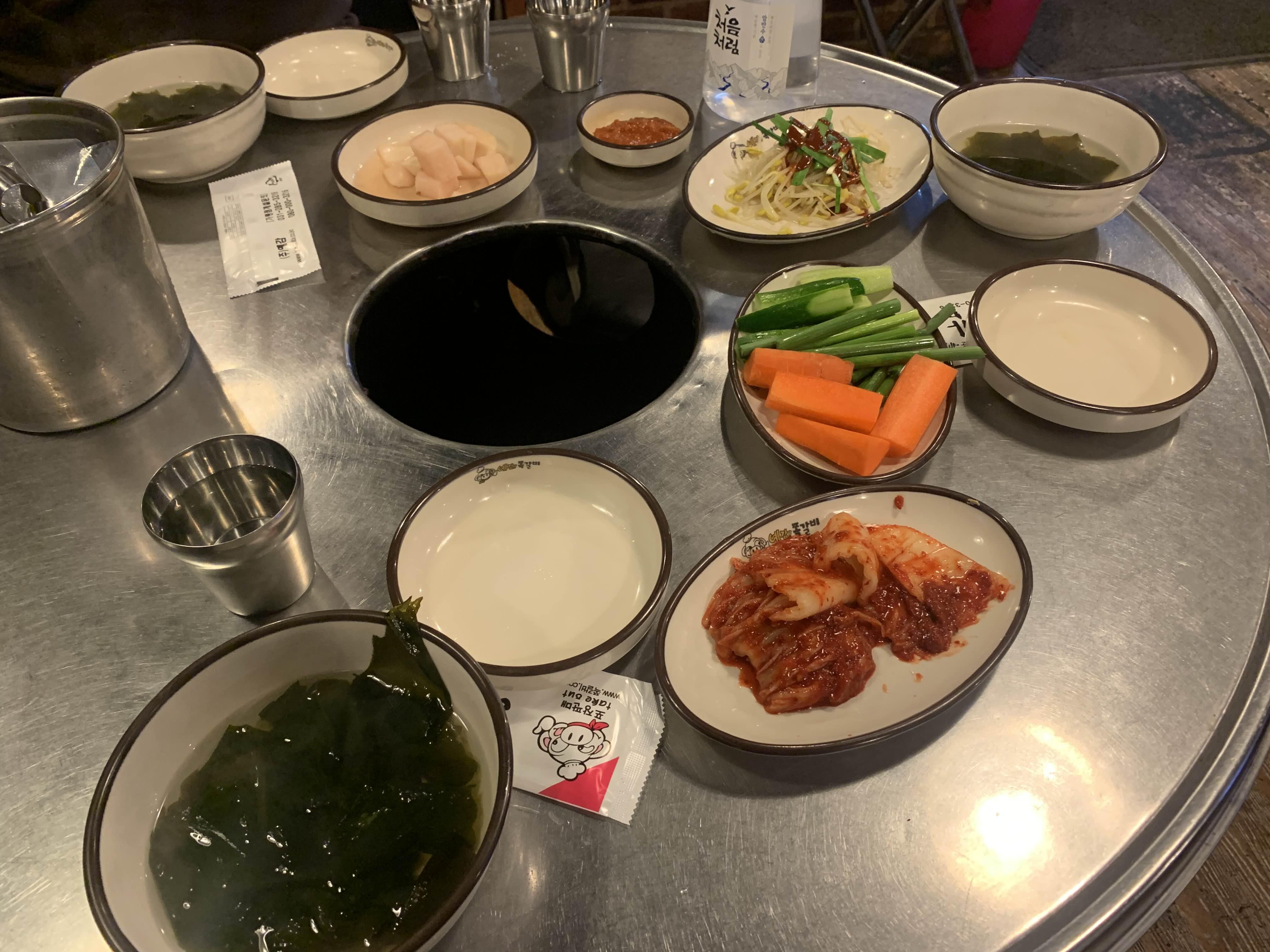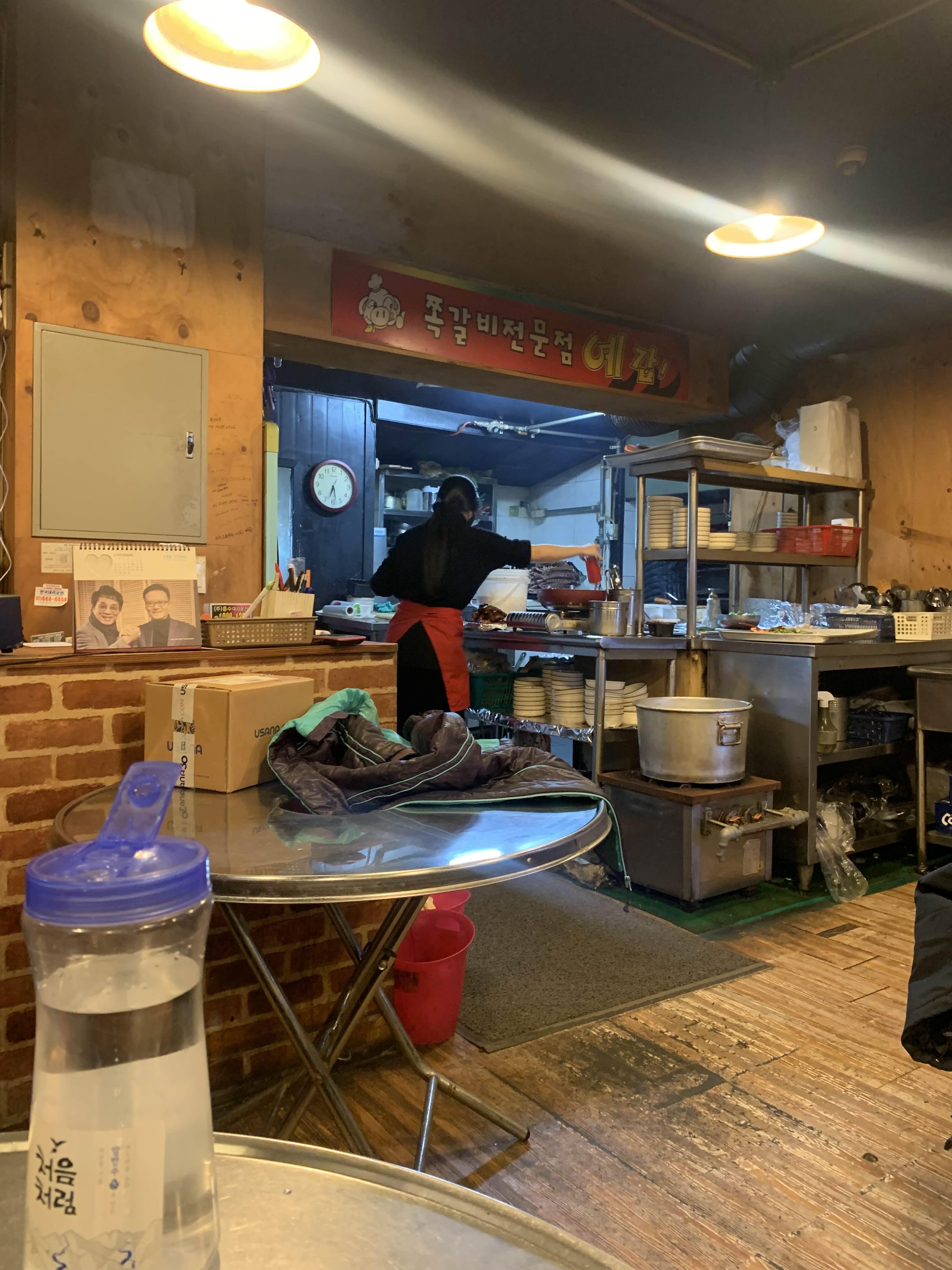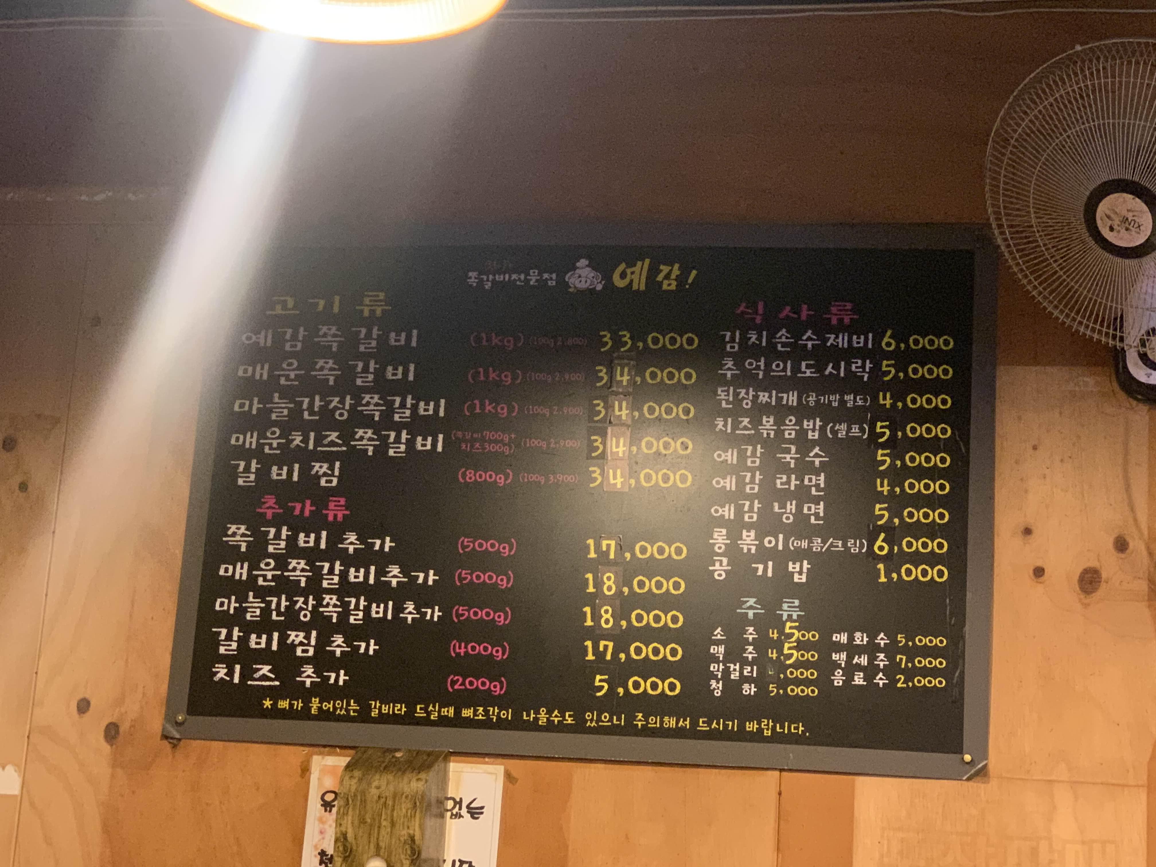 퇴근시간이 얼마 지나지 않았으나... 식당 내부에는 손님들이 가득했다. 메뉴판과 다른 테이블 메뉴를 스캔한다.ㅋㅋㅋ 스캔이 필요 없이... 메뉴판의 맨 위 메뉴 기본 쪽갈비 1kg와 매운 쪽갈비 500g을 주문했다. 쪽갈비 1kg를 2명 정도 먹을 수 있는 양이라고 한다. 하지만!!! 사람의 양은... 정말 가늠하기 어려운.... 양이라!ㅋㅋ