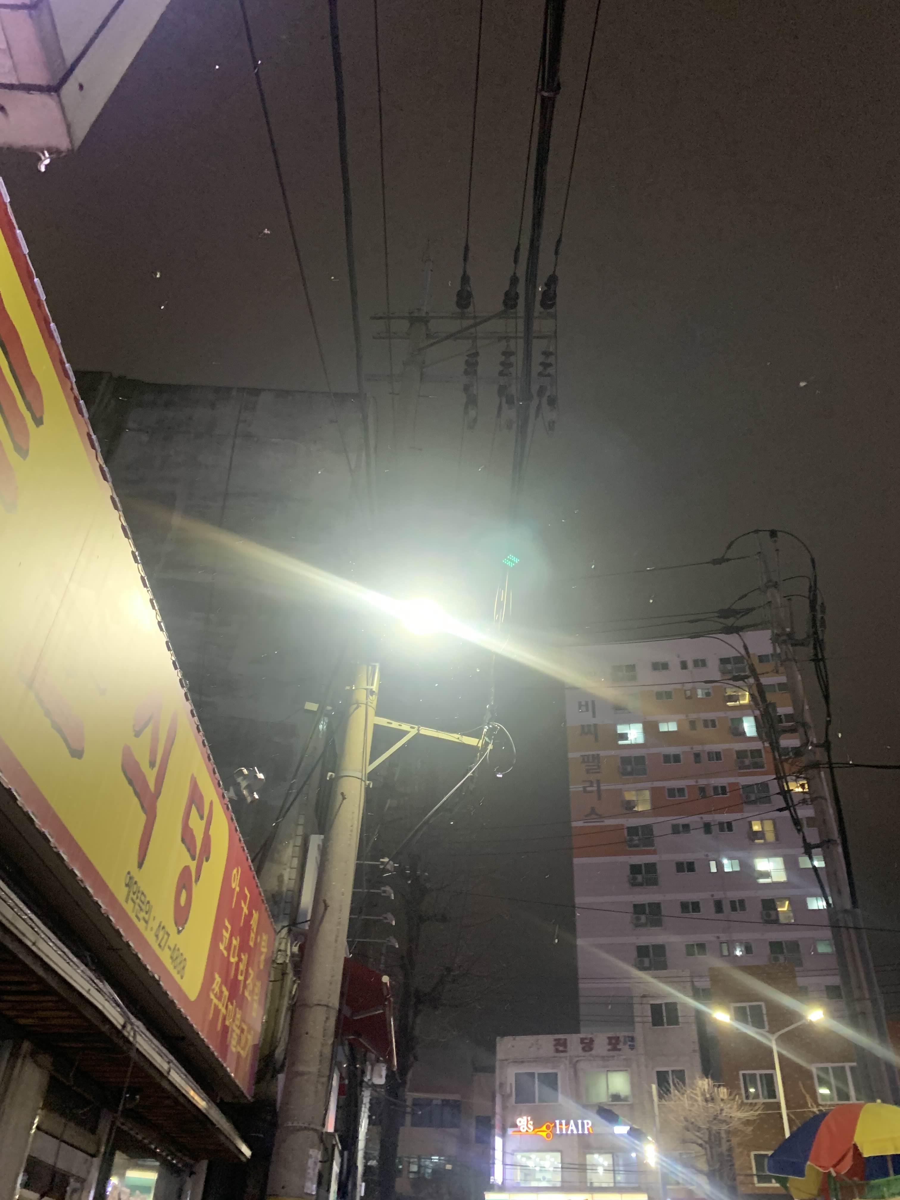 식사를 마치고 나오는 길.... 하늘에서 눈이 내린다. 내일 제설작업인가?