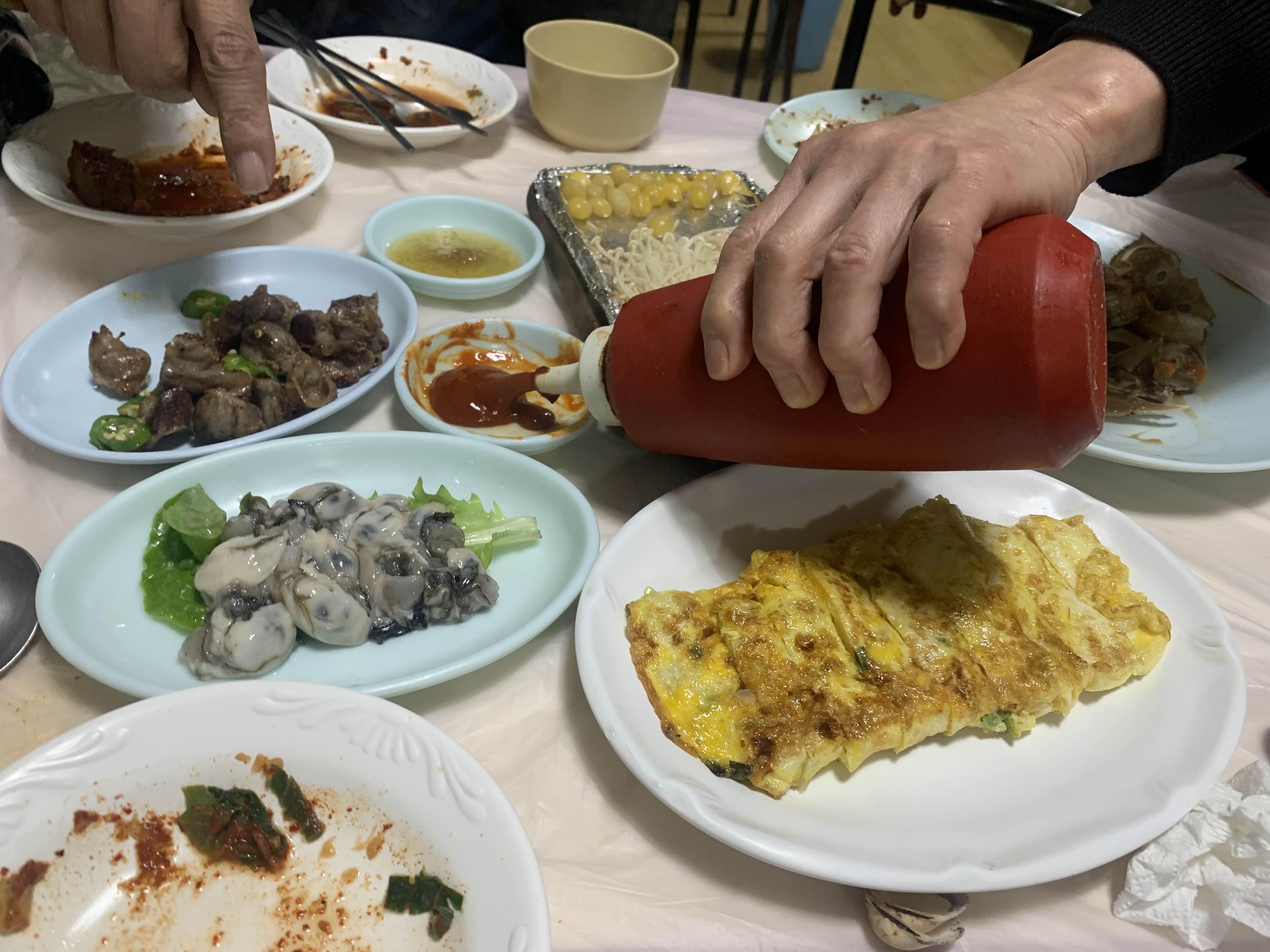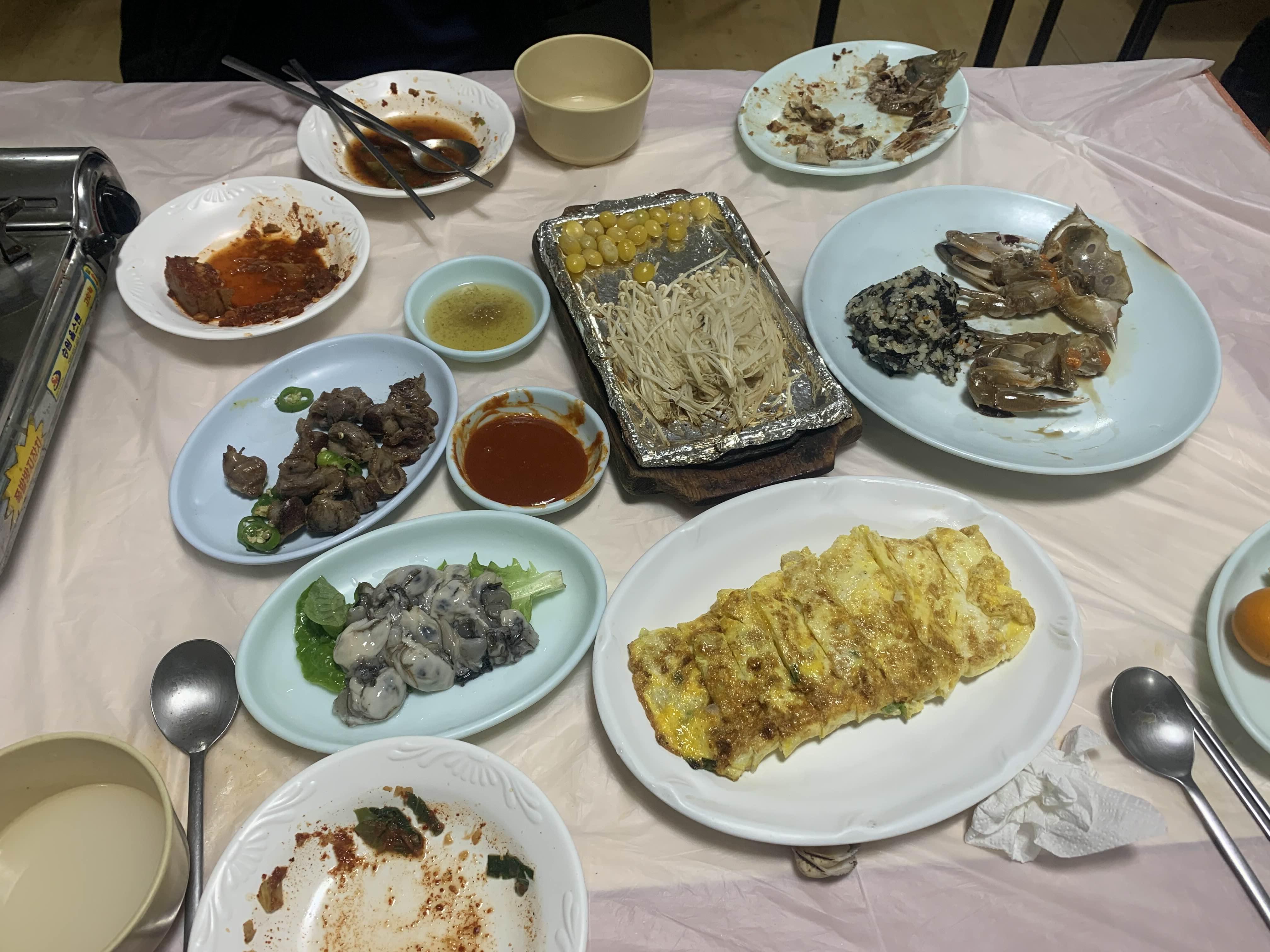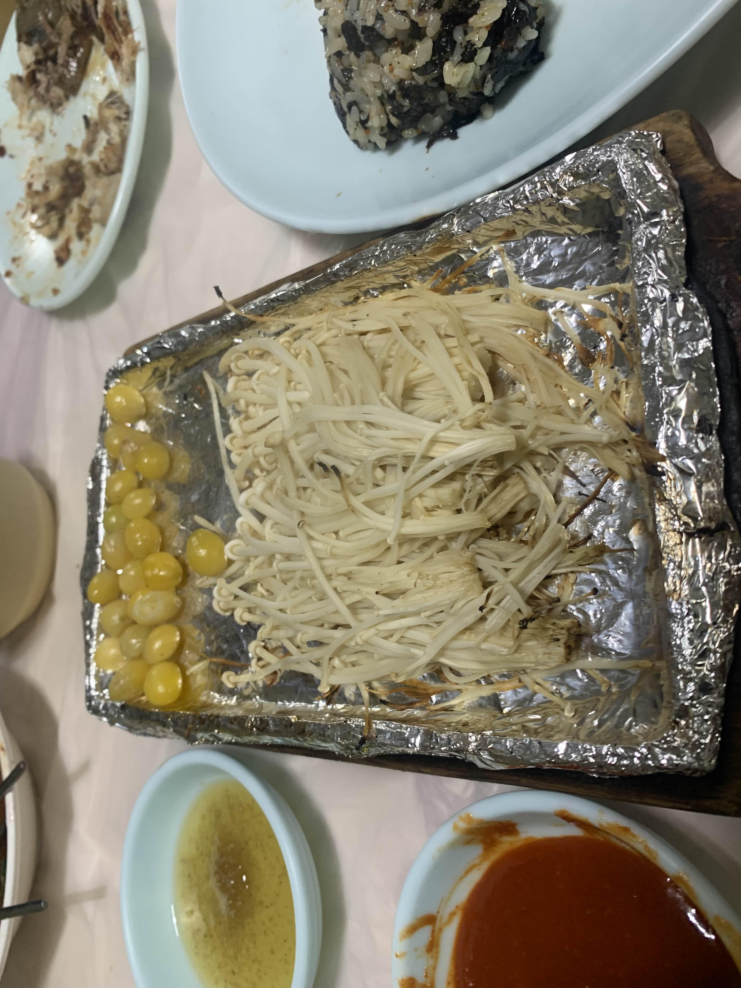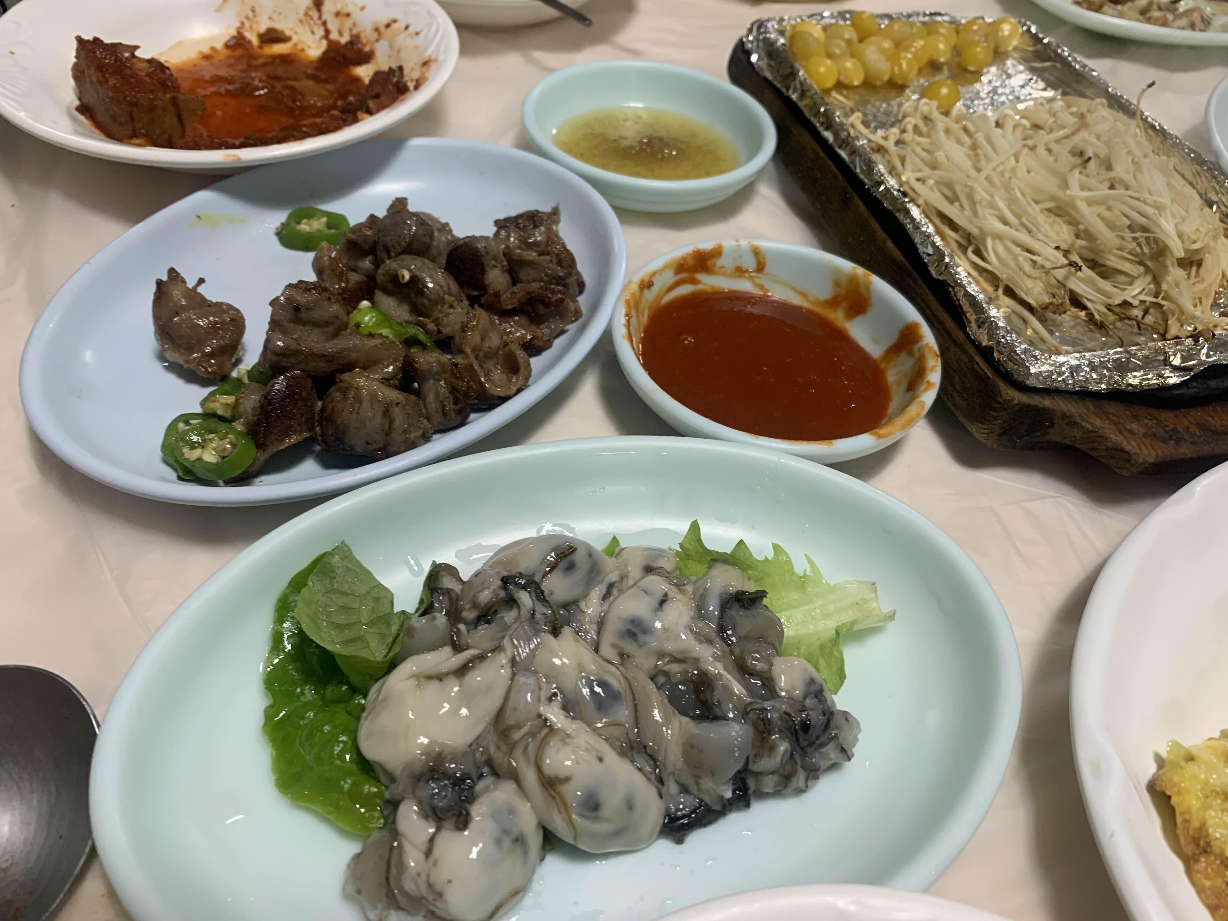 2번째 주전자의 메뉴가 나왔습니다. 손이 가는 메뉴는 달걀말이, 똥집이, 생굴... 맛이 괜찮더군요.