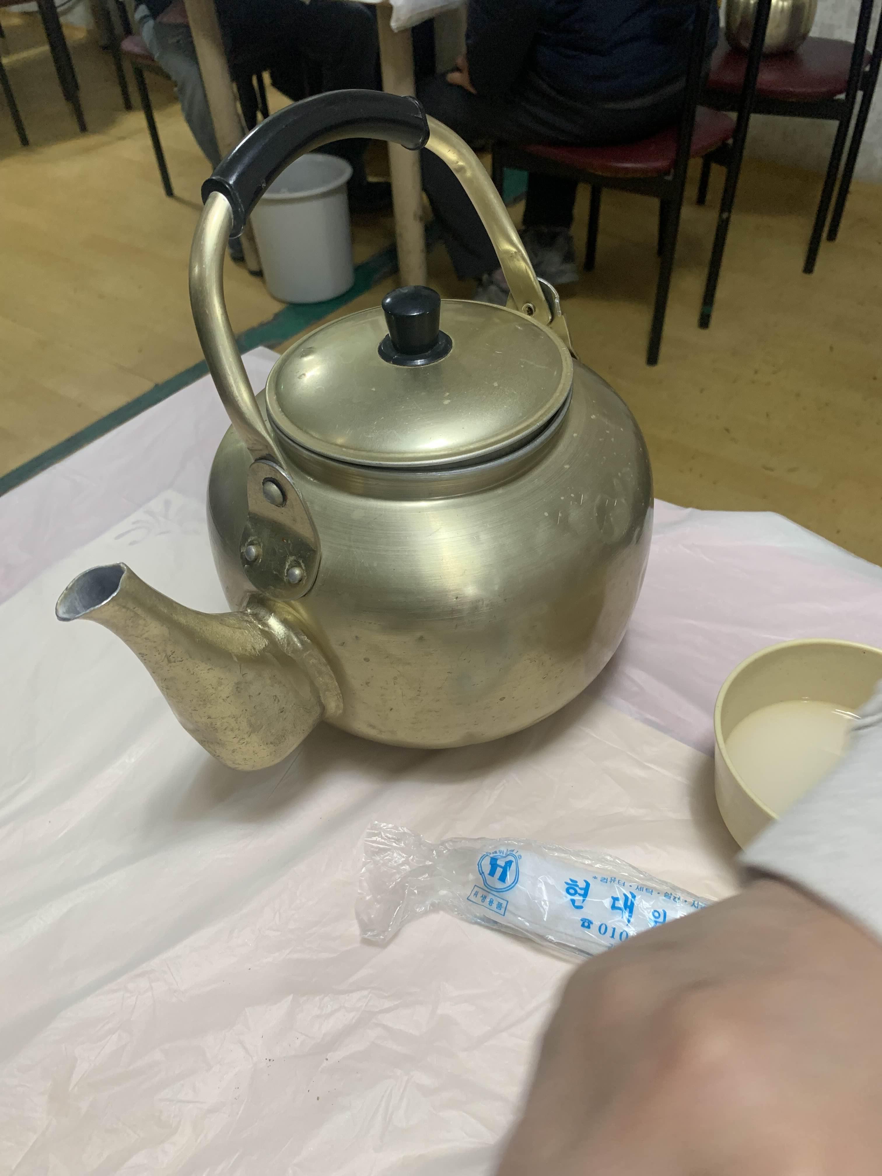 막걸리 2번째 주전자를 주문해 보았습니다. 막걸리는 특막걸리 2만 원, 막걸리 1.8만 원... 메뉴가 있는데...