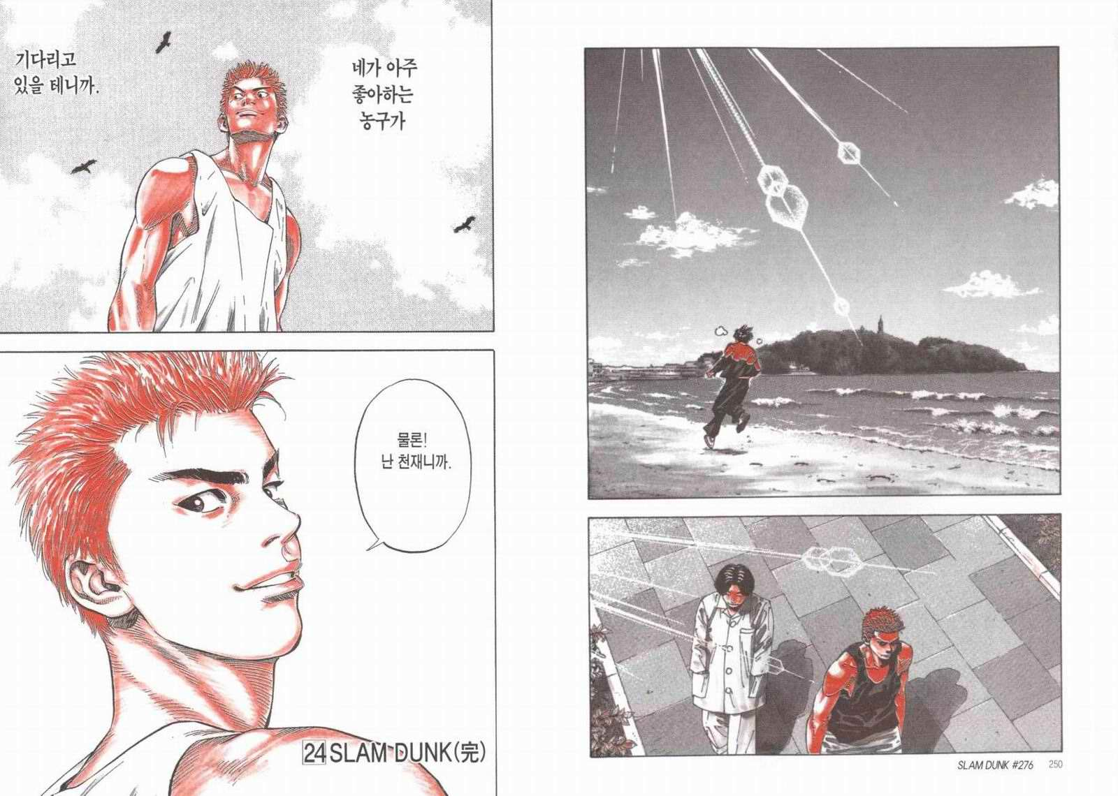 슬램덩크의 마지막 장면!! 서태웅과 강백호의 완벽한 호흡으로... 상대를 제압하다. 그리고 서태웅은 국가대표로 선발... 강백호는 치료를 받는다.