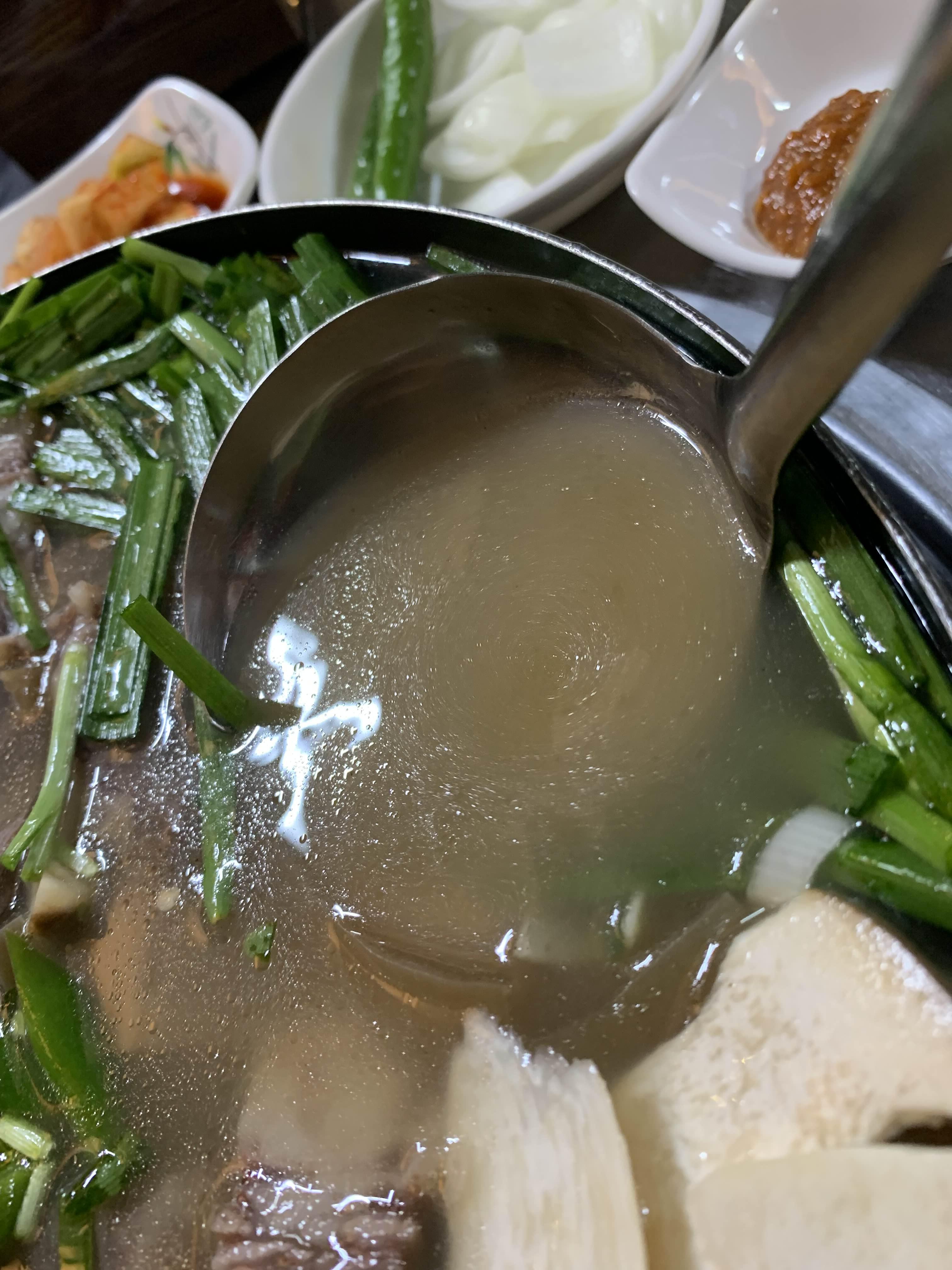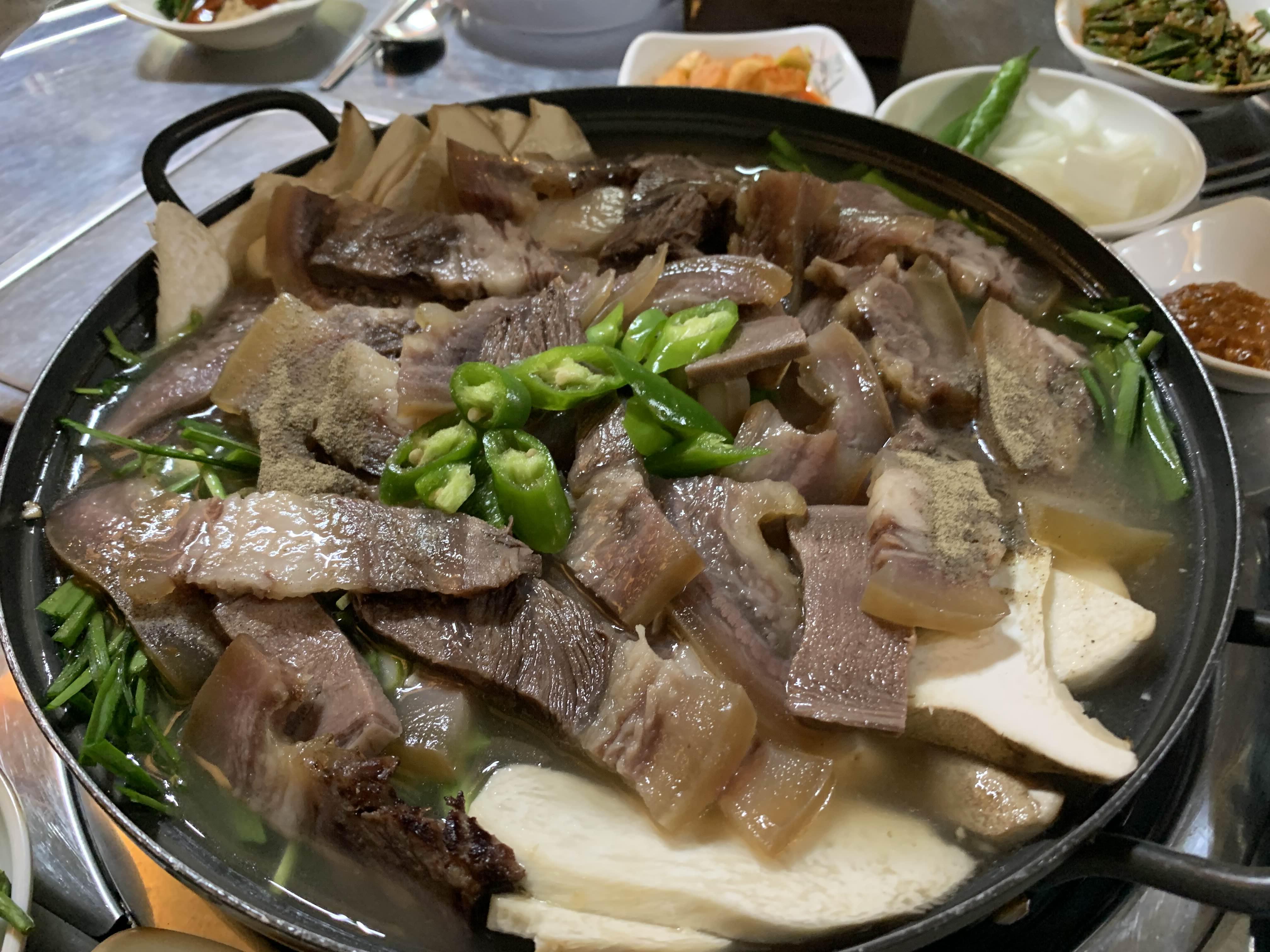 소머리전골의 수육은 개고기 비슷한 비주얼! 식감은 쫄깃! 국물은 담백!