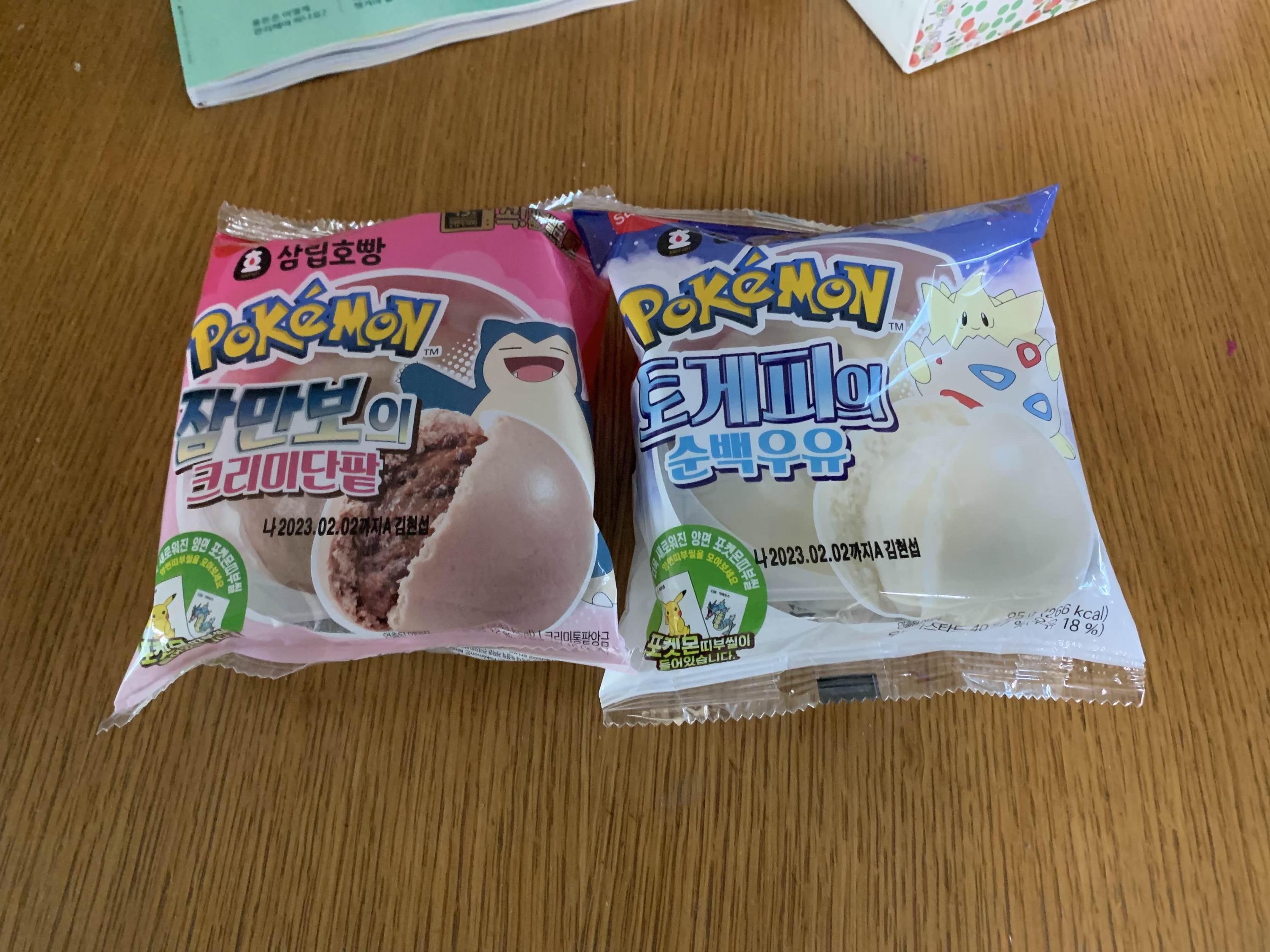 잠만보의 크리미단팥 호빵과 토게피의 순백우유 호빵이다~