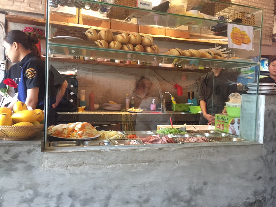 한국인이 많이 방문해서 메뉴판도 한글로 된 메뉴판이 있고, "고수를 원하시면 말씀해 주세요"라는 문구도 보이네요. 고수 넣어 달라고 말하면 넣어줍니다. 전통 반미를 주문하려다가 고기를 좋아해서 고기가 들어있는 반미를 주문했습니다. 주문하면 바로 나오는데... 호텔 조식으로 나왔던 반미보다 좀 크더군요.