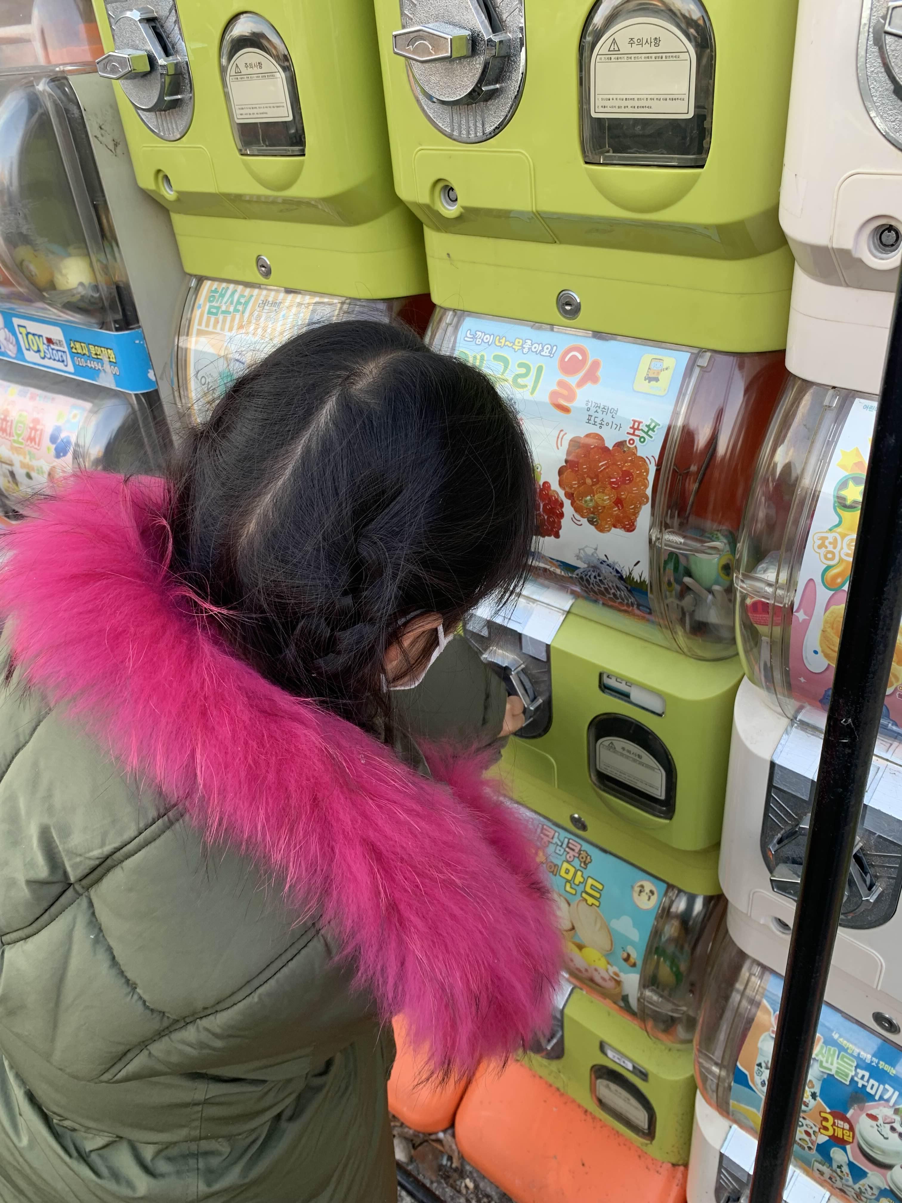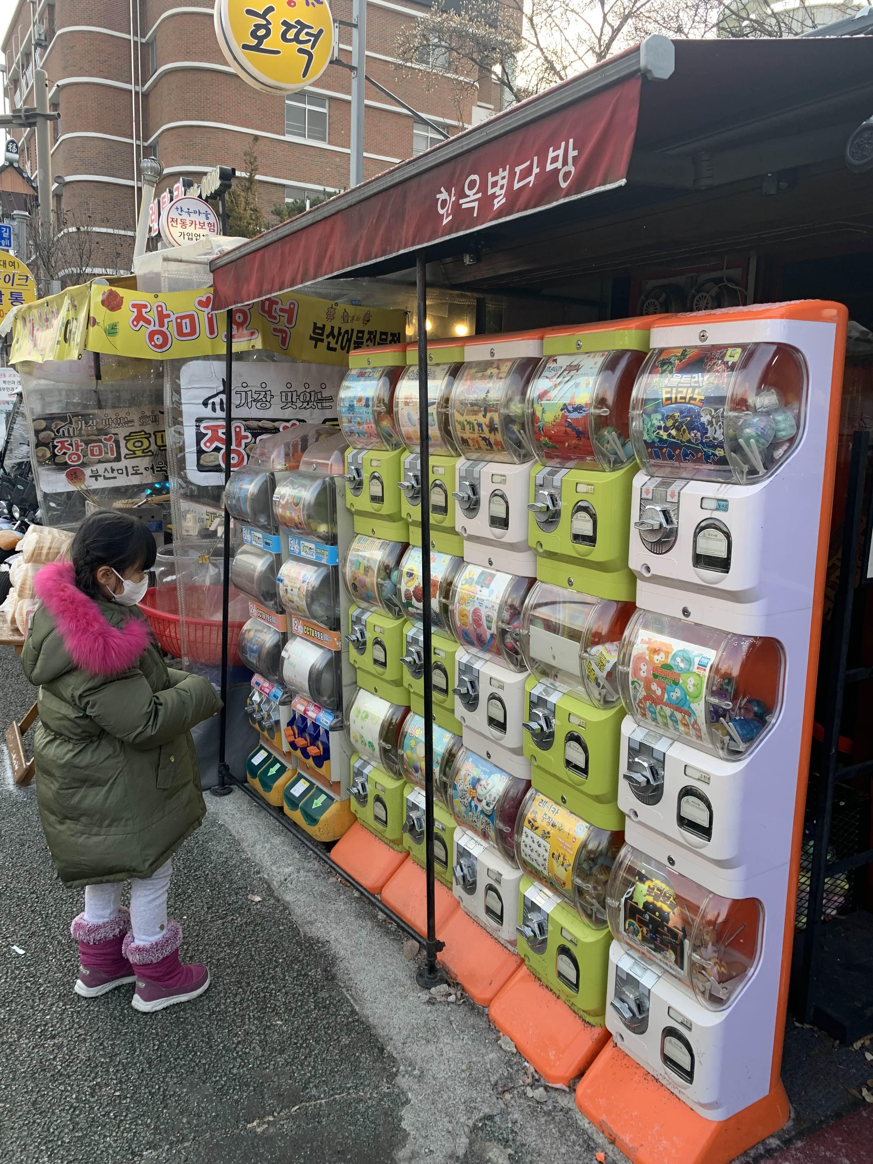 한옥마을에는 다양한 놀이기구와 체험공간이 있지만!!! 그 공간에서 사람들이 많이 이용하지 않는.... 뽑기 게임기가 아이의 눈을 사로잡았다.