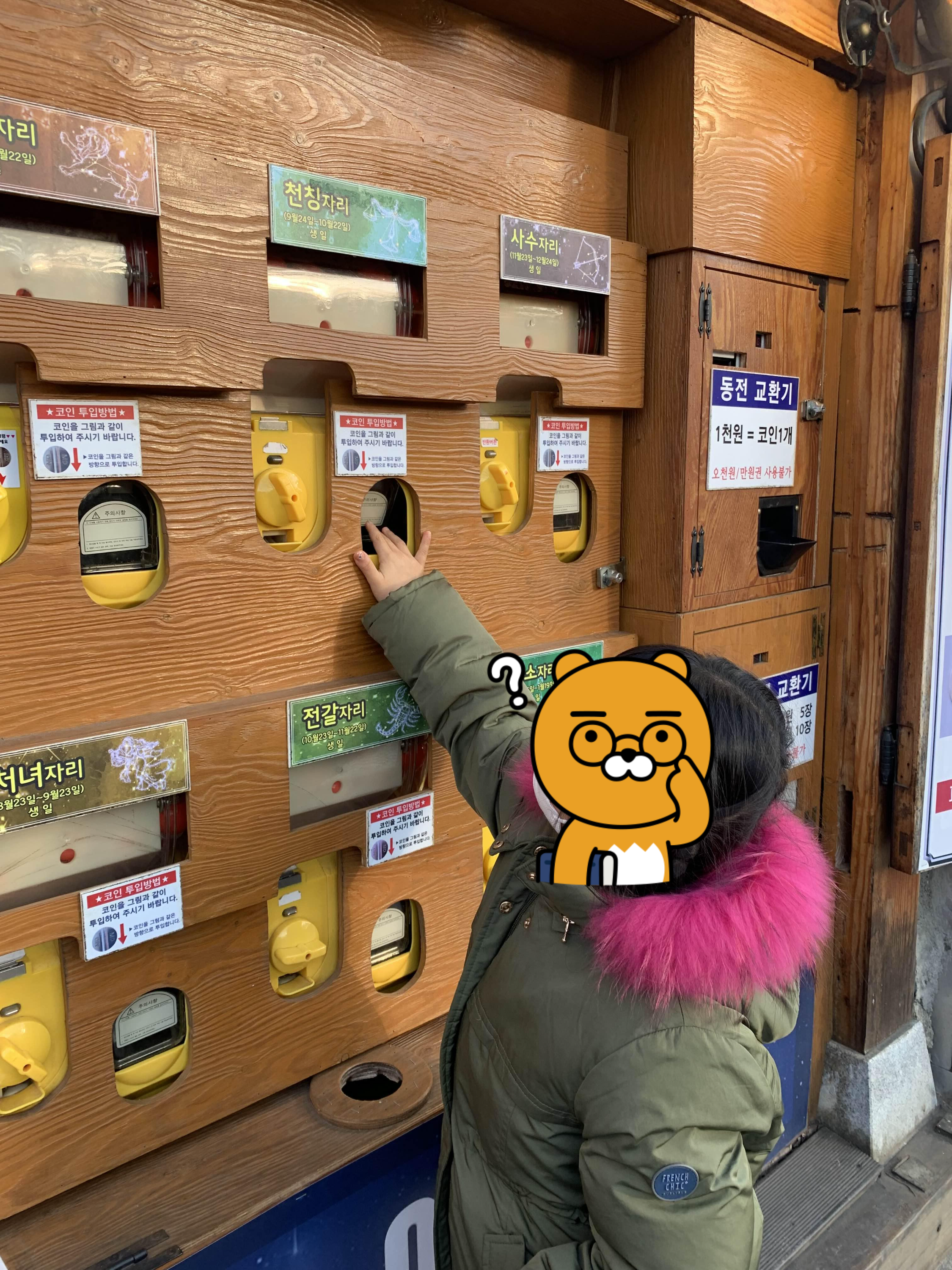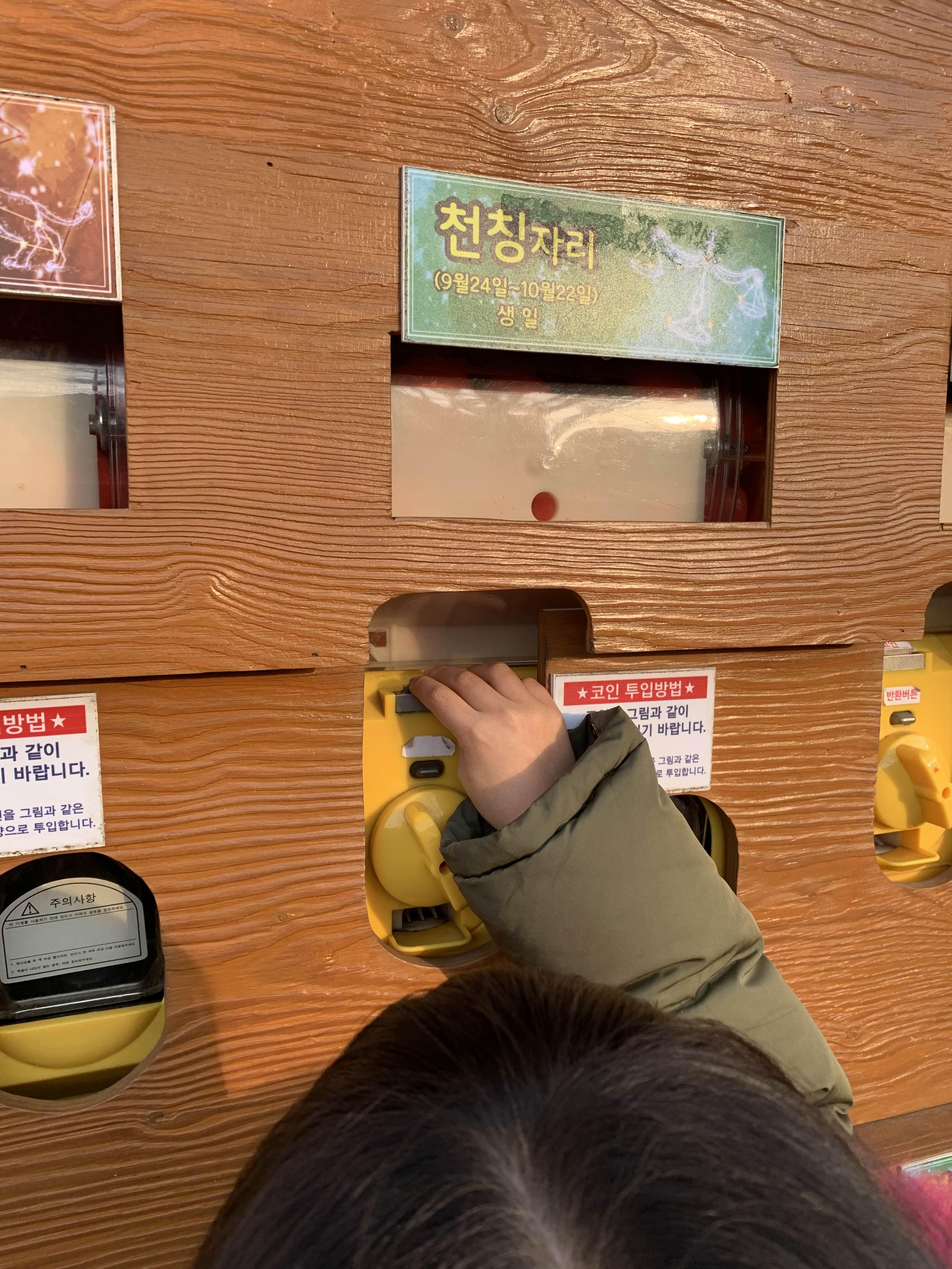 운수대통 코인을 삽입하고, 아이의 별자리 천칭자리? 가 맞나? 아무튼!!! 아이가 생일이 속해있는 별자리에 코인을 넣어준다.