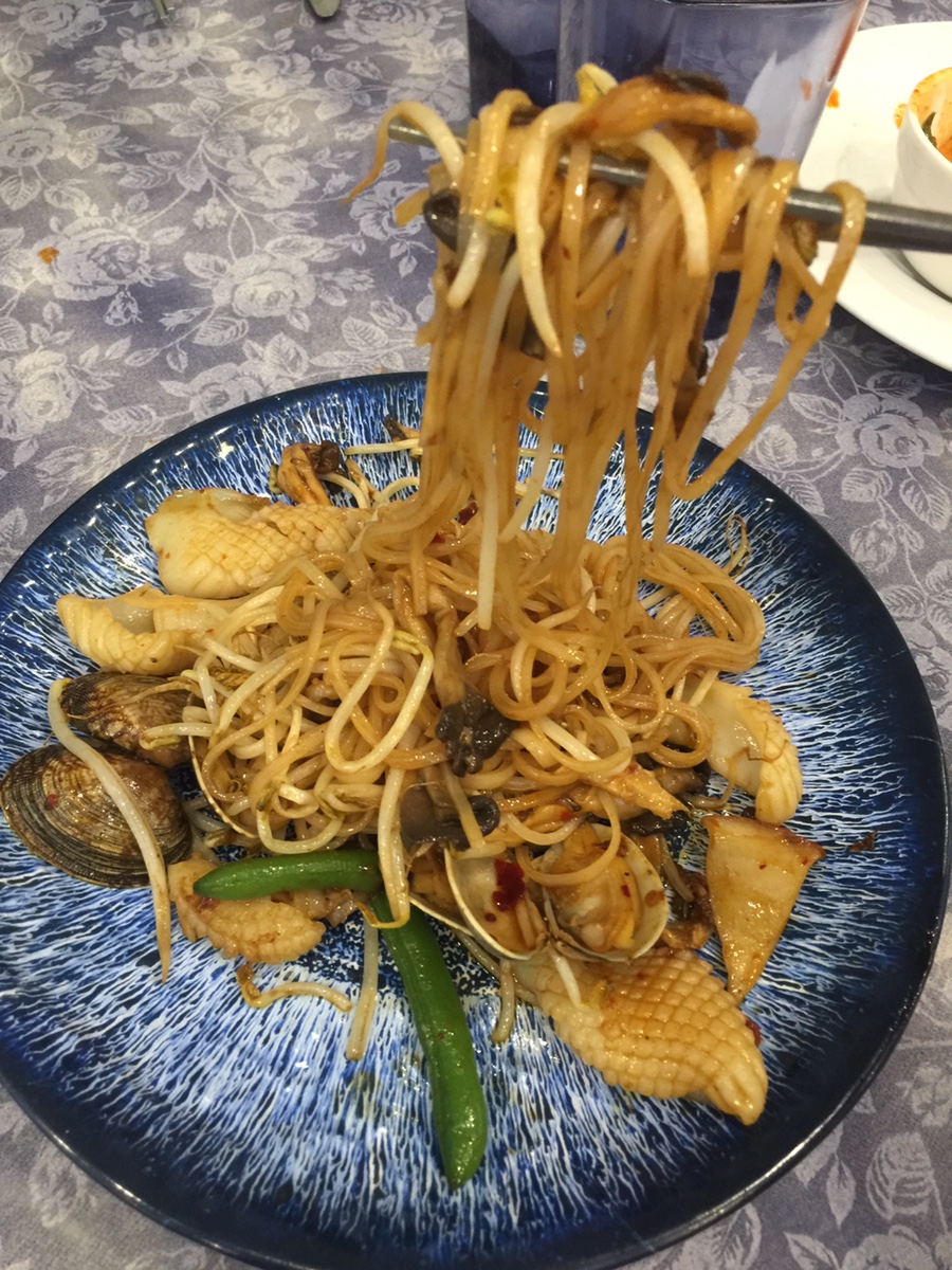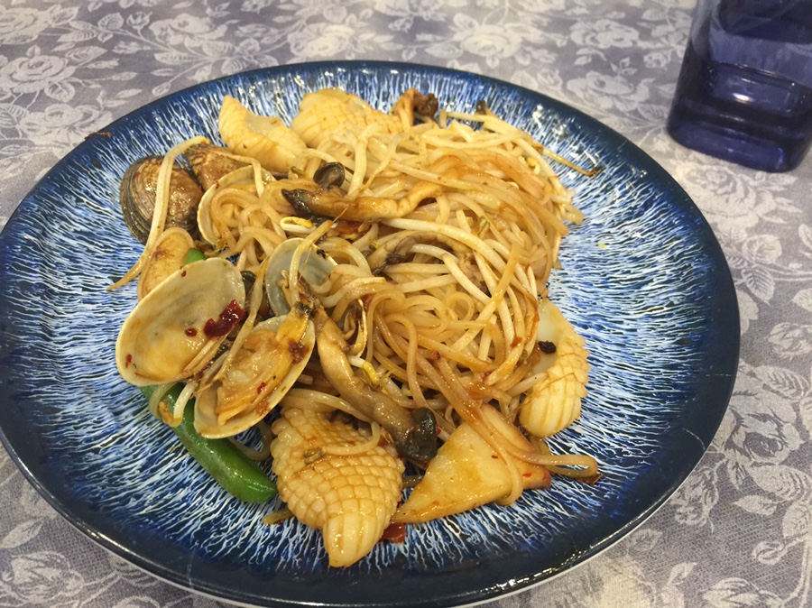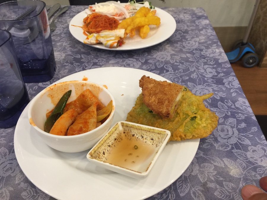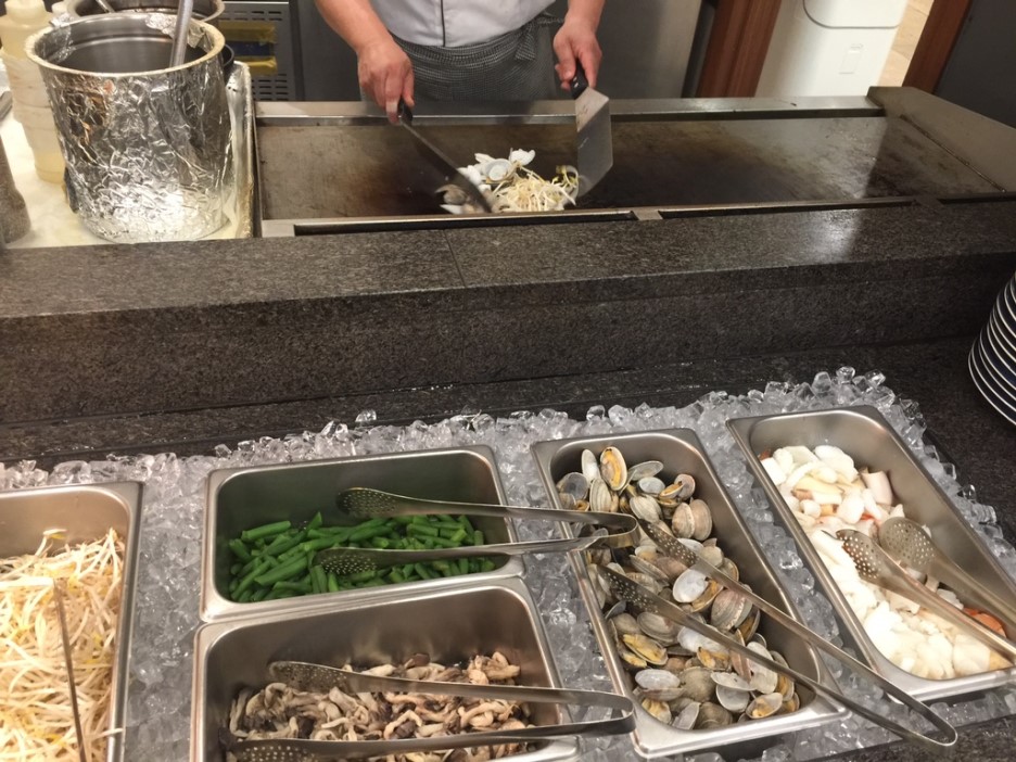 저번에 준비 중이었던 철판요리가 개시? 되었네요. 철판요리 앞에 위치한 음식을 접시에 담아주면 면과 함께 요리를 해주시네요. 즉석에서 바로 만든 음식이라 다른 음식보다 맛이 좋았네요. 면과 함께 볶으는 음식이라 해산물보다 숙주나물을 많이 넣어서 볶는 게 더 맛있더군요.ㅎㅎ