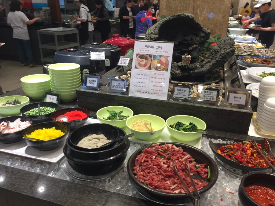 지난 터존부페 방문하고 가족 생일로 재방문한 식당입니다. 기존에 준비 중인 철판요리와 비빔밥 코너가 변경되었네요.