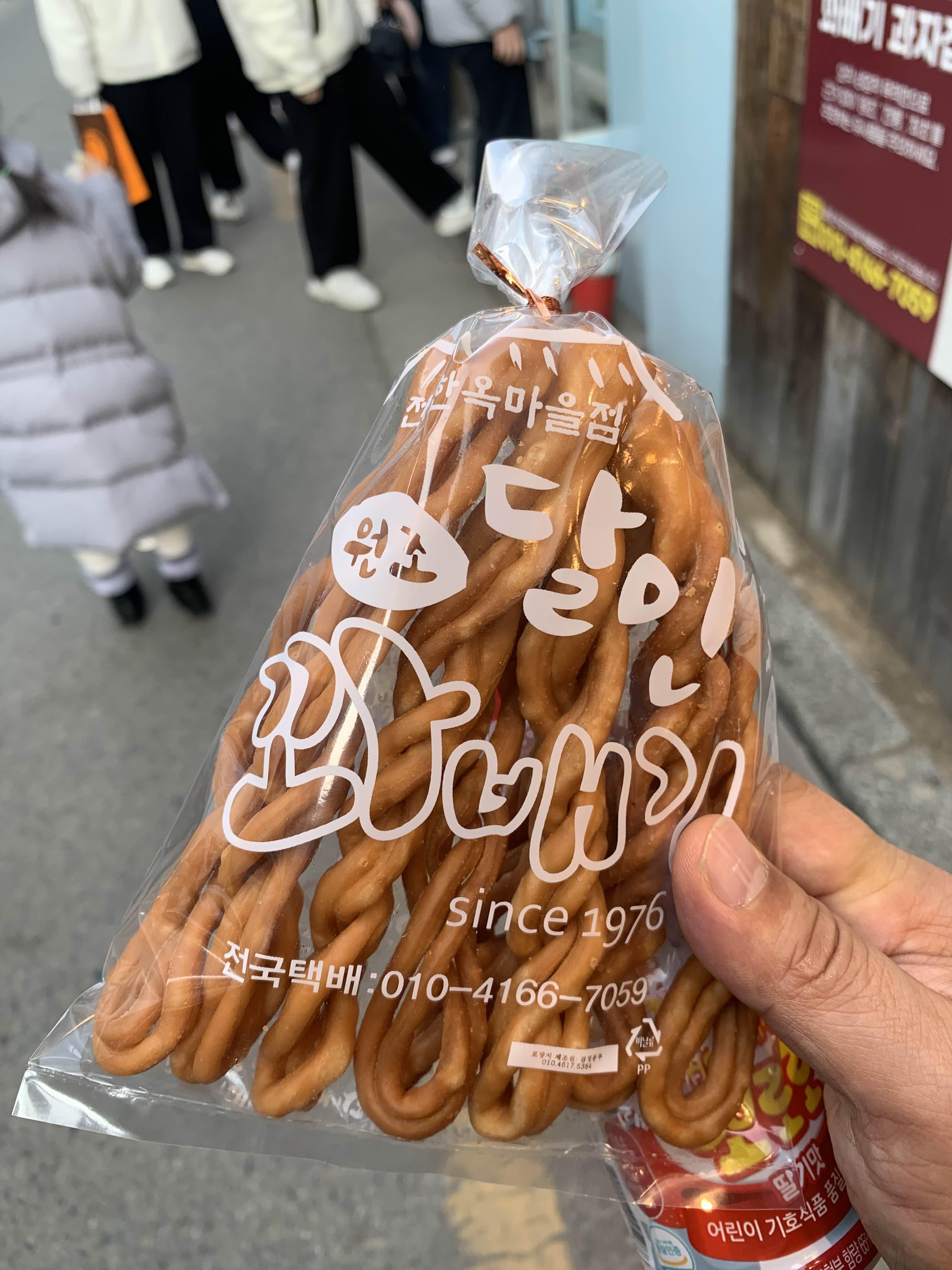 오늘은 아이와 함께 먹을 간식을 사러 방문한 한옥마을에 위치한 꽈배기 식당입니다. 가격은 1개에 3천 원!!ㅎㅎ