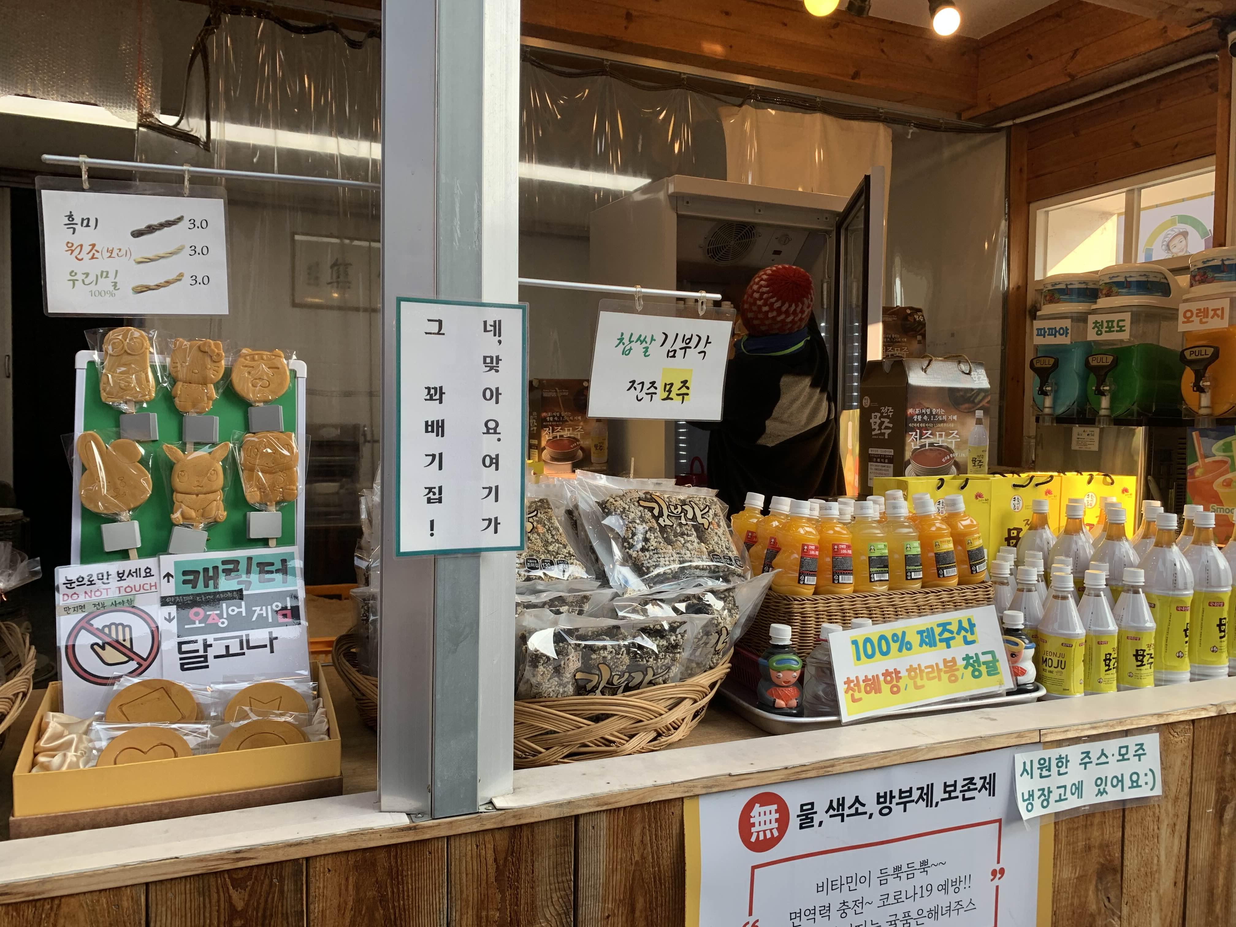 꽈배기 전문점이나... 다양한 제품이 판매하고 있더군요. 달고나?ㅎㅎ 제주산 음료수... 김부각, 모주, 슬러시 등..... 다양하게 판매하는 꽈배기 전문점?입니다.