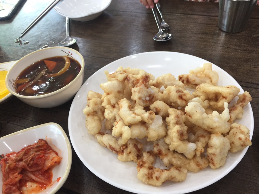 일단 탕수육부터 나오는데... 탕수육은 아이들이 튀김옷이.... 탕수육 튀김옷은 찹쌀탕수육과 옛날 바삭하게 튀긴 탕수육의 그 중간 정도의 찰기가 있었네요. 소스는 일반적으로 나오는 탕수육 소스^^ 아이들이 좋아했네요. 아이들은 공깃밥과 함께 탕수육을 식사를 했네요.