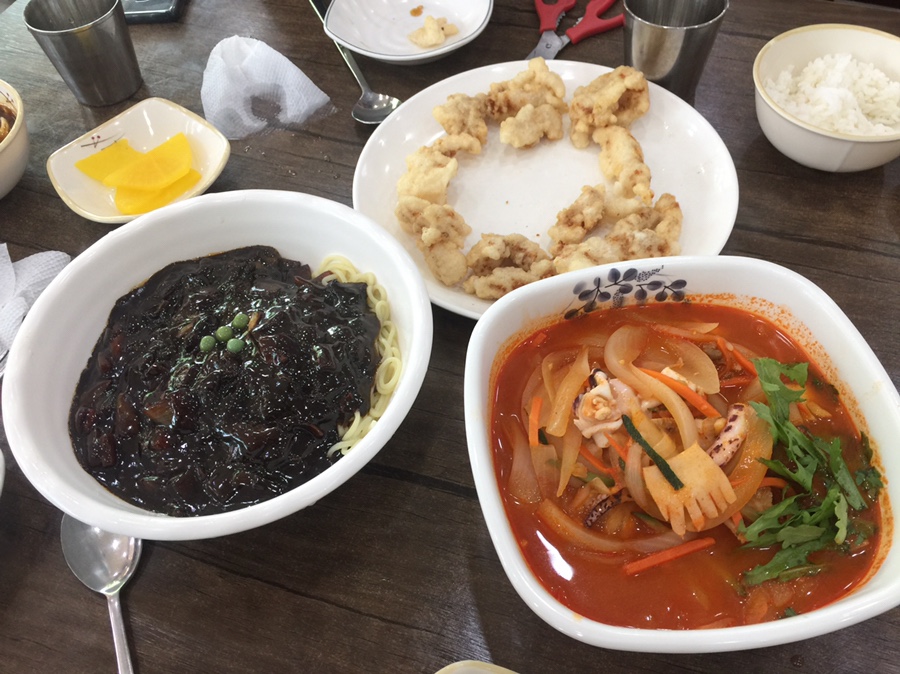 탕수육을 어느 정도 먹으니 짬뽕과 짜장면이 나오는데... 짜장면은 가격 대비 양이나 맛도 괜찮았네요. 짬뽕이 가격 대비 괜찮기는 한데... 국물이 좀 고춧가루 냄새가 난 느낌이랄까.... 굳이 표현하자면 라면을 끓였는데 라면 수프가 제대로 안 풀린 느낌이랄까? 저는 좀 별로였는데... 와이프는 맛있다고 하네요. 사람 입맛이 다 다르나 봅니다. 초마초마 8,000원 짬뽕보다는 괜찮기는 했네요. 초마초마도 예전에 맛이 좋았는데... 손님이 너무 많이 와서 맛이 변해서.... 좀 아쉬움이 남았는데..